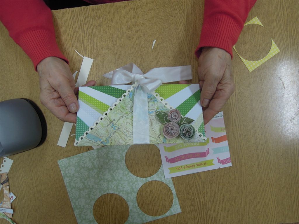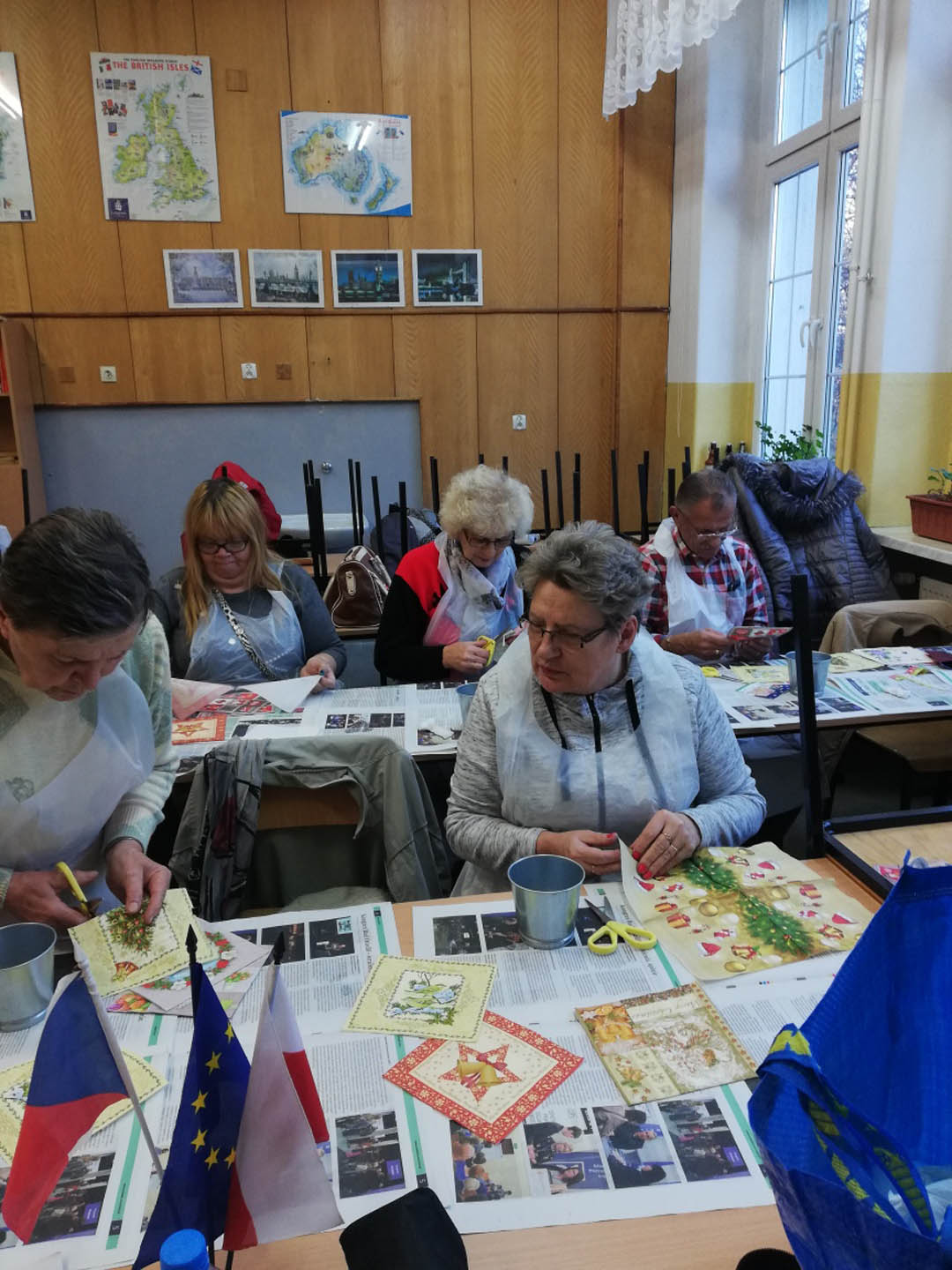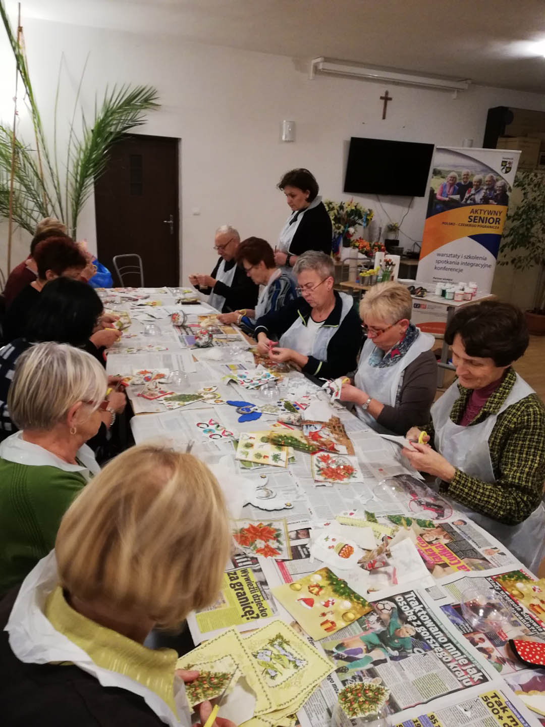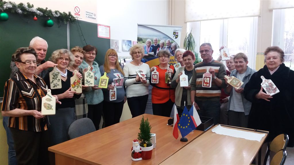 Uczestnicy wykonali: zawieszkę świąteczną, kartkę okolicznościową, ozdobioną techniką decoupage deskę kuchenną, torbę lnianą na zakupy.