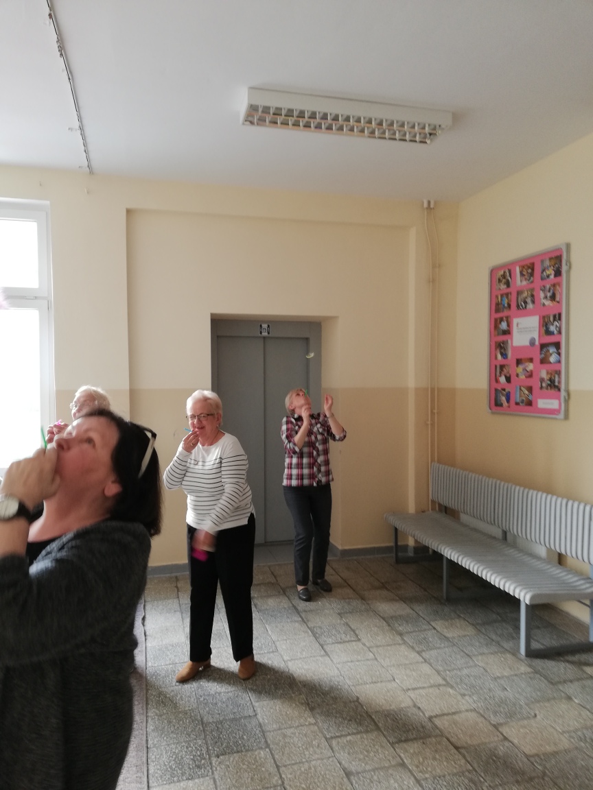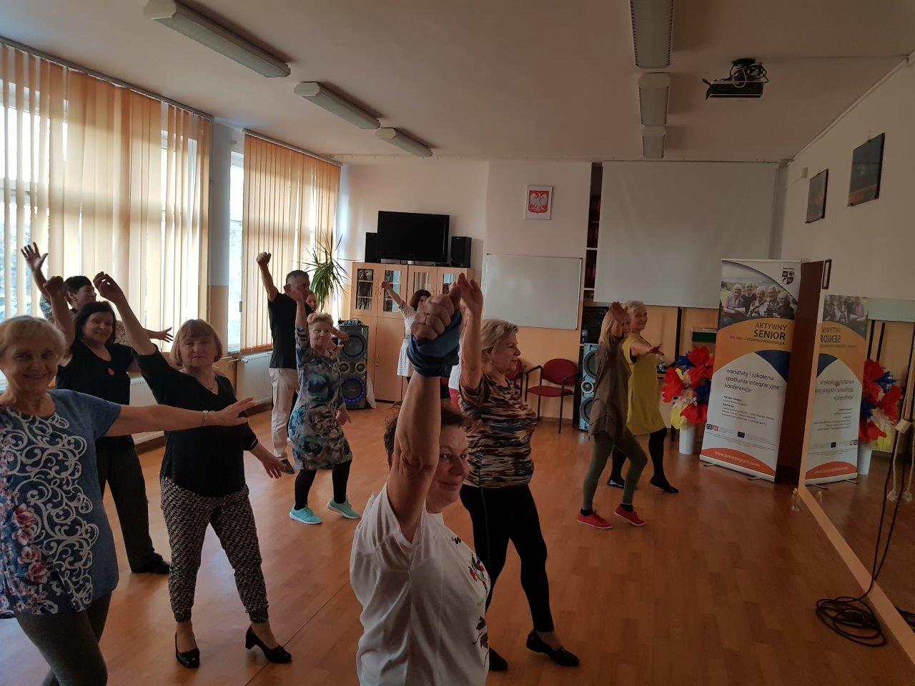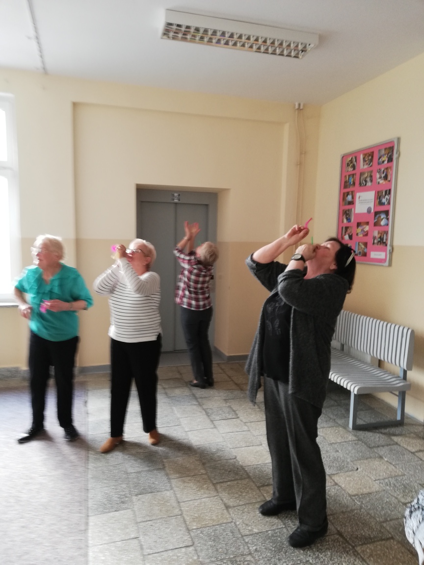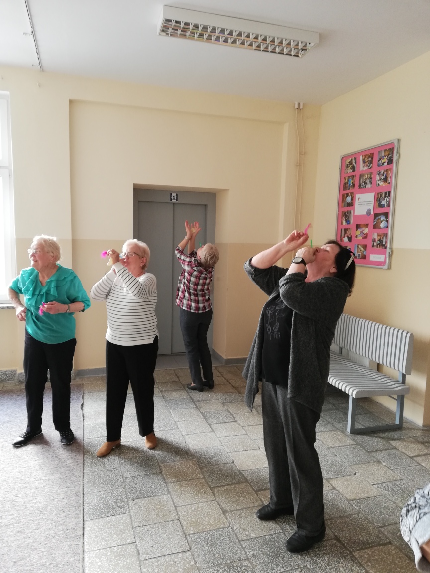 Z uwagi na fakt, że zajęcia zumby to połączenie aerobicu i tańca, upłynęły one w atmosferze zabawy, radosnego nastroju i radości - co bardzo spodobało się seniorom.