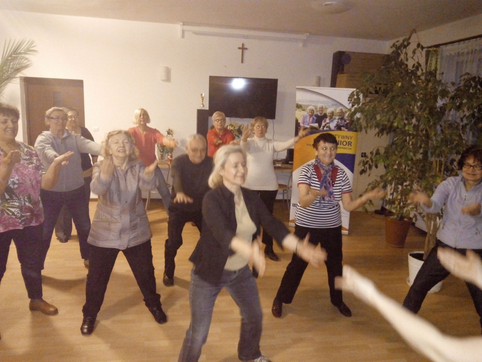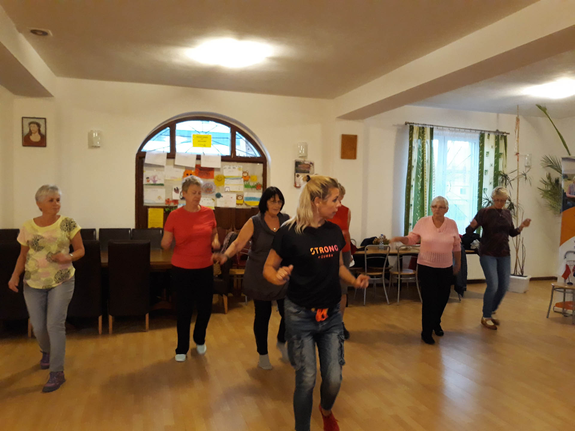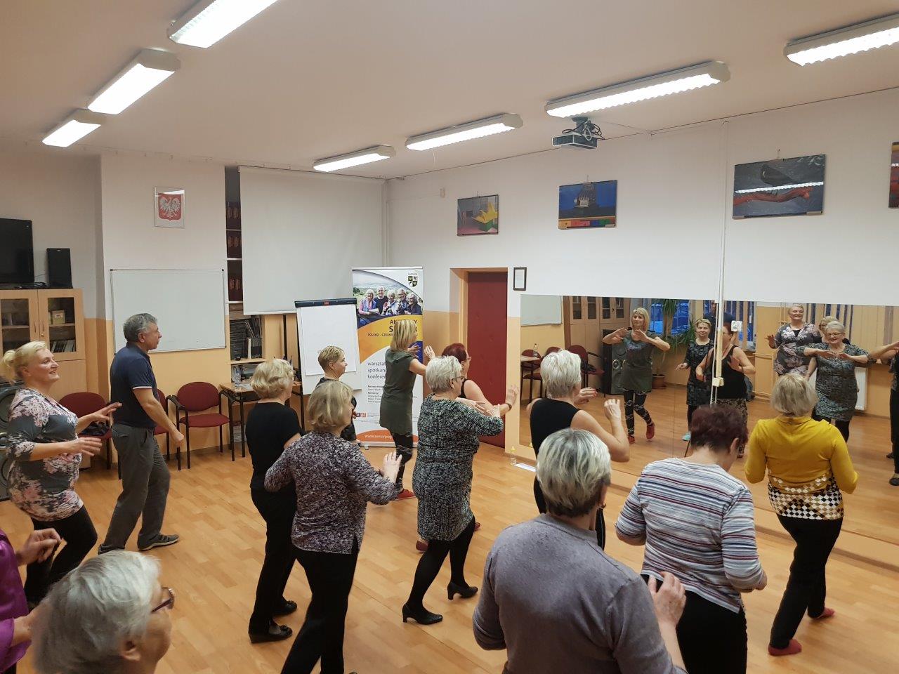 Z uwagi na fakt, że zajęcia zumby to połączenie aerobicu i tańca, upłynęły one w atmosferze zabawy, radosnego nastroju i radości - co bardzo spodobało się seniorom.