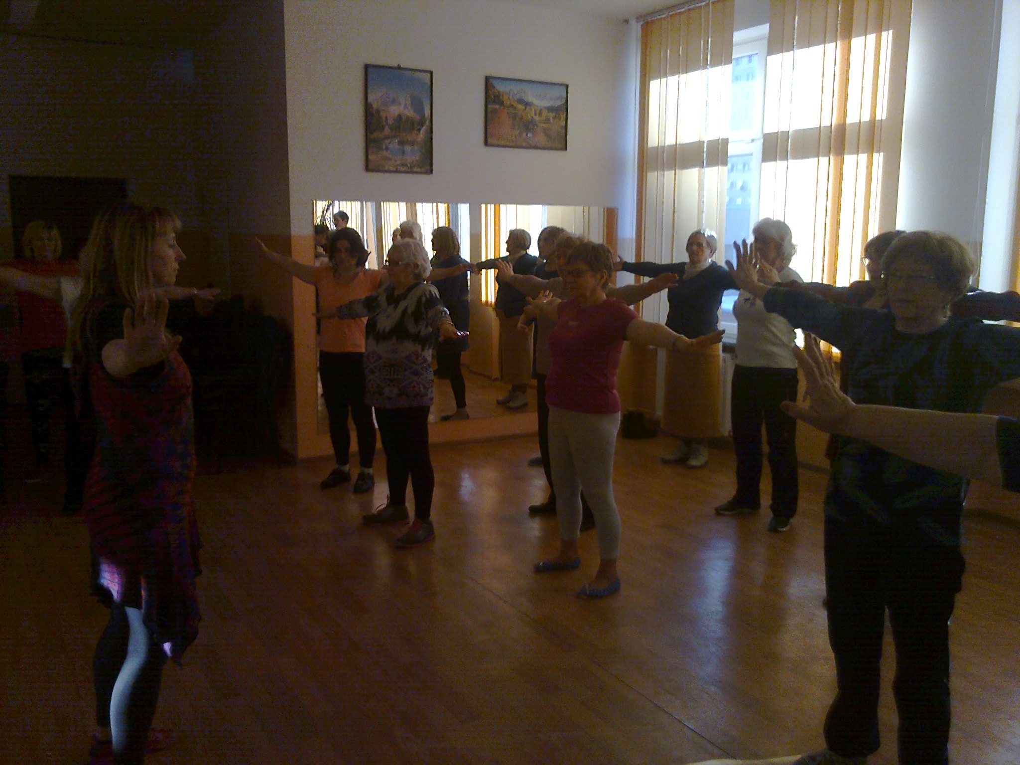 Na wstępie w każdej z grup instruktorka zrobiła pokaz ćwiczeń Tai Chi, zaprezentowała zestawy ćwiczeń, które uczestnicy mogą wykonywać sami w domu, poinformowała ogólnie o Tai Chi m.in., że jest sztuką samodoskonalenia poprzez naukę panowania nad własnym ciałem i umysłem. Następnie odbyły się ćwiczenia - bardzo powolne wyciszające. Polegały na poruszaniu całym ciałem w określony sposób, zgodny z założeniami sztuki Tai Chi.