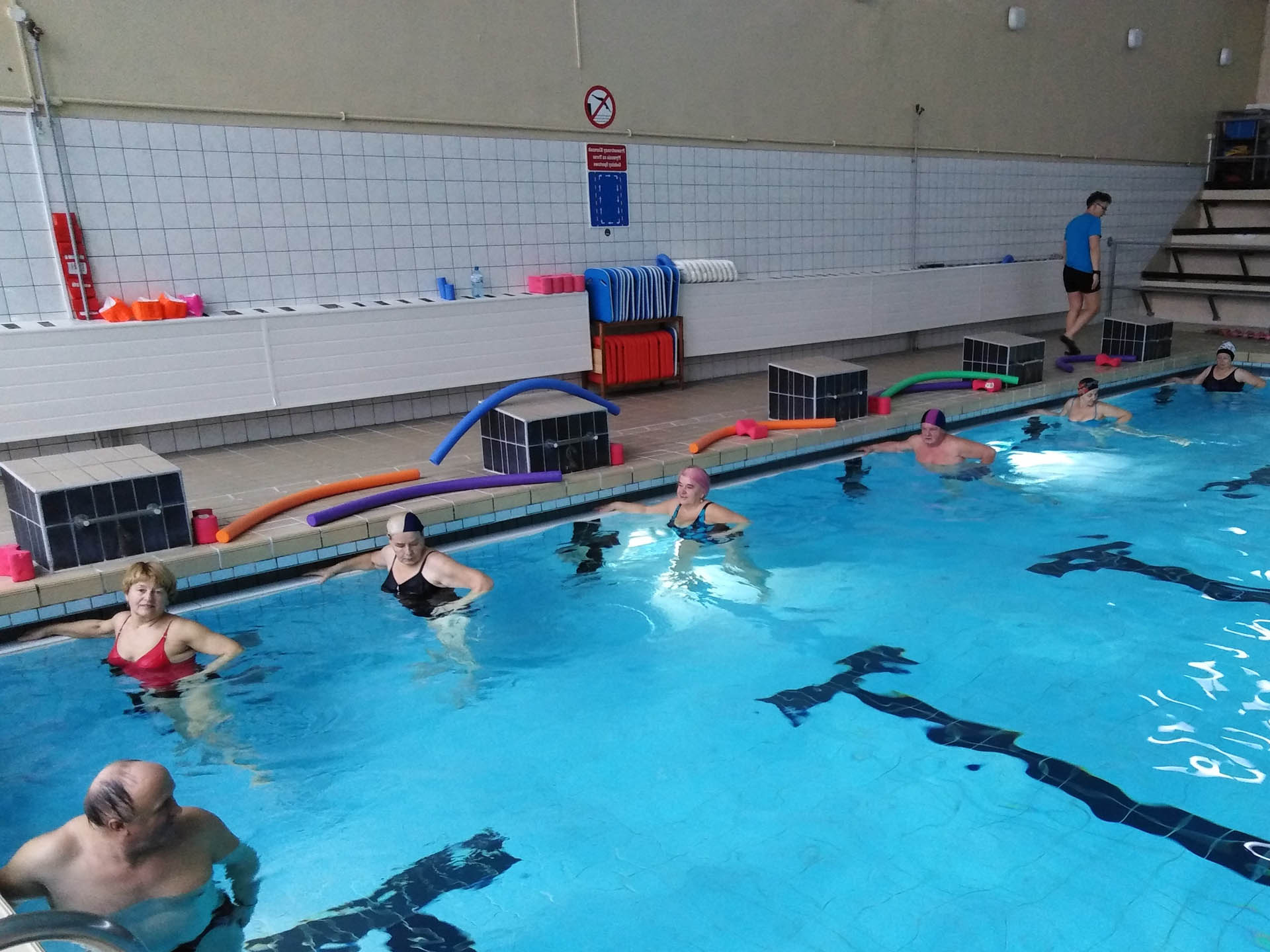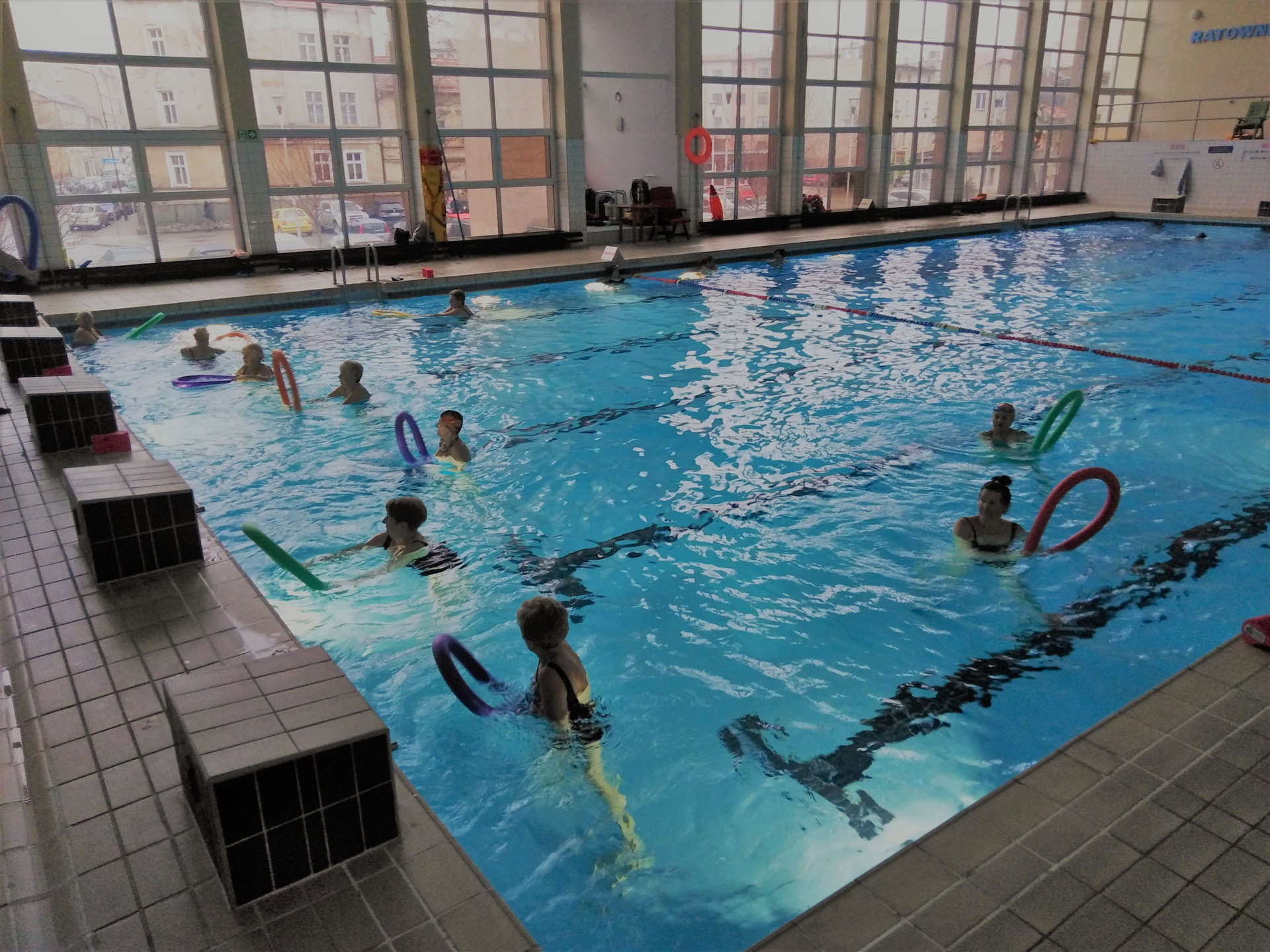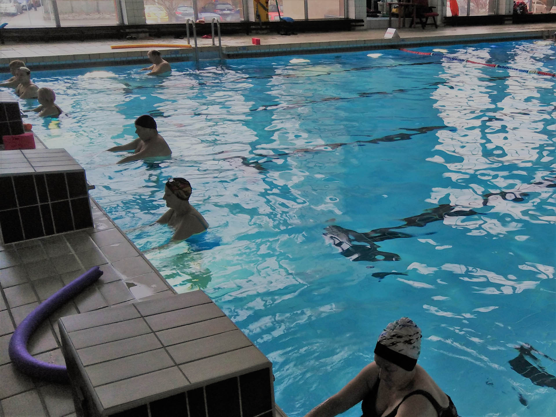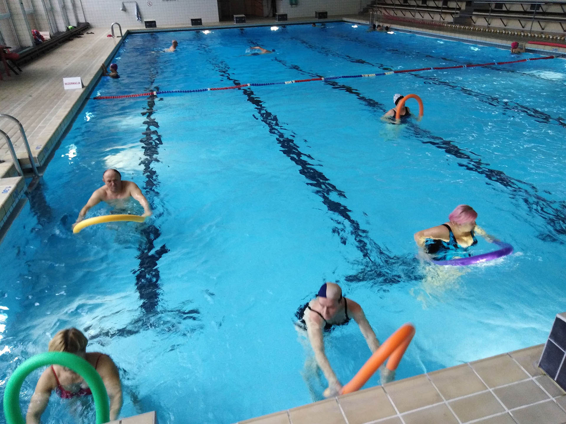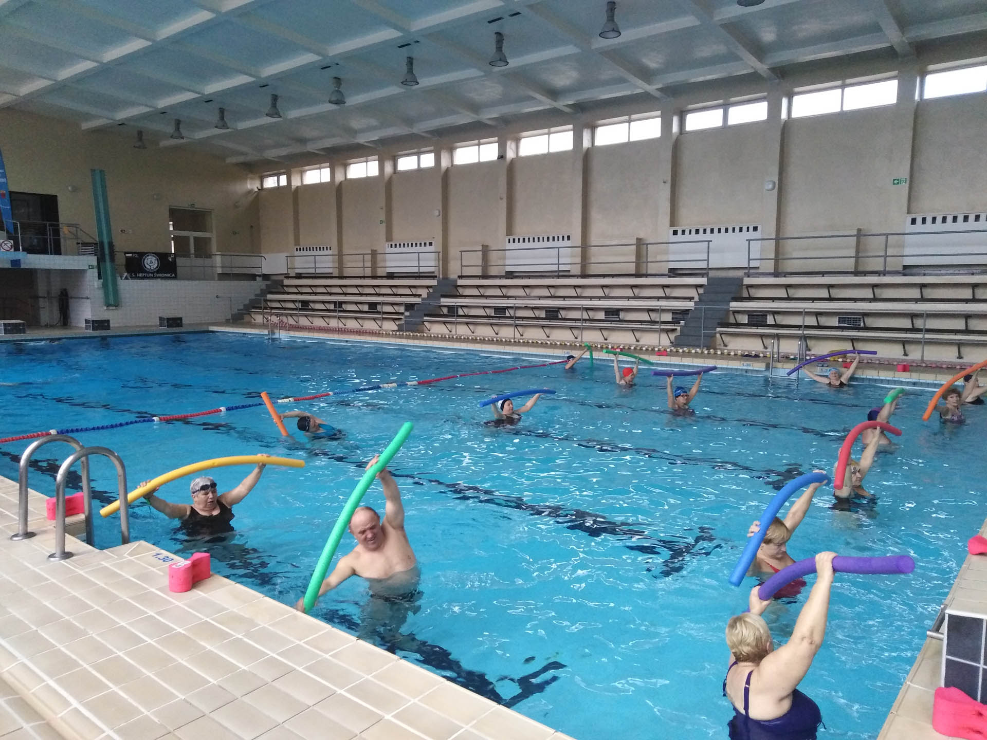 Miały formę Aquaerobic’u czyli ćwiczeń gimnastycznych wykonywanych w wodzie, bez lub z dodatkowymi akcesoriami (np.: deski, piłki, makarony piankowe). Do zalet tej formy aktywności, podkreślanej także przez seniorów należy zaliczyć dużą łatwość wykonywania ćwiczeń i odciążenie stawów (szczególnie kolanowych). Różnorodność, łatwość wykonania i uniwersalność sprawiły, że zajęcia na basenie spodobały się uczestnikom. Seniorzy, którzy potrafili pływać mogli zamiennie podczas zajęć doskonalić technikę pływania.