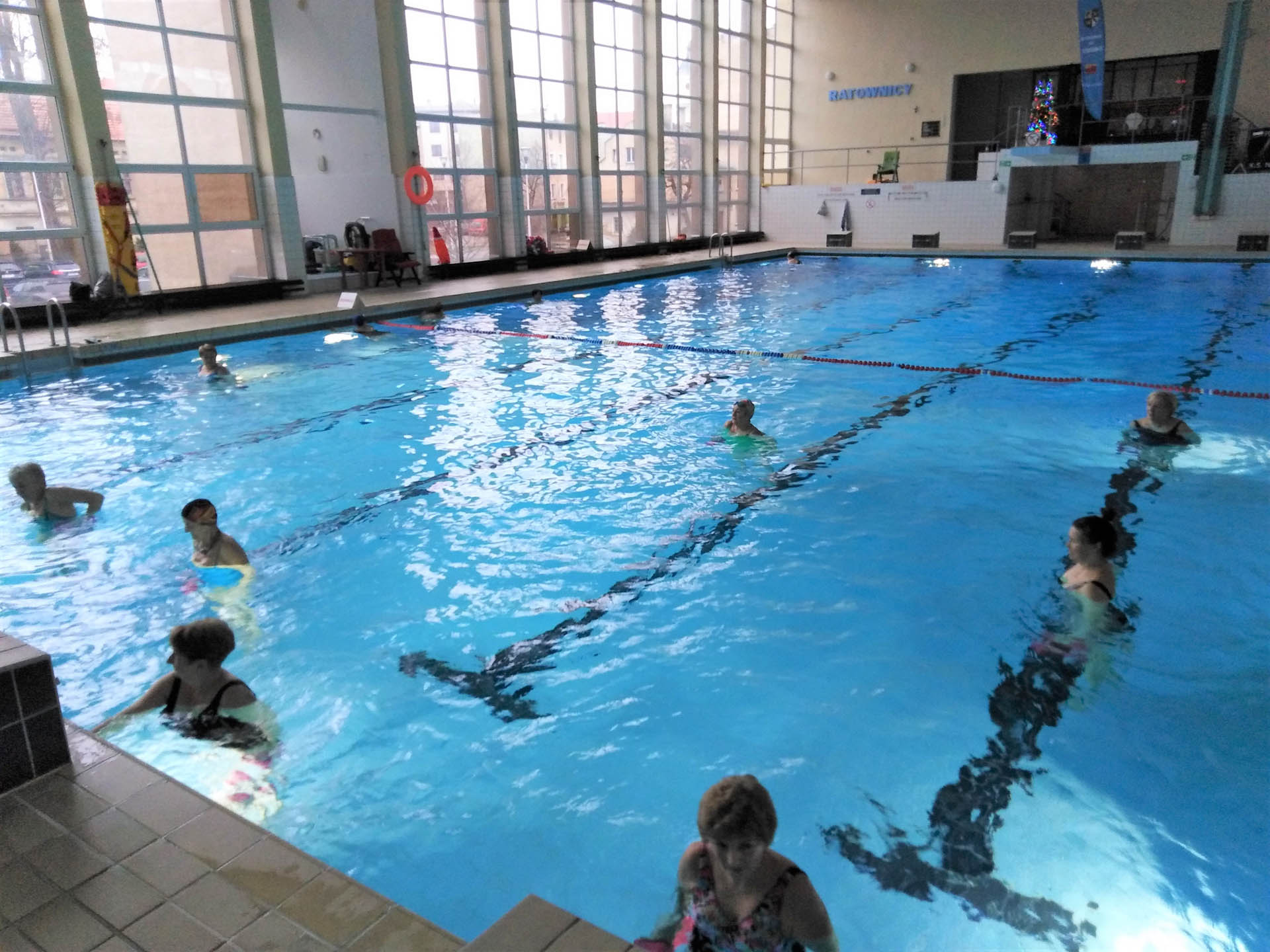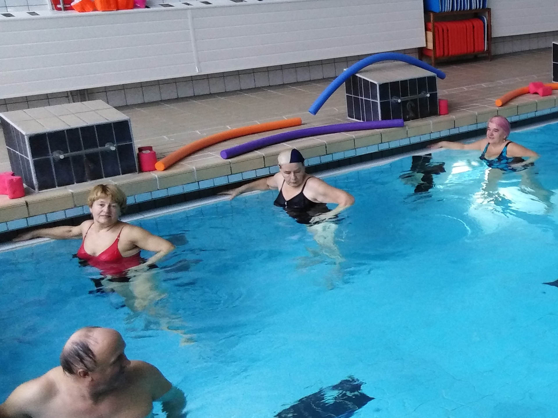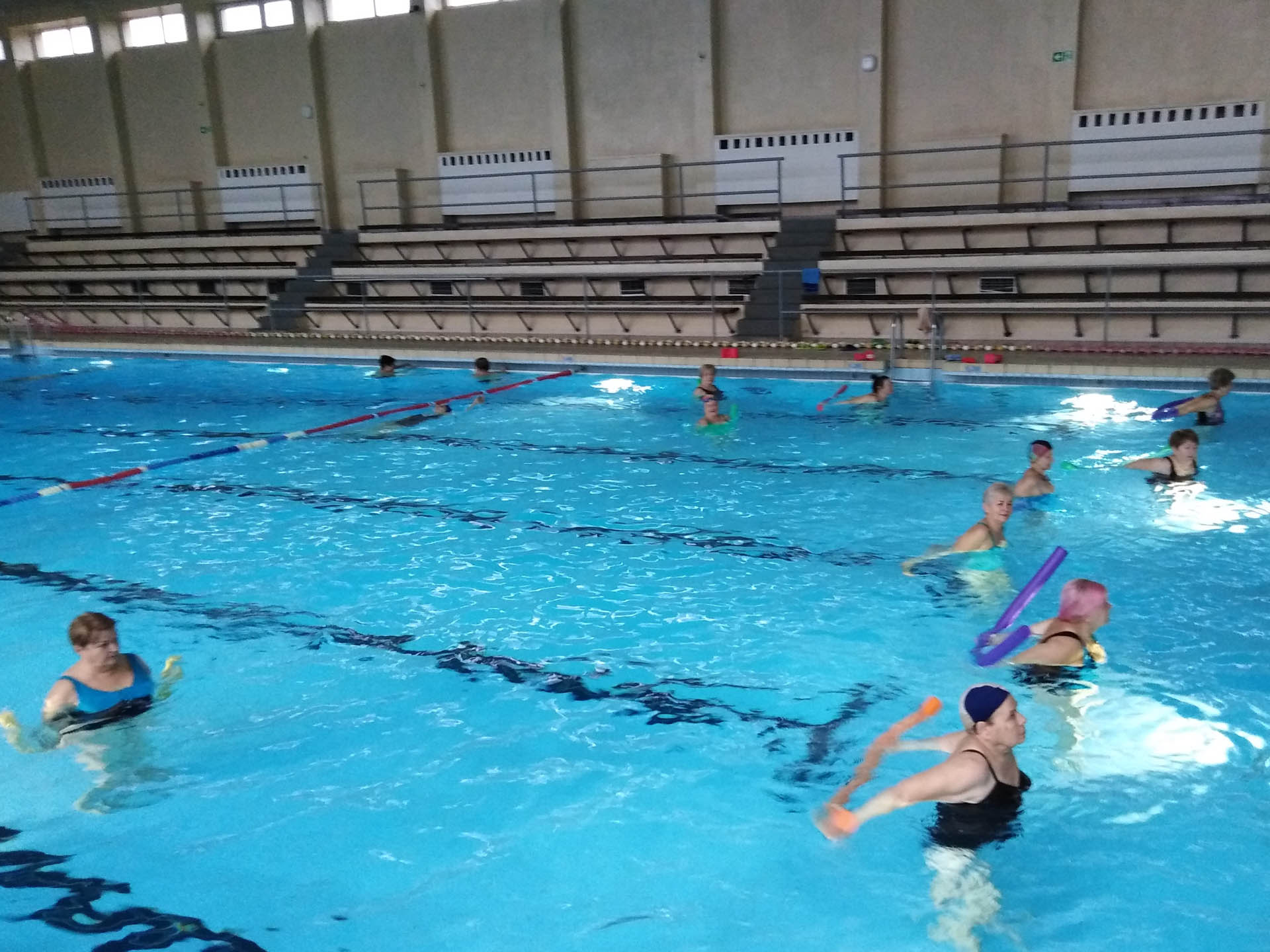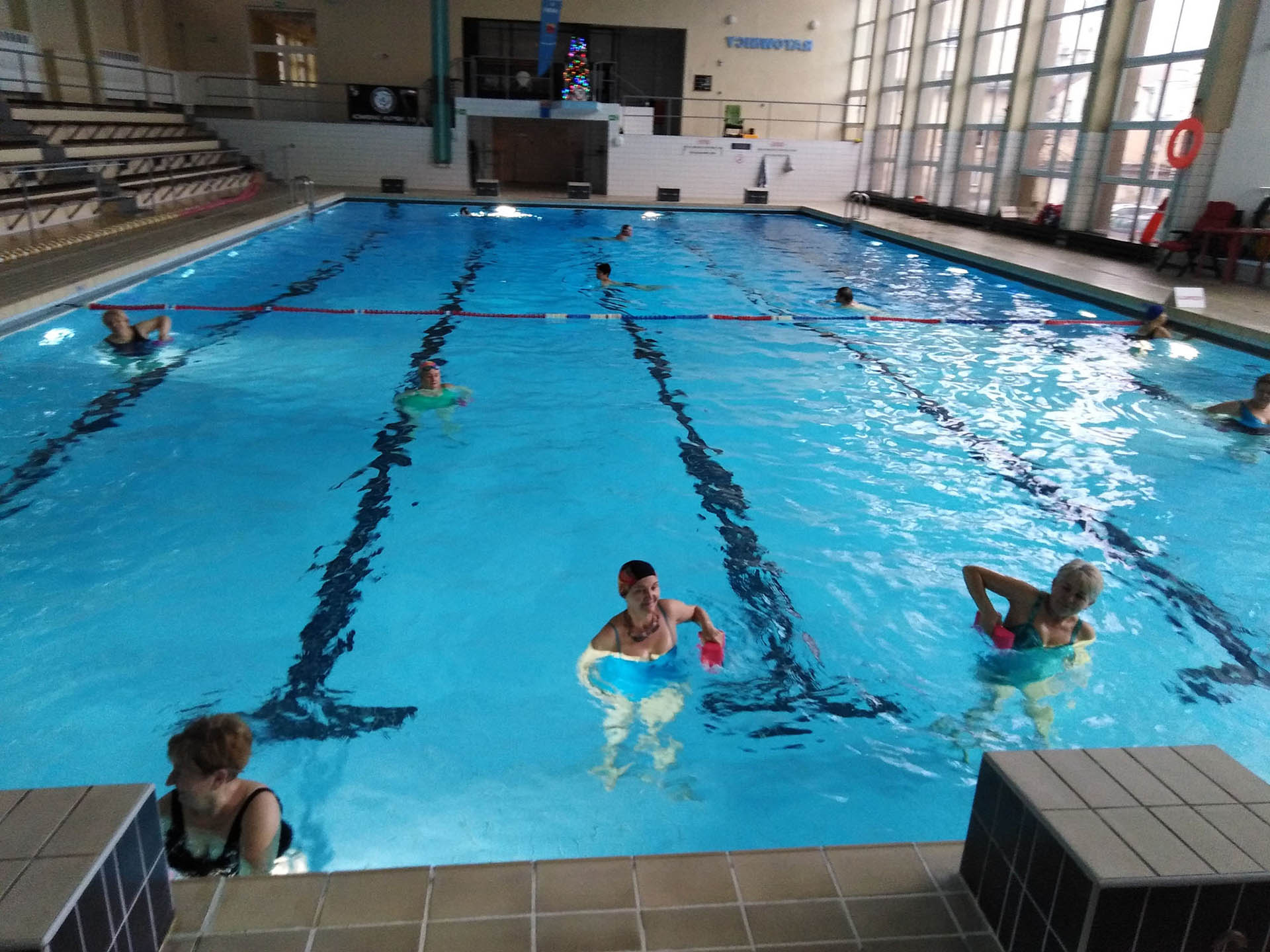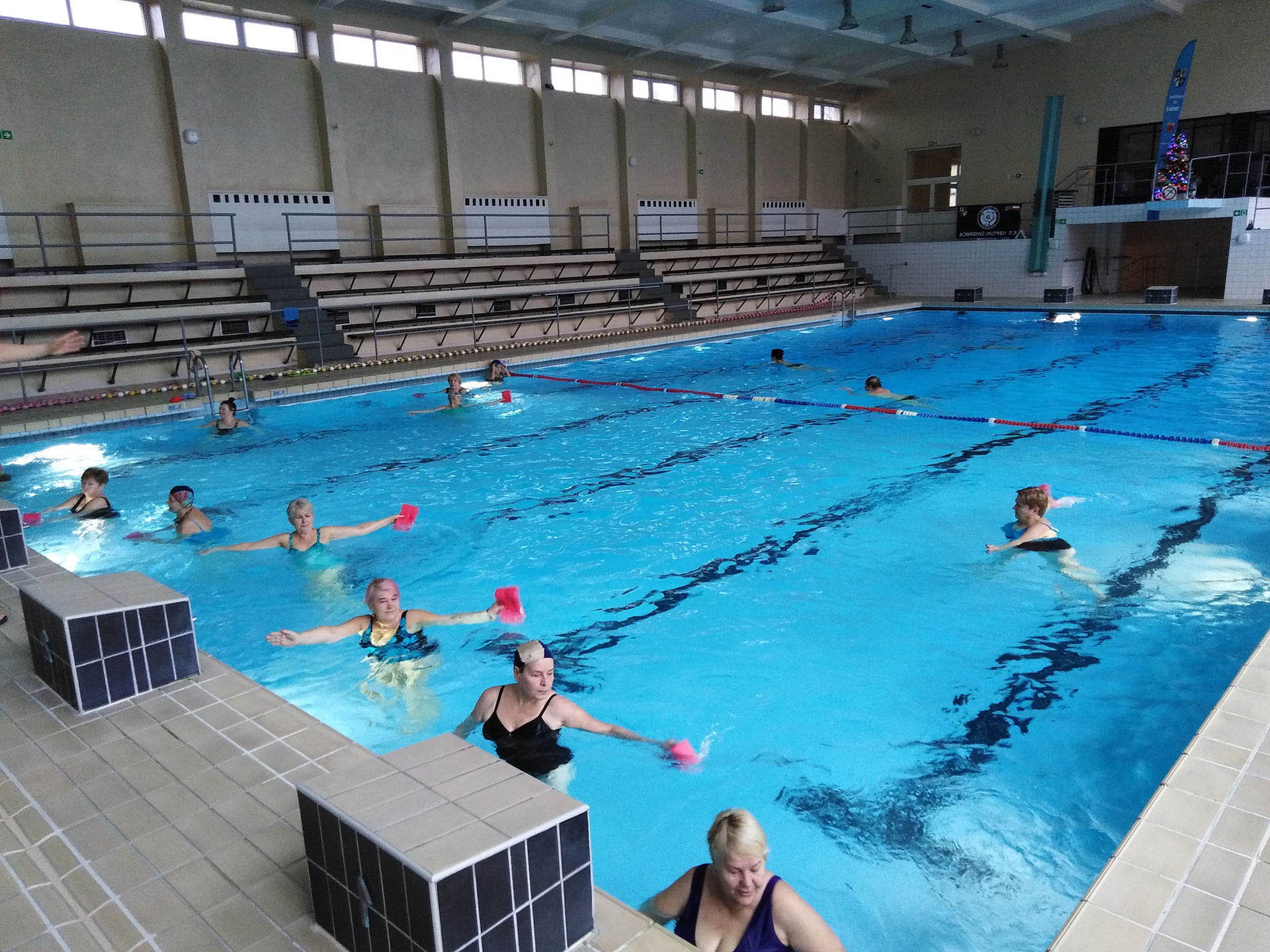 Miały formę Aquaerobic’u czyli ćwiczeń gimnastycznych wykonywanych w wodzie, bez lub z dodatkowymi akcesoriami (np.: deski, piłki, makarony piankowe). Do zalet tej formy aktywności, podkreślanej także przez seniorów należy zaliczyć dużą łatwość wykonywania ćwiczeń i odciążenie stawów (szczególnie kolanowych). Różnorodność, łatwość wykonania i uniwersalność sprawiły, że zajęcia na basenie spodobały się uczestnikom. Seniorzy, którzy potrafili pływać mogli zamiennie podczas zajęć doskonalić technikę pływania.