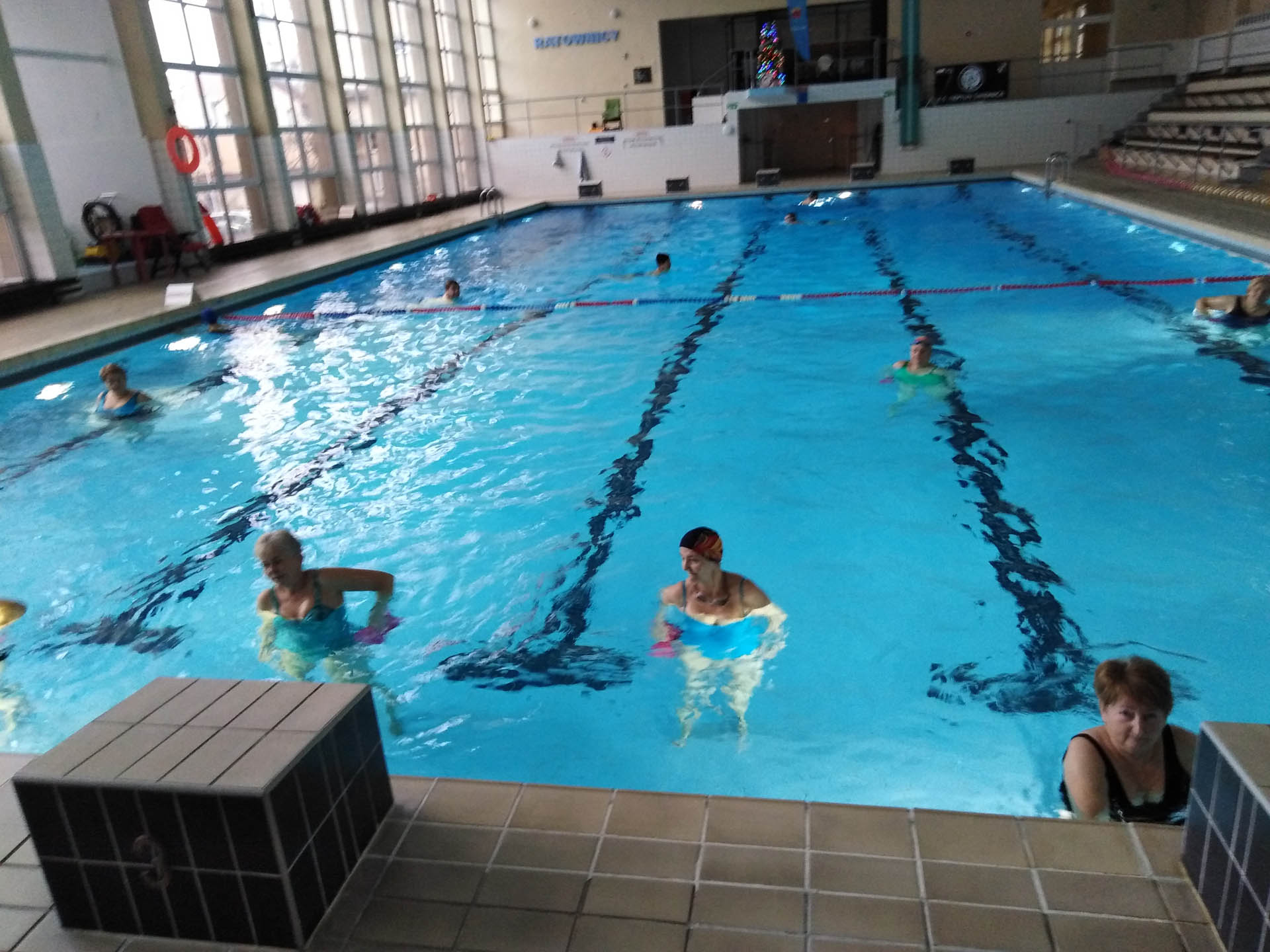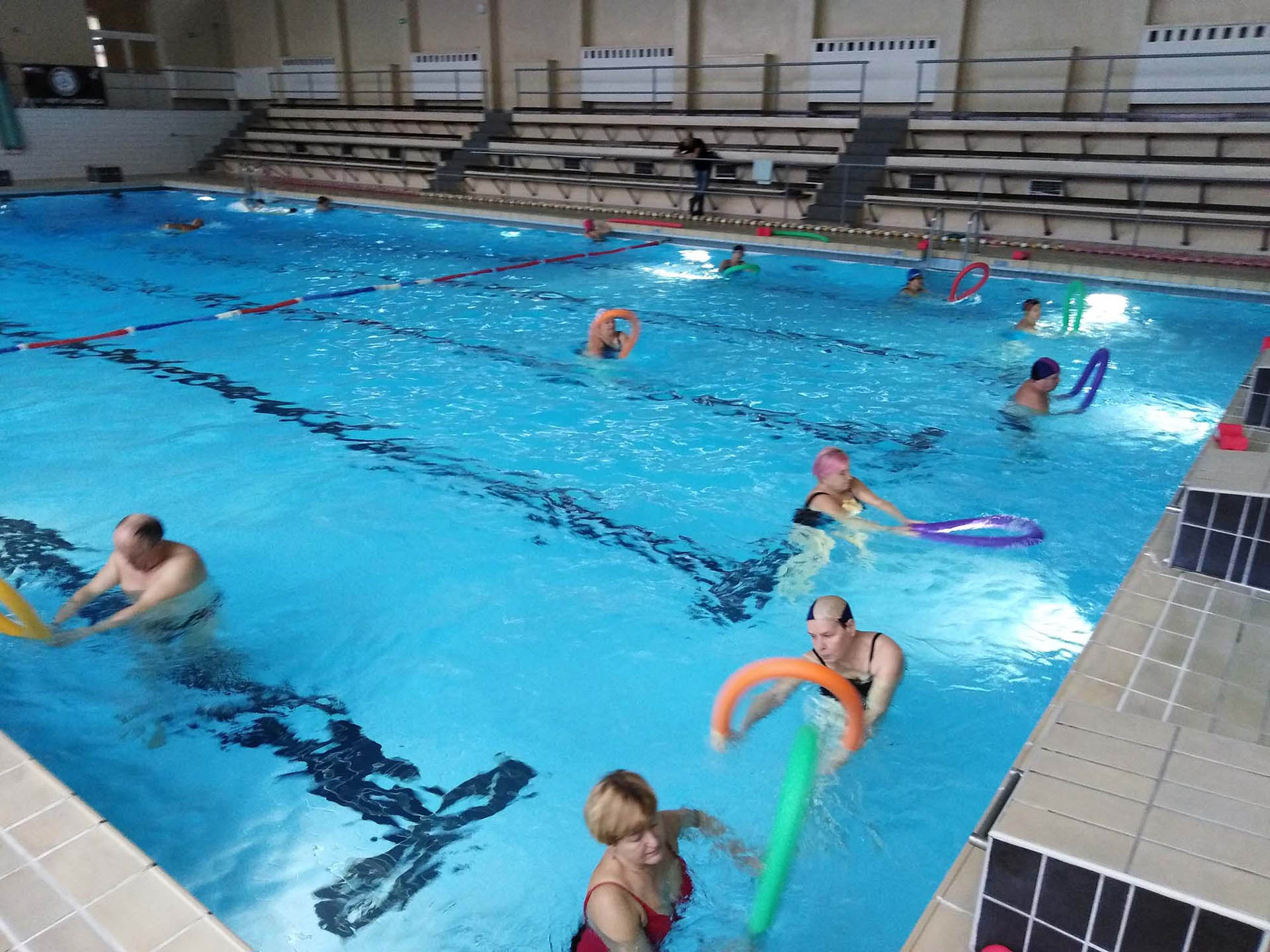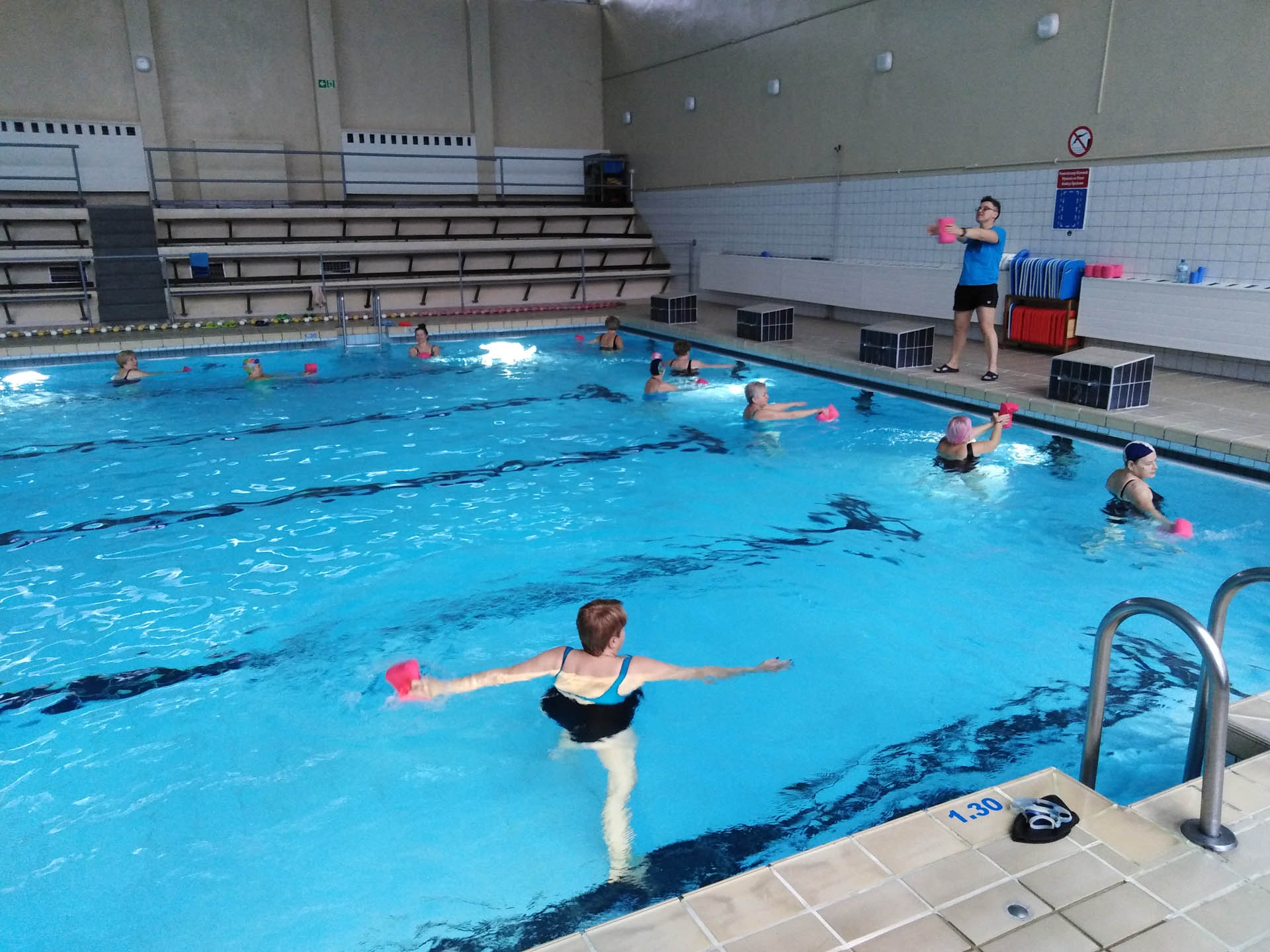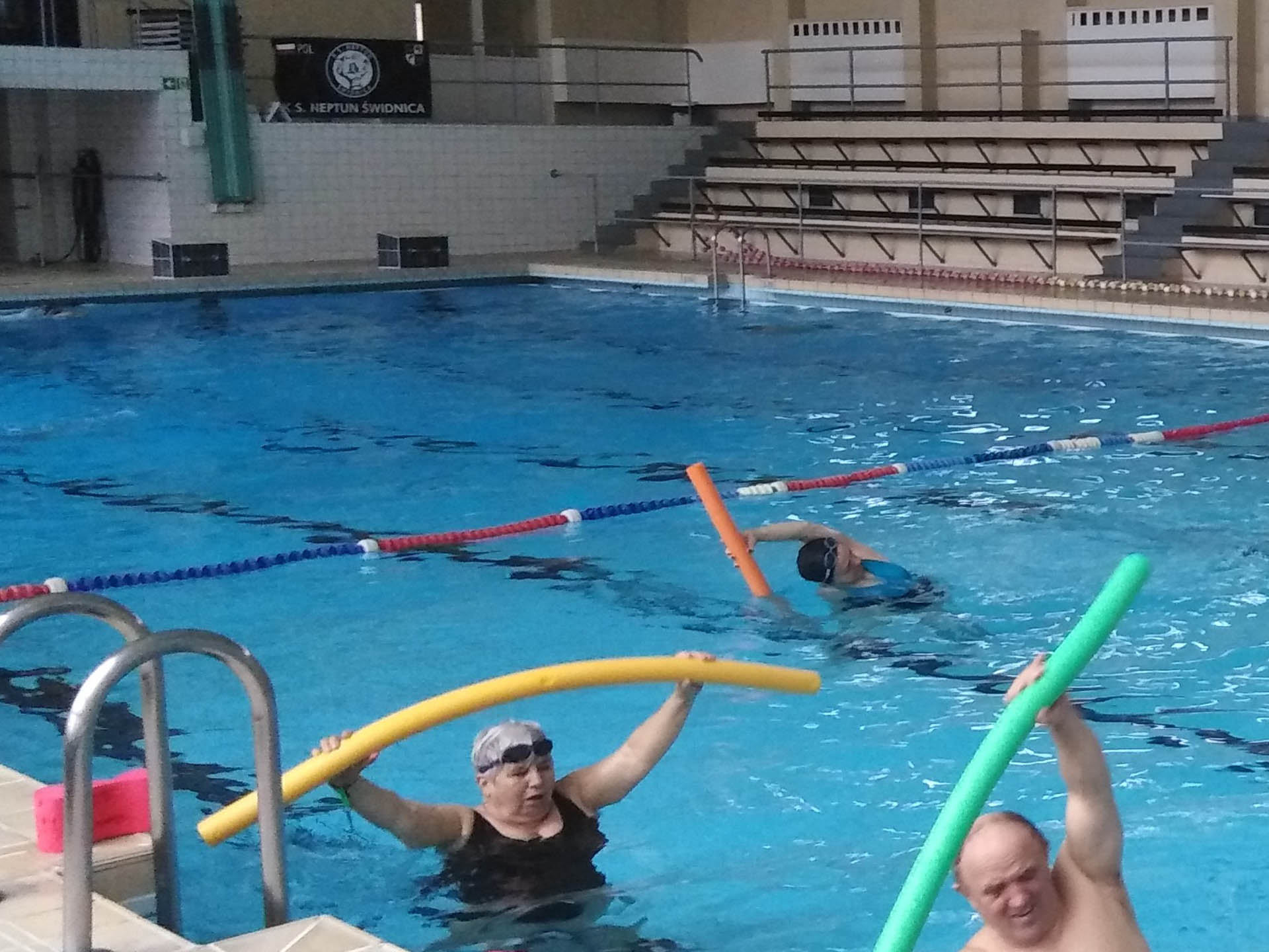 Miały formę Aquaerobic’u czyli ćwiczeń gimnastycznych wykonywanych w wodzie, bez lub z dodatkowymi akcesoriami (np.: deski, piłki, makarony piankowe). Do zalet tej formy aktywności, podkreślanej także przez seniorów należy zaliczyć dużą łatwość wykonywania ćwiczeń i odciążenie stawów (szczególnie kolanowych). Różnorodność, łatwość wykonania i uniwersalność sprawiły, że zajęcia na basenie spodobały się uczestnikom. Seniorzy, którzy potrafili pływać mogli zamiennie podczas zajęć doskonalić technikę pływania.