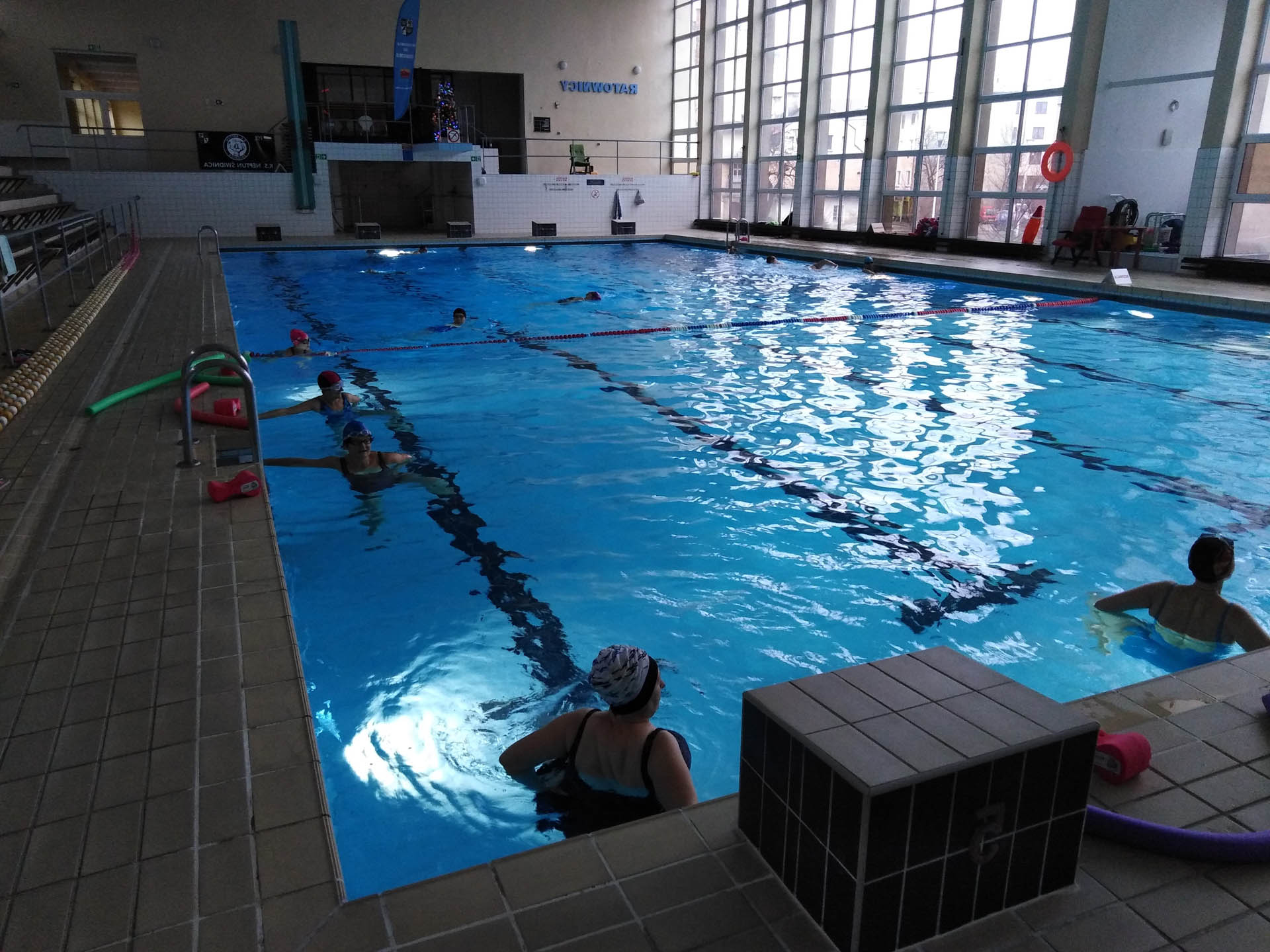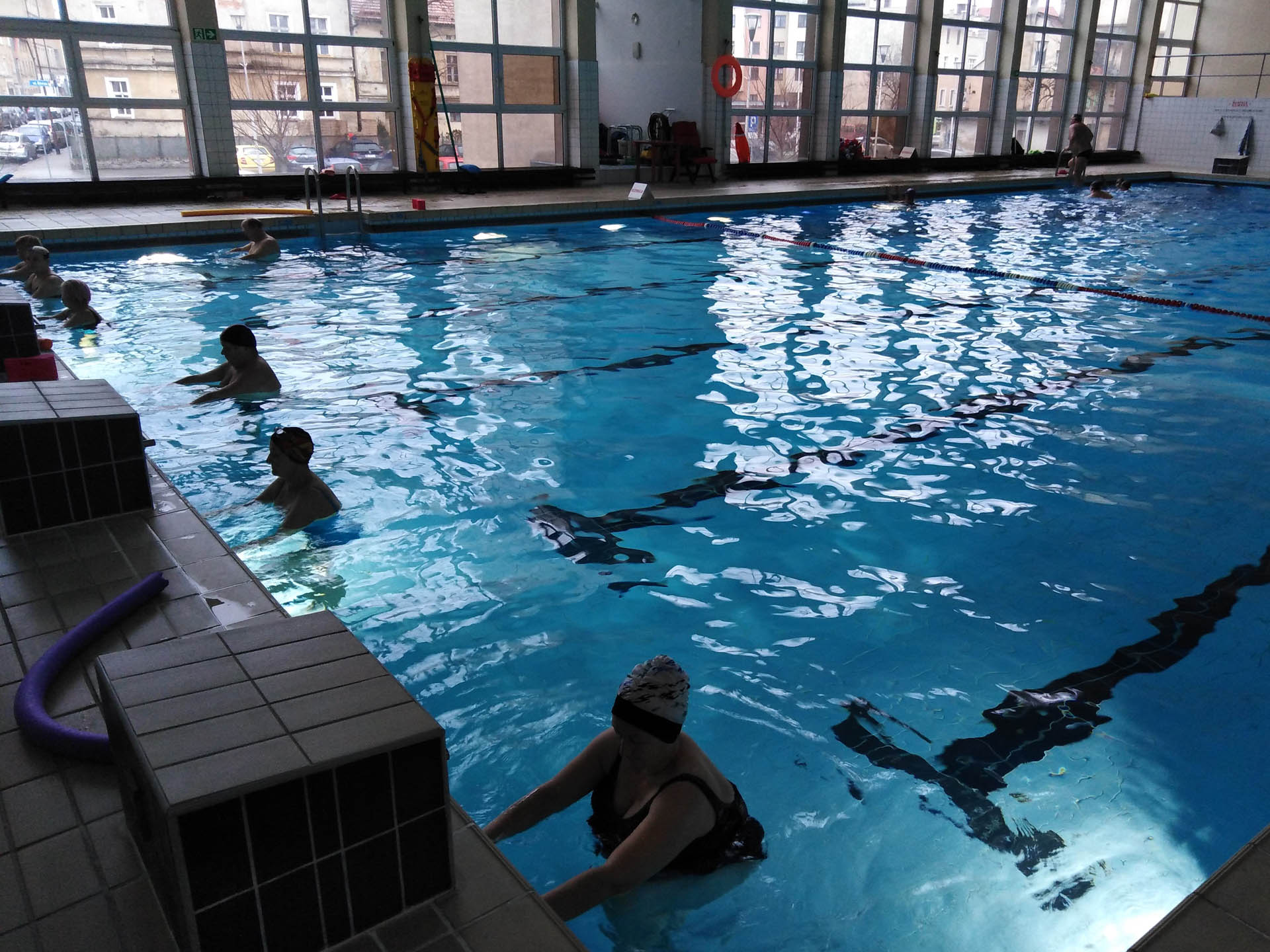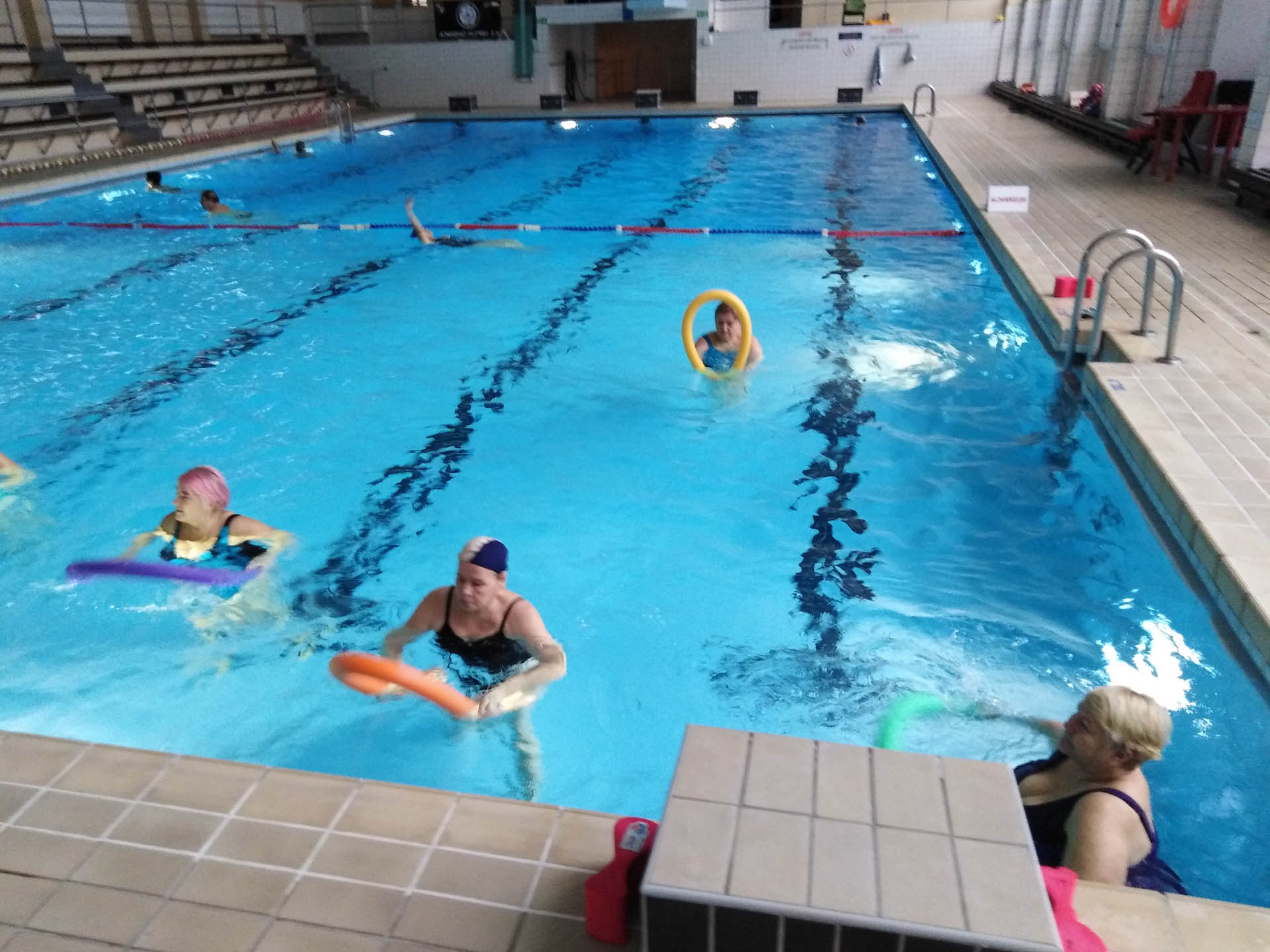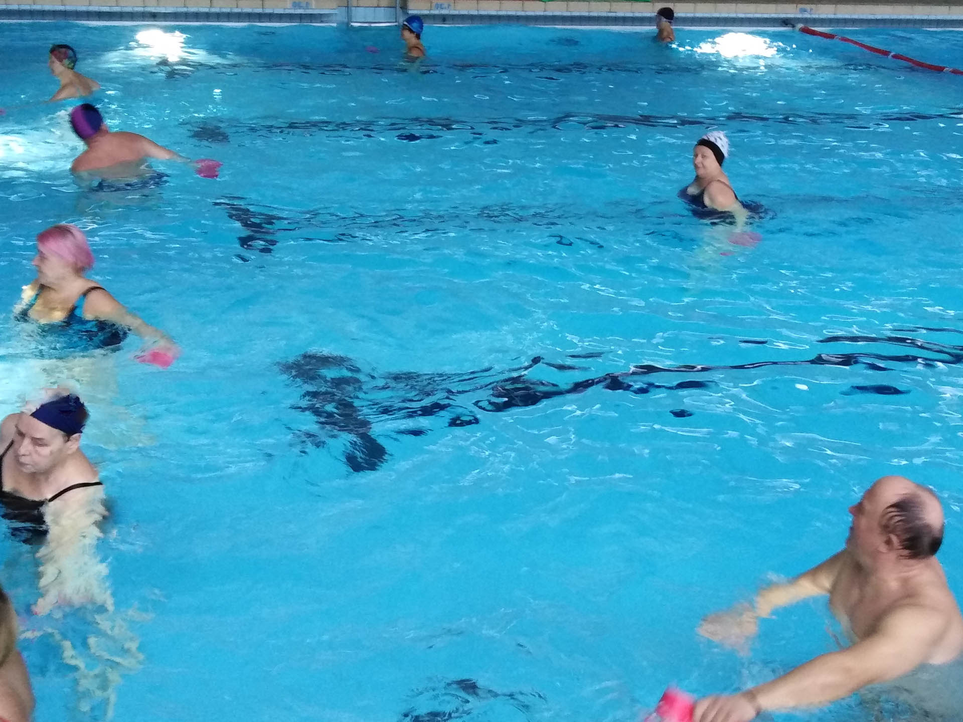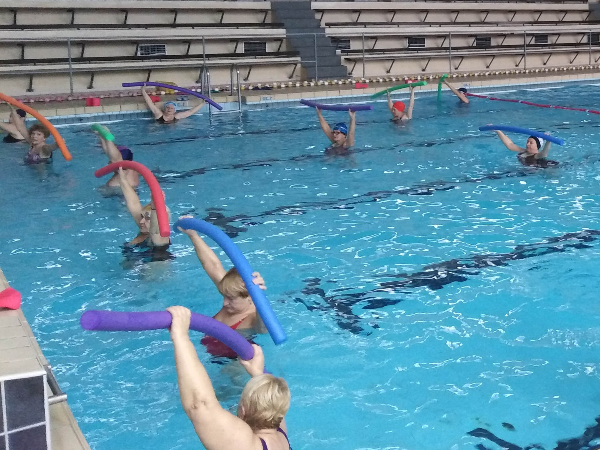 Miały formę Aquaerobic’u czyli ćwiczeń gimnastycznych wykonywanych w wodzie, bez lub z dodatkowymi akcesoriami (np.: deski, piłki, makarony piankowe). Do zalet tej formy aktywności, podkreślanej także przez seniorów należy zaliczyć dużą łatwość wykonywania ćwiczeń i odciążenie stawów (szczególnie kolanowych). Różnorodność, łatwość wykonania i uniwersalność sprawiły, że zajęcia na basenie spodobały się uczestnikom. Seniorzy, którzy potrafili pływać mogli zamiennie podczas zajęć doskonalić technikę pływania.