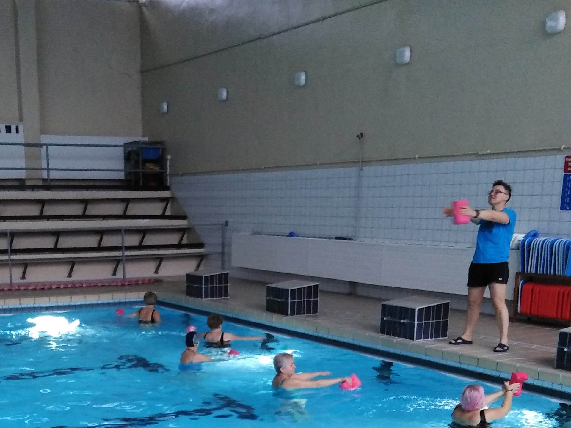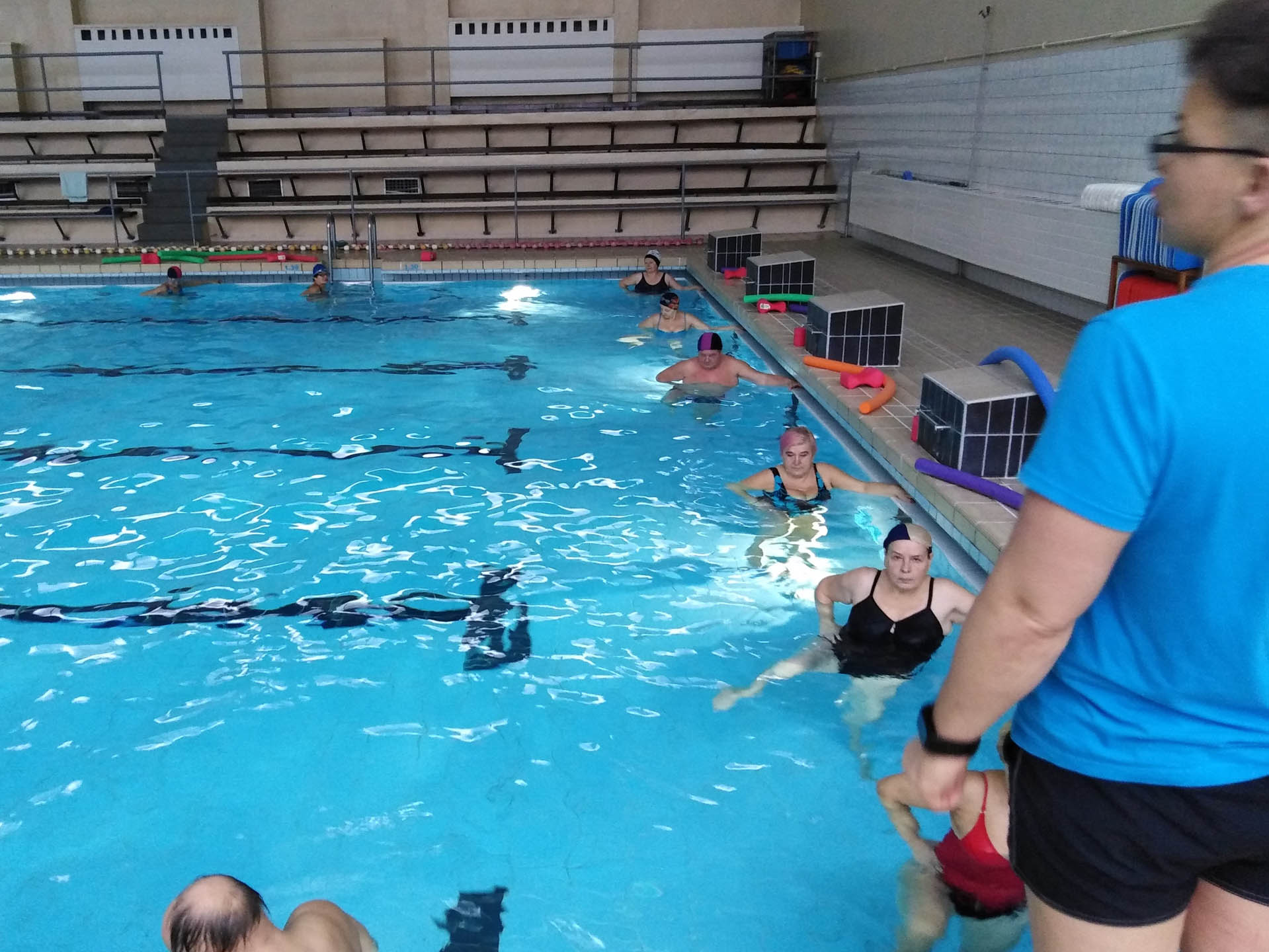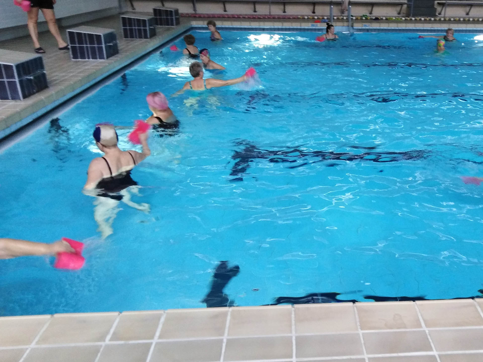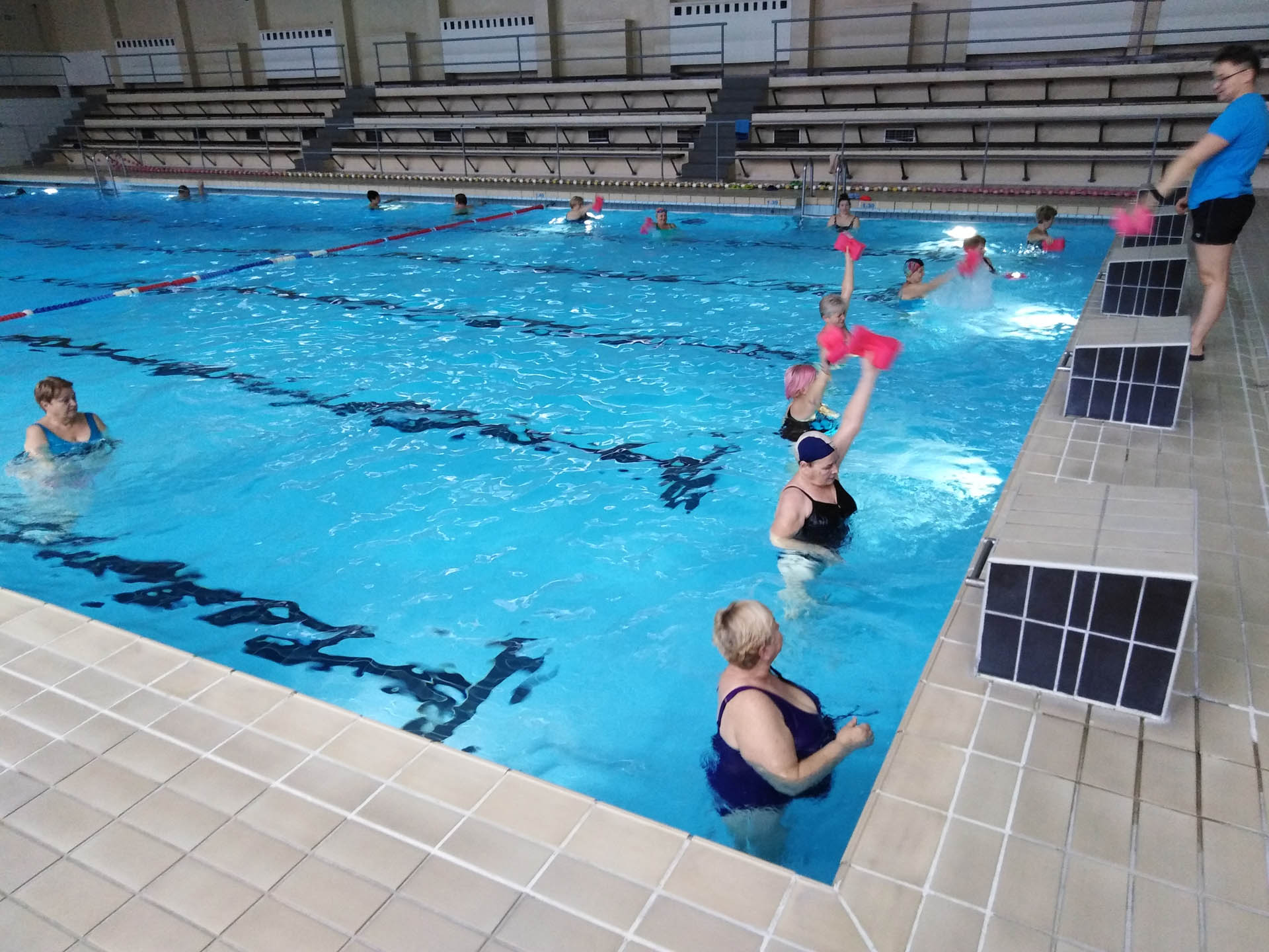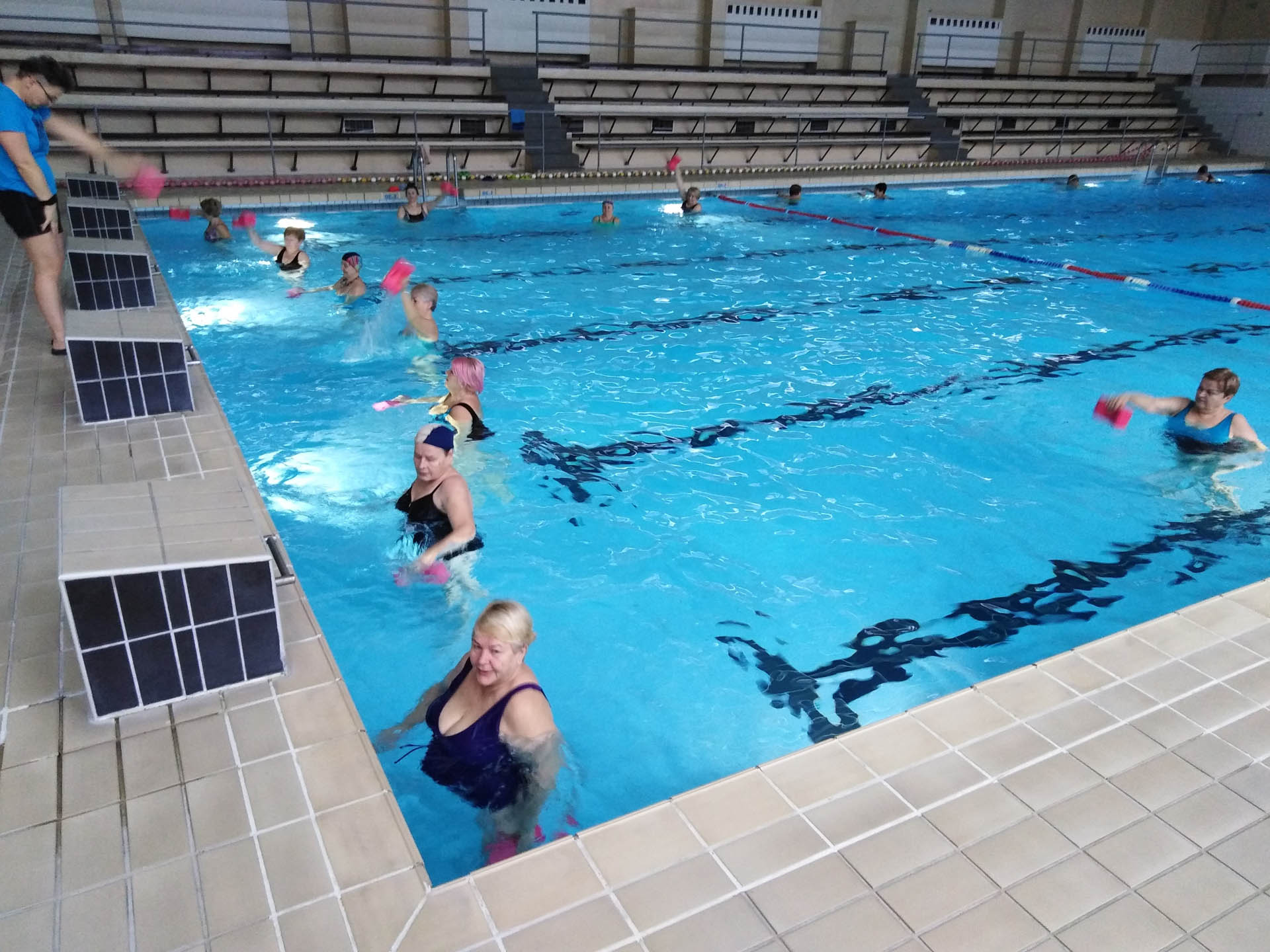 Miały formę Aquaerobic’u czyli ćwiczeń gimnastycznych wykonywanych w wodzie, bez lub z dodatkowymi akcesoriami (np.: deski, piłki, makarony piankowe). Do zalet tej formy aktywności, podkreślanej także przez seniorów należy zaliczyć dużą łatwość wykonywania ćwiczeń i odciążenie stawów (szczególnie kolanowych). Różnorodność, łatwość wykonania i uniwersalność sprawiły, że zajęcia na basenie spodobały się uczestnikom. Seniorzy, którzy potrafili pływać mogli zamiennie podczas zajęć doskonalić technikę pływania.