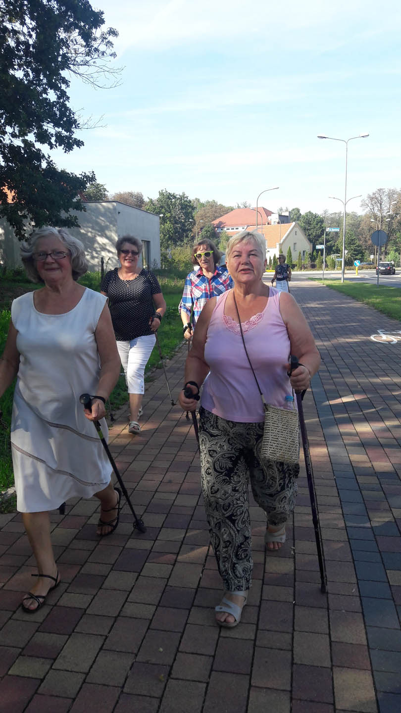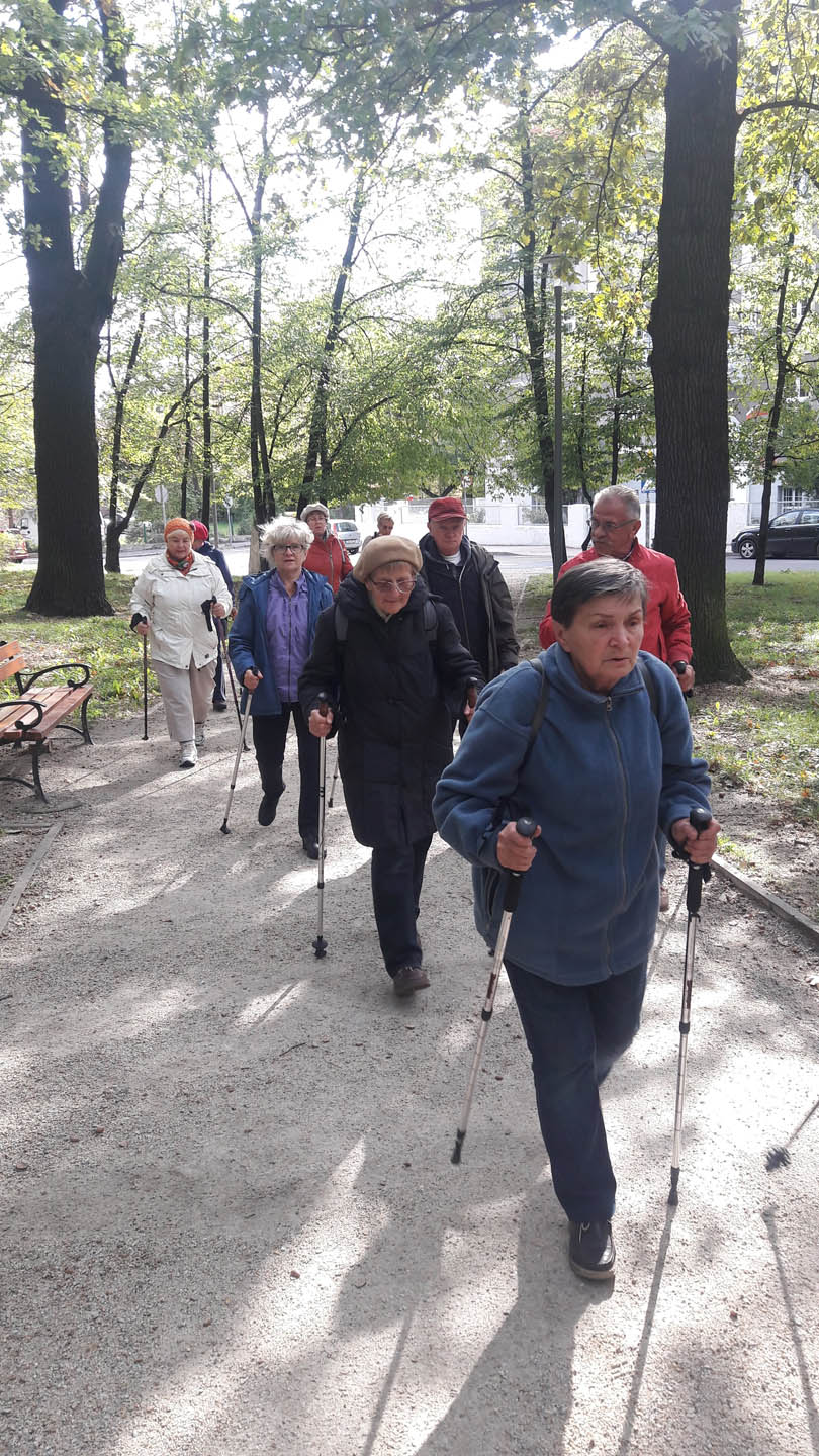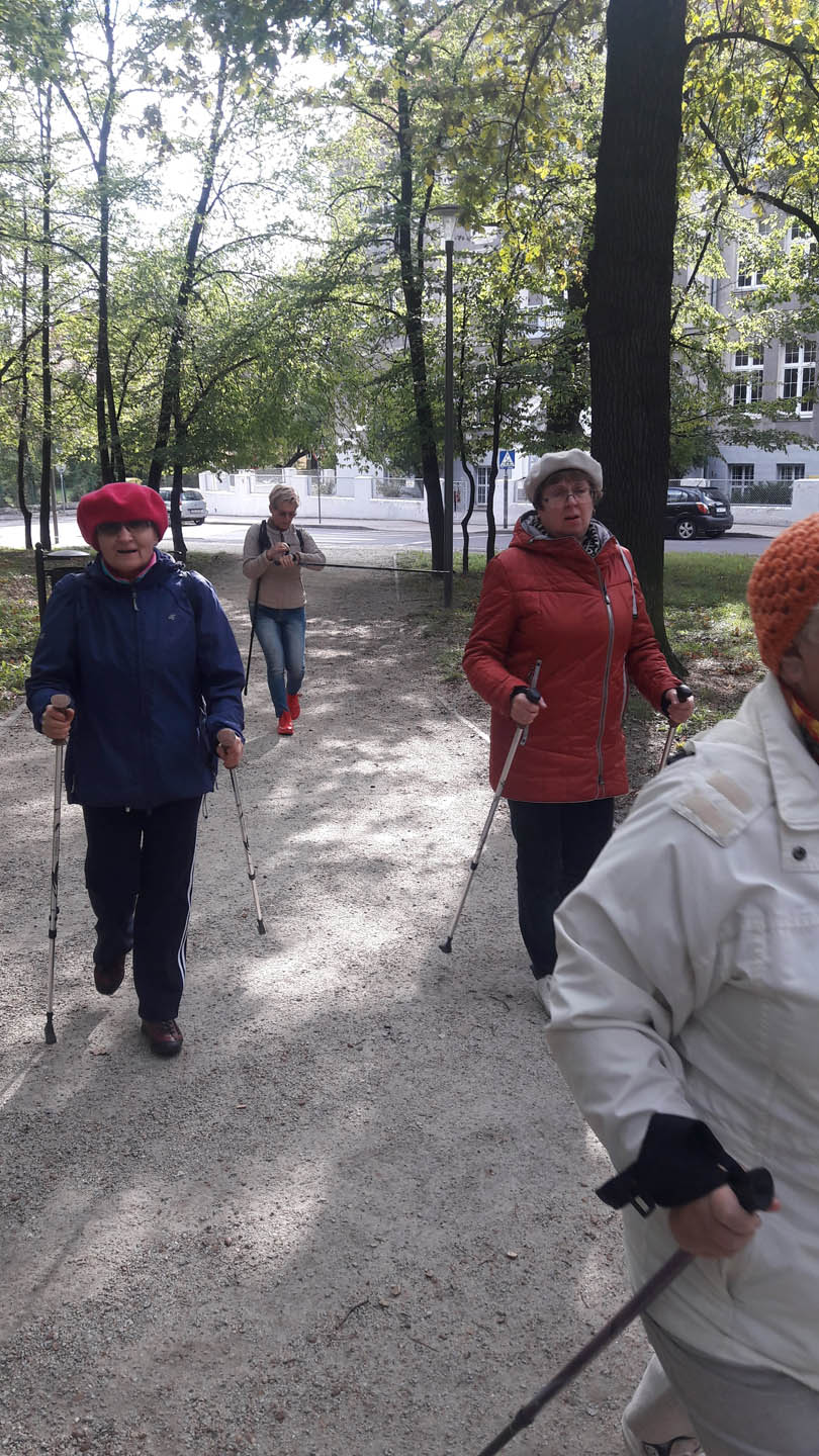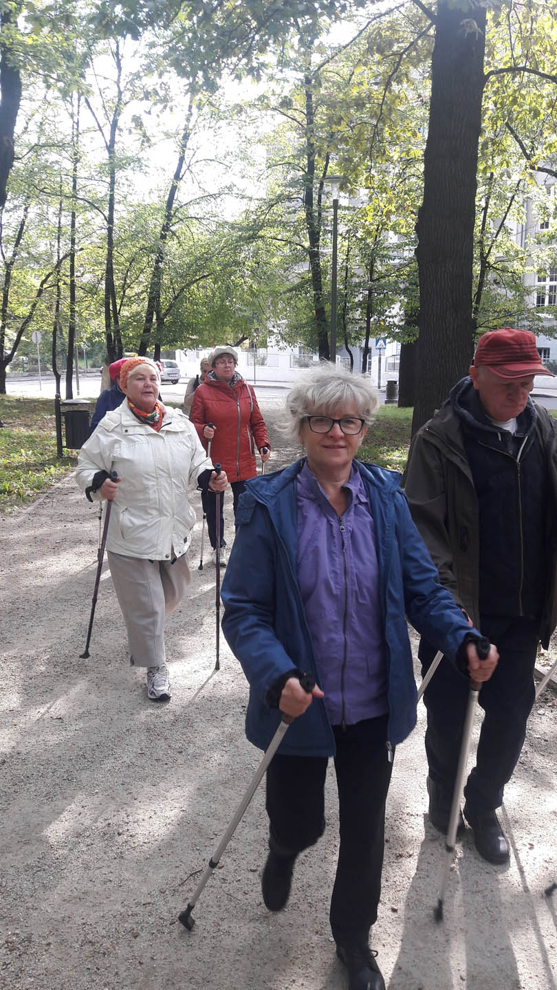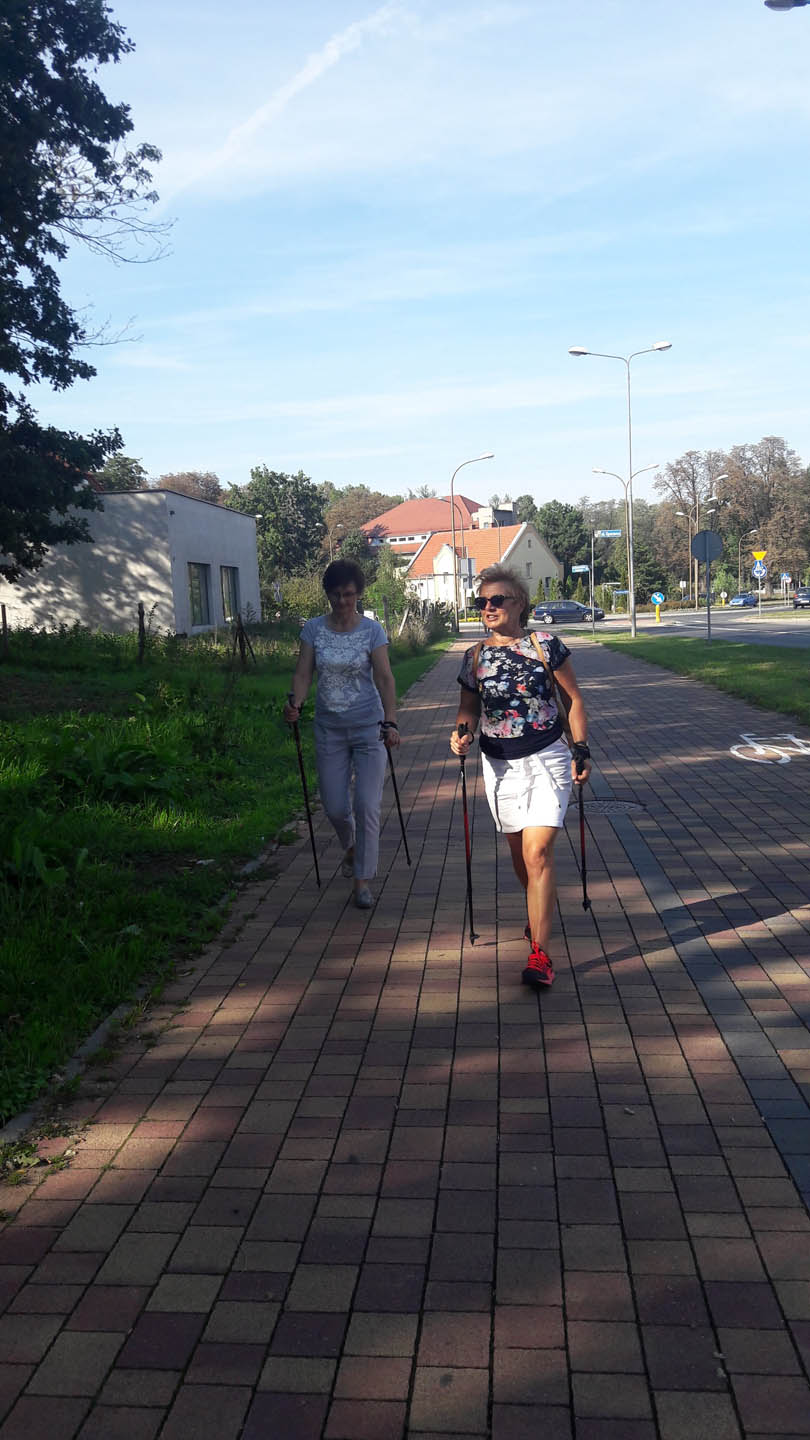 Na początku zajęć w każdej grupie instruktorka przeprowadziła instruktaż prawidłowego chodzenia metodą nordic walking oraz przekazywała zasady prawidłowego ustawienia wysokości kijków i utrzymania prawidłowej postawy. Każde kolejne zajęcia realizowane były wg harmonogramu: ćwiczenia rozgrzewkowe, pokonanie określonej długości trasy (ćwiczenie różnych technik marszu Nordic Walking), ćwiczenia rozciągające. Seniorzy wykazywali bardzo duże zainteresowanie ćwiczeniami i chętnie uczestniczyli w zajęciach. Podczas zajęć informowali instruktorkę o tym, że fakt, że zaczęli chodzić z kijami spowodował poprawę ich kondycji fizycznej i lepsze samopoczucie.