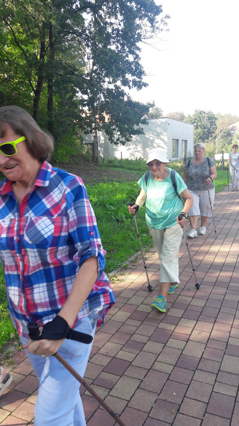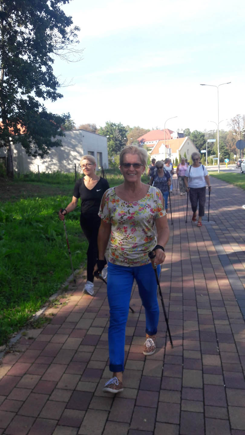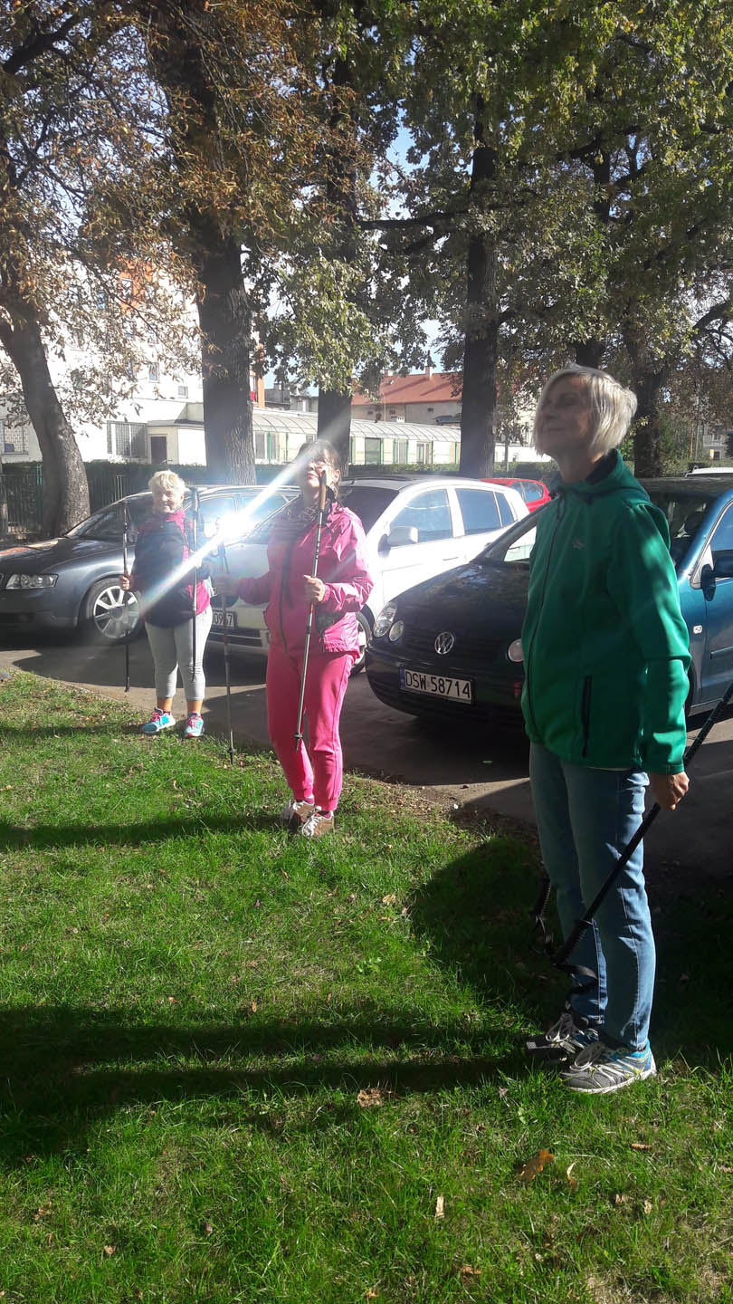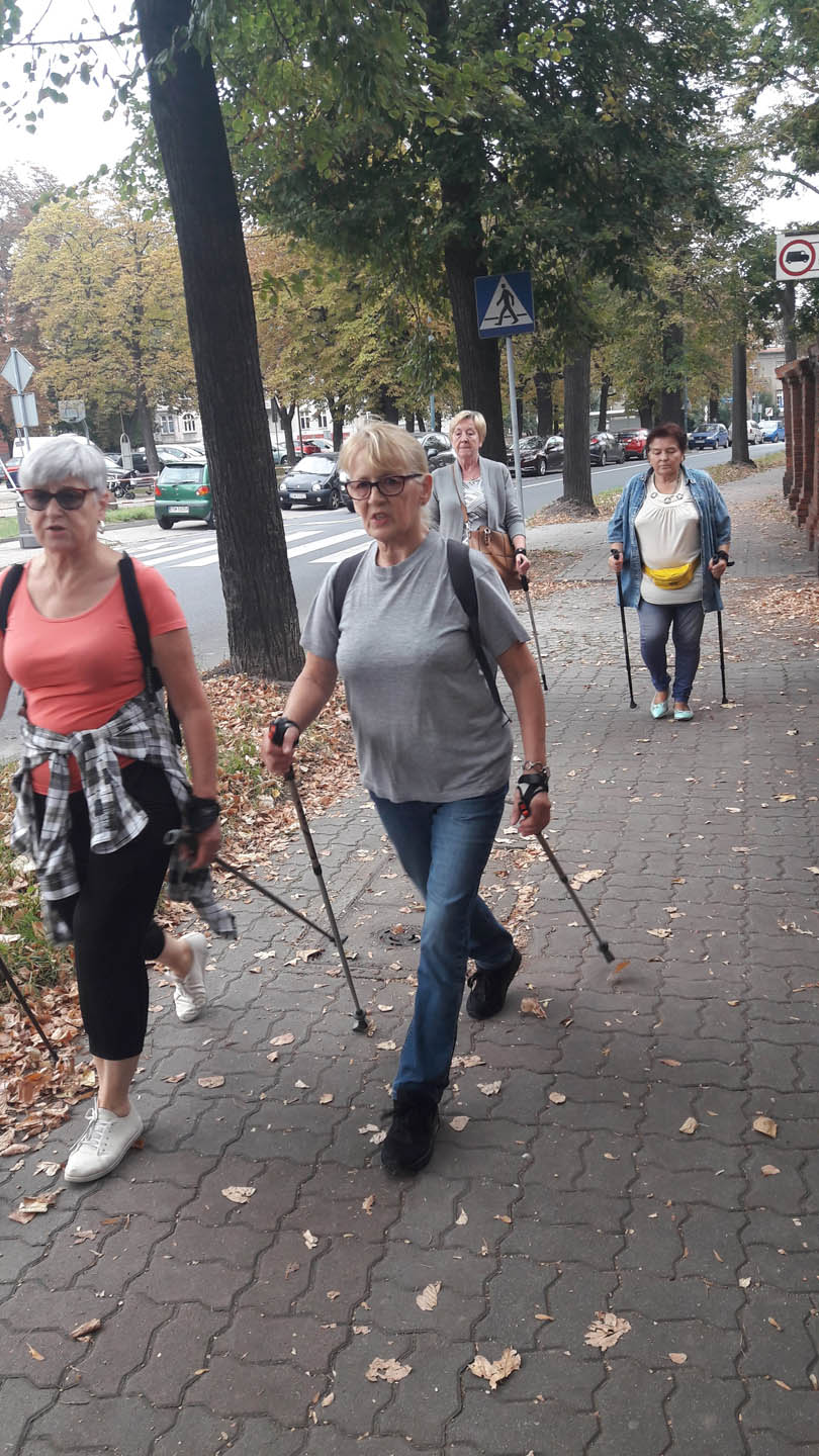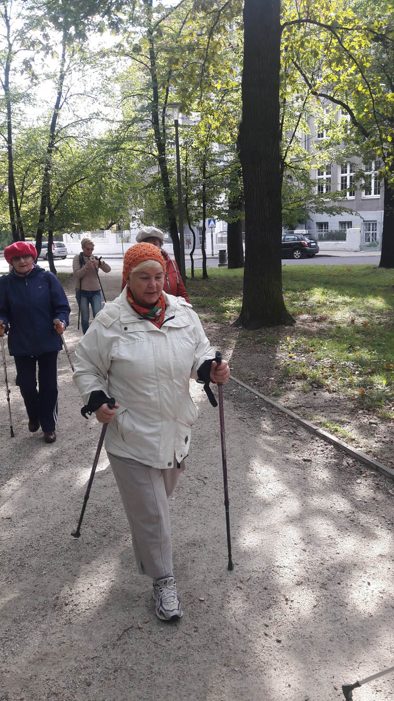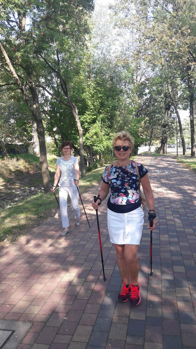 Na początku zajęć w każdej grupie instruktorka przeprowadziła instruktaż prawidłowego chodzenia metodą nordic walking oraz przekazywała zasady prawidłowego ustawienia wysokości kijków i utrzymania prawidłowej postawy. Każde kolejne zajęcia realizowane były wg harmonogramu: ćwiczenia rozgrzewkowe, pokonanie określonej długości trasy (ćwiczenie różnych technik marszu Nordic Walking), ćwiczenia rozciągające. Seniorzy wykazywali bardzo duże zainteresowanie ćwiczeniami i chętnie uczestniczyli w zajęciach. Podczas zajęć informowali instruktorkę o tym, że fakt, że zaczęli chodzić z kijami spowodował poprawę ich kondycji fizycznej i lepsze samopoczucie.