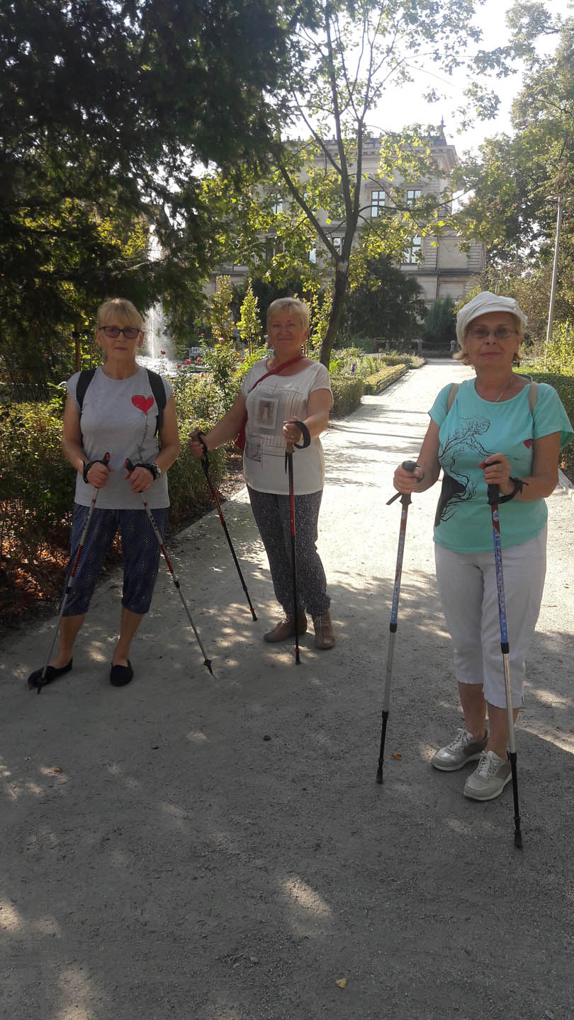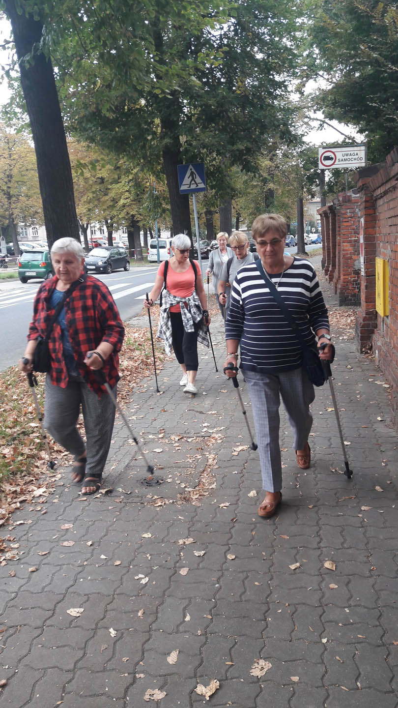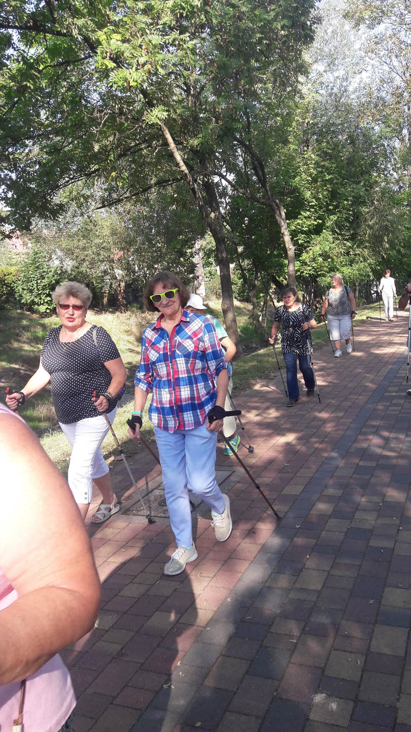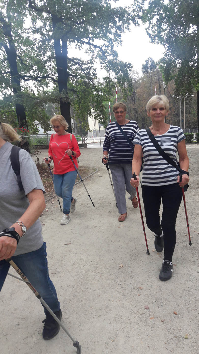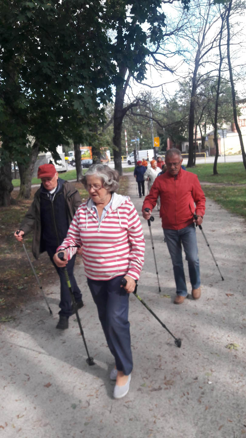 Na początku zajęć w każdej grupie instruktorka przeprowadziła instruktaż prawidłowego chodzenia metodą nordic walking oraz przekazywała zasady prawidłowego ustawienia wysokości kijków i utrzymania prawidłowej postawy. Każde kolejne zajęcia realizowane były wg harmonogramu: ćwiczenia rozgrzewkowe, pokonanie określonej długości trasy (ćwiczenie różnych technik marszu Nordic Walking), ćwiczenia rozciągające. Seniorzy wykazywali bardzo duże zainteresowanie ćwiczeniami i chętnie uczestniczyli w zajęciach. Podczas zajęć informowali instruktorkę o tym, że fakt, że zaczęli chodzić z kijami spowodował poprawę ich kondycji fizycznej i lepsze samopoczucie.