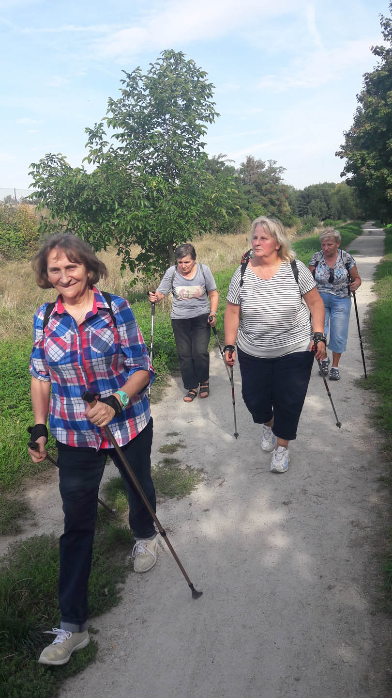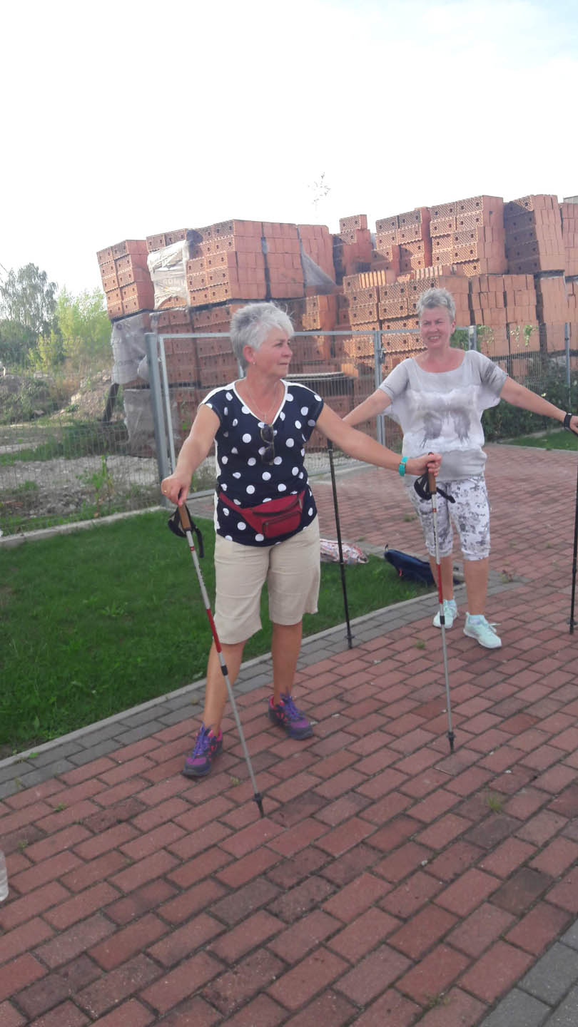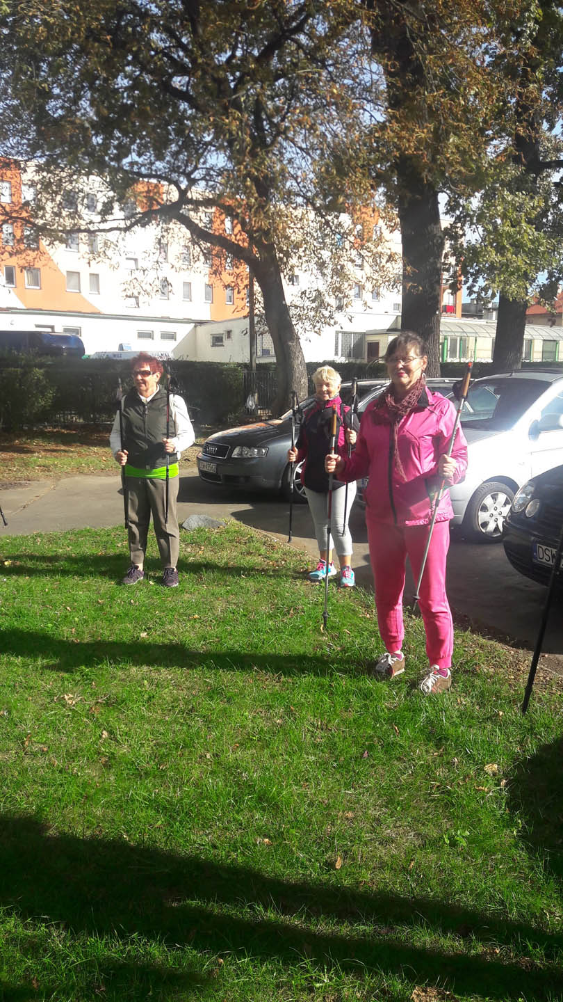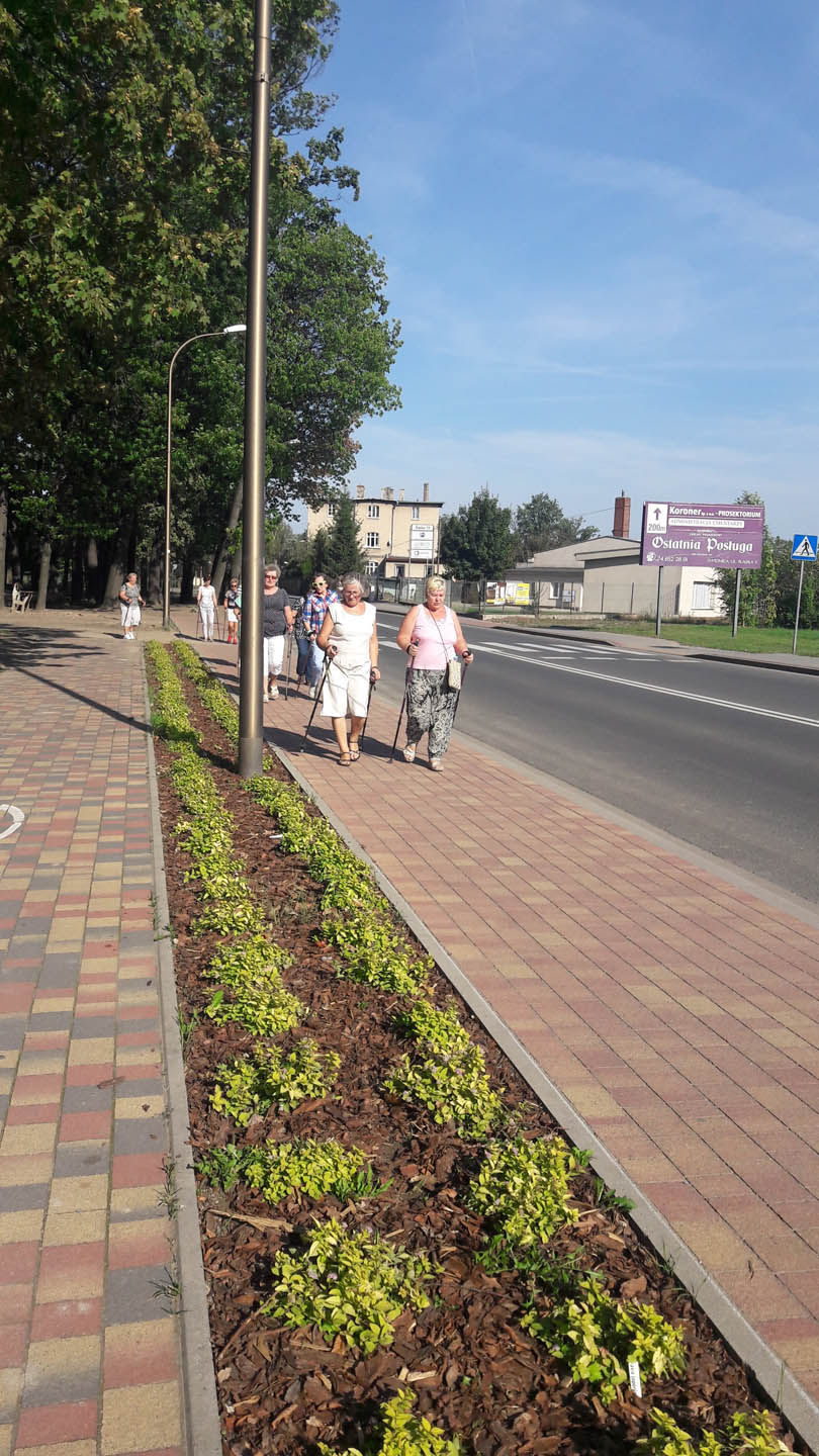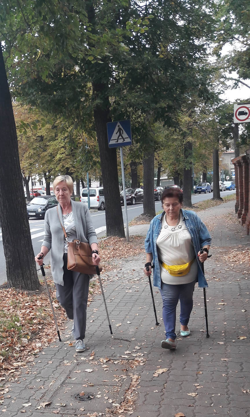 Na początku zajęć w każdej grupie instruktorka przeprowadziła instruktaż prawidłowego chodzenia metodą nordic walking oraz przekazywała zasady prawidłowego ustawienia wysokości kijków i utrzymania prawidłowej postawy. Każde kolejne zajęcia realizowane były wg harmonogramu: ćwiczenia rozgrzewkowe, pokonanie określonej długości trasy (ćwiczenie różnych technik marszu Nordic Walking), ćwiczenia rozciągające. Seniorzy wykazywali bardzo duże zainteresowanie ćwiczeniami i chętnie uczestniczyli w zajęciach. Podczas zajęć informowali instruktorkę o tym, że fakt, że zaczęli chodzić z kijami spowodował poprawę ich kondycji fizycznej i lepsze samopoczucie.