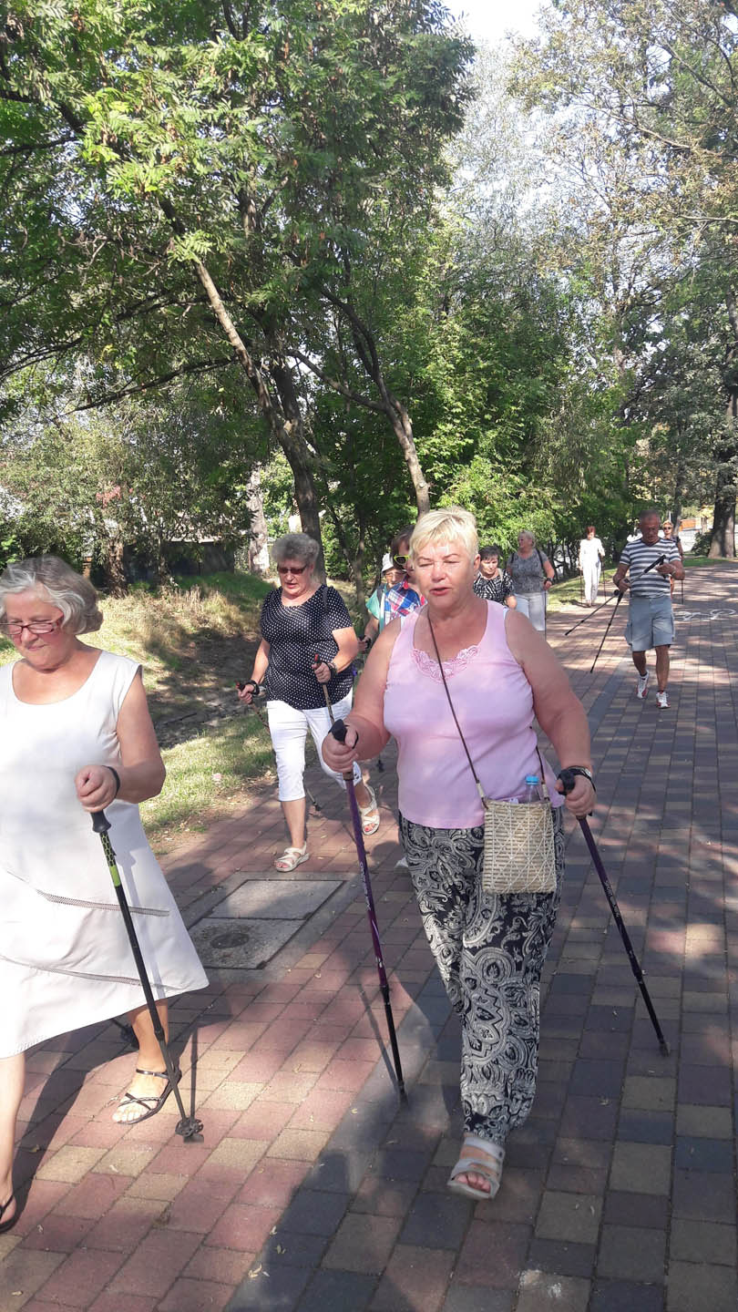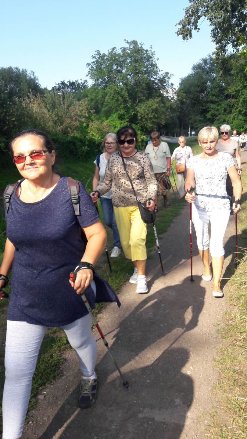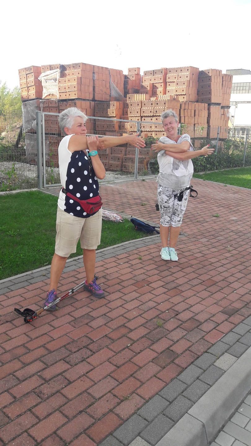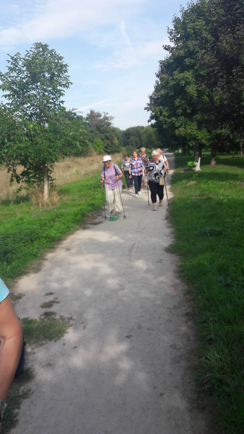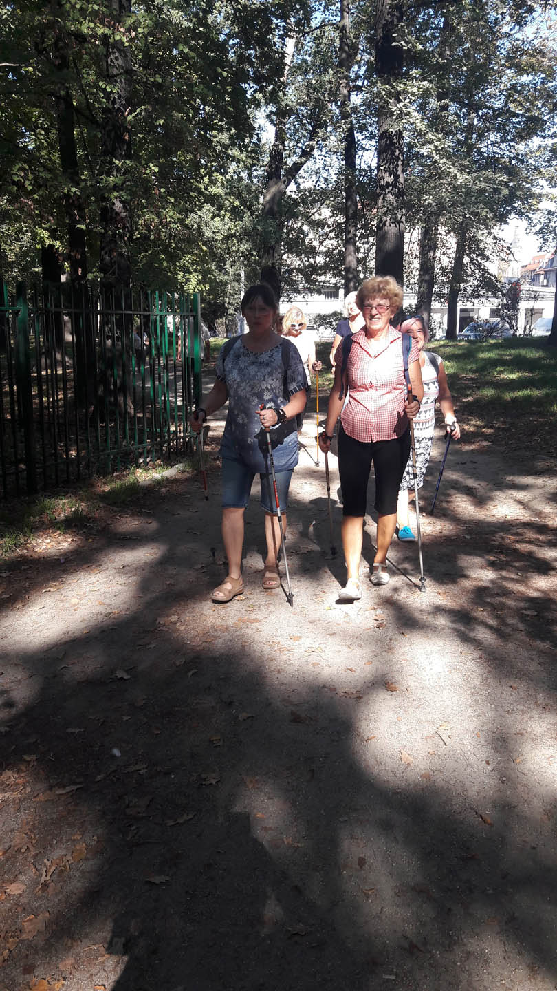 Na początku zajęć w każdej grupie instruktorka przeprowadziła instruktaż prawidłowego chodzenia metodą nordic walking oraz przekazywała zasady prawidłowego ustawienia wysokości kijków i utrzymania prawidłowej postawy. Każde kolejne zajęcia realizowane były wg harmonogramu: ćwiczenia rozgrzewkowe, pokonanie określonej długości trasy (ćwiczenie różnych technik marszu Nordic Walking), ćwiczenia rozciągające. Seniorzy wykazywali bardzo duże zainteresowanie ćwiczeniami i chętnie uczestniczyli w zajęciach. Podczas zajęć informowali instruktorkę o tym, że fakt, że zaczęli chodzić z kijami spowodował poprawę ich kondycji fizycznej i lepsze samopoczucie.