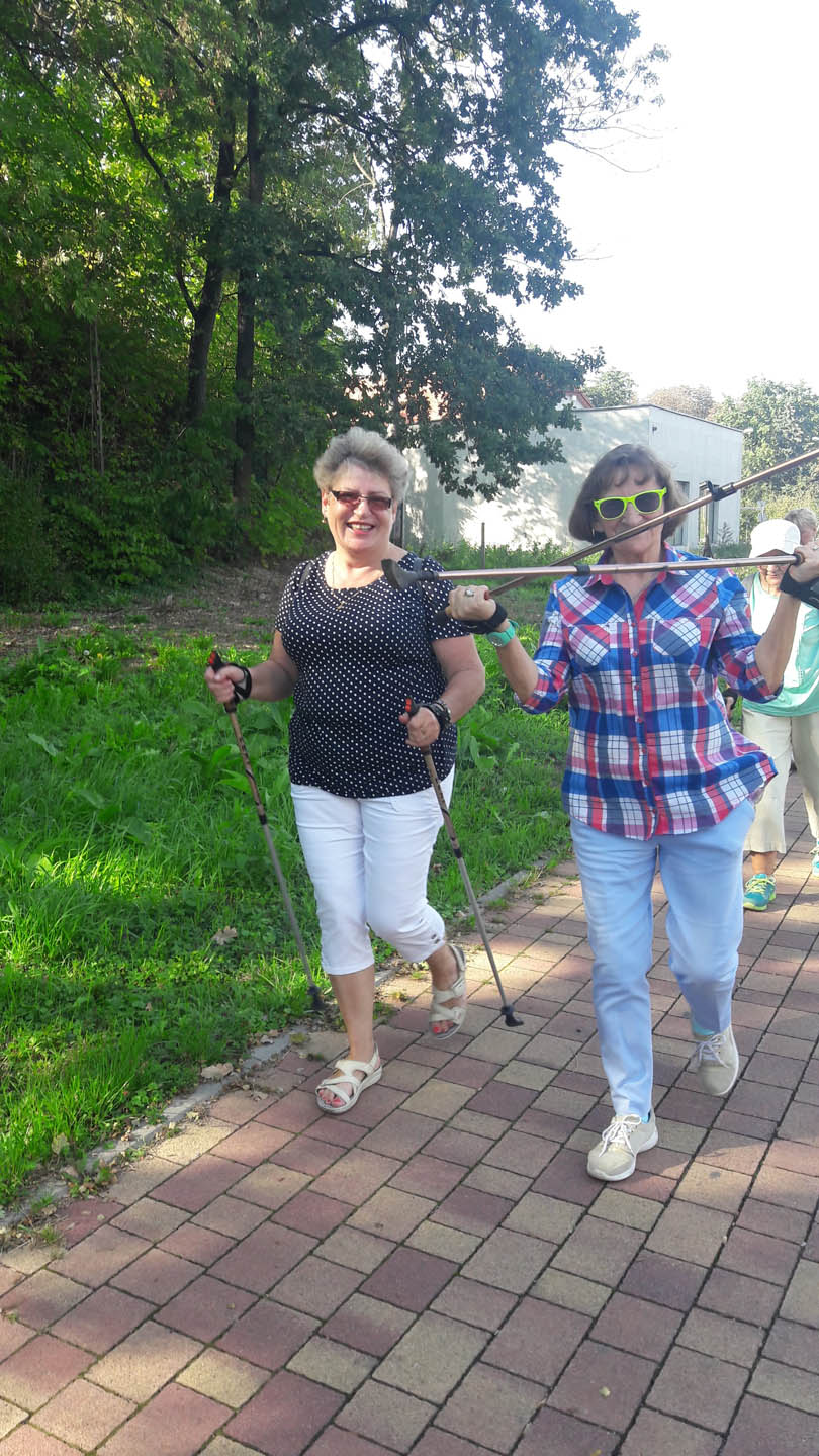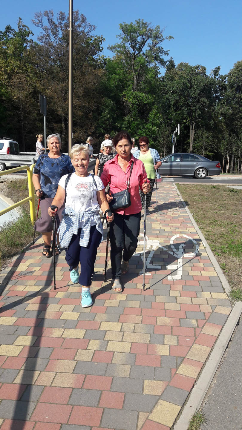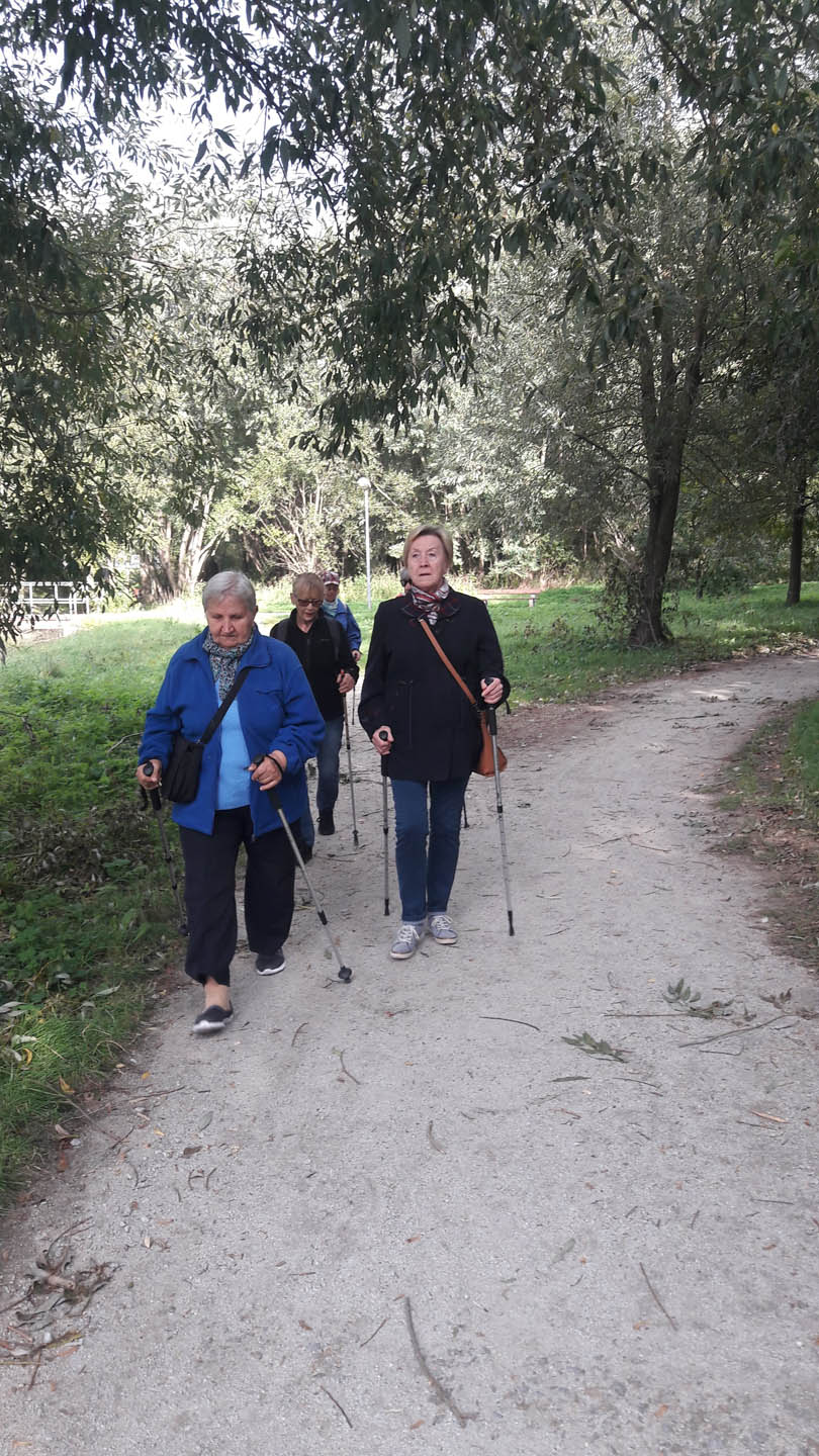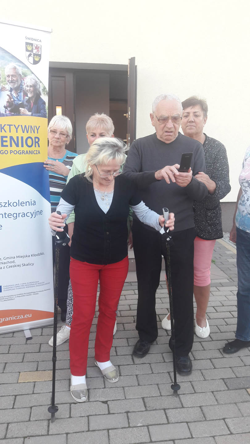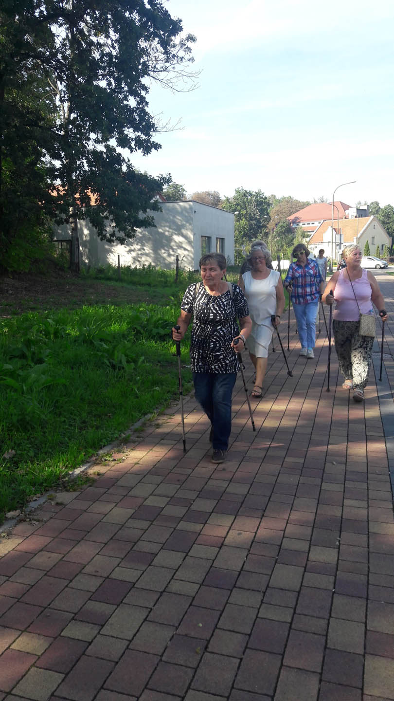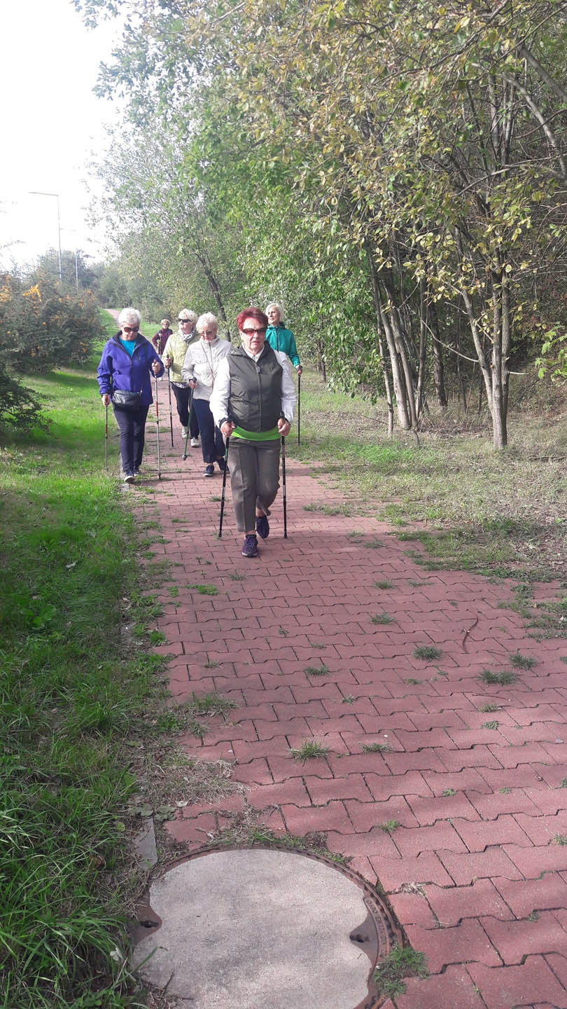Na początku zajęć w każdej grupie instruktorka przeprowadziła instruktaż prawidłowego chodzenia metodą nordic walking oraz przekazywała zasady prawidłowego ustawienia wysokości kijków i utrzymania prawidłowej postawy. Każde kolejne zajęcia realizowane były wg harmonogramu: ćwiczenia rozgrzewkowe, pokonanie określonej długości trasy (ćwiczenie różnych technik marszu Nordic Walking), ćwiczenia rozciągające. Seniorzy wykazywali bardzo duże zainteresowanie ćwiczeniami i chętnie uczestniczyli w zajęciach. Podczas zajęć informowali instruktorkę o tym, że fakt, że zaczęli chodzić z kijami spowodował poprawę ich kondycji fizycznej i lepsze samopoczucie.