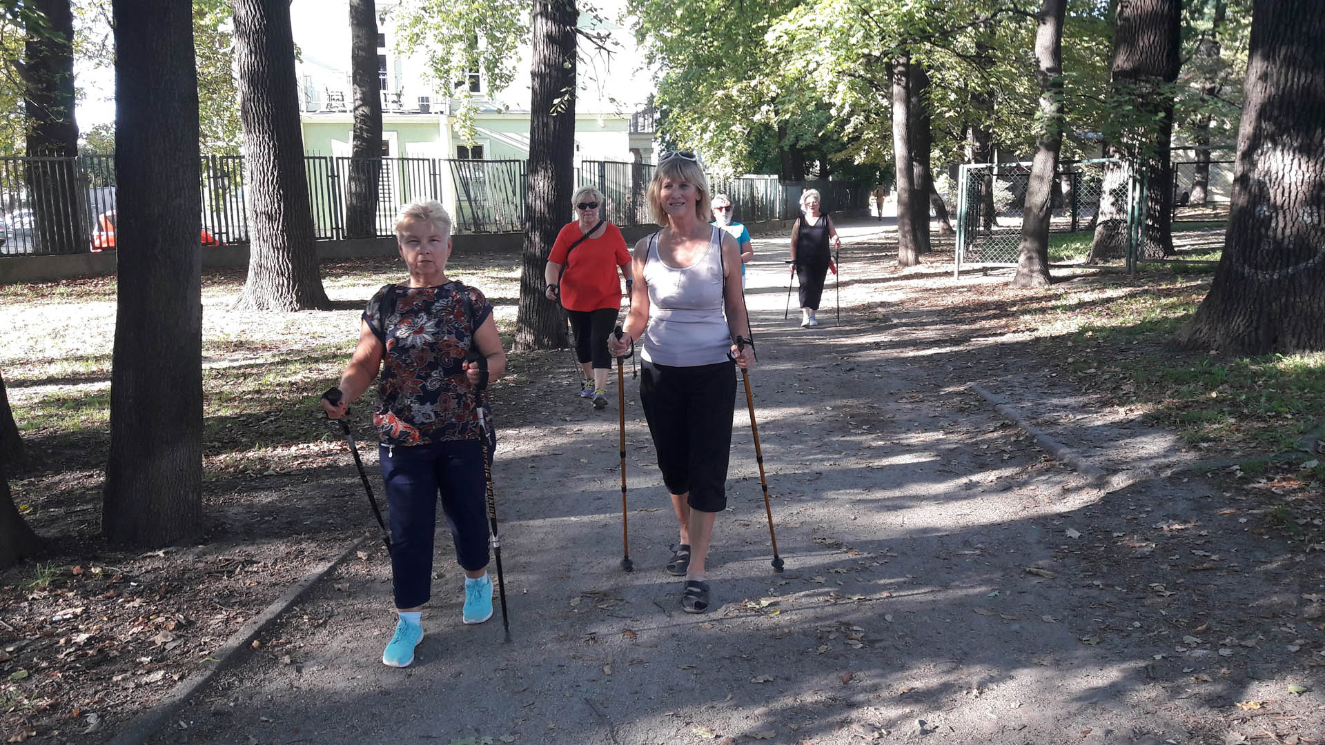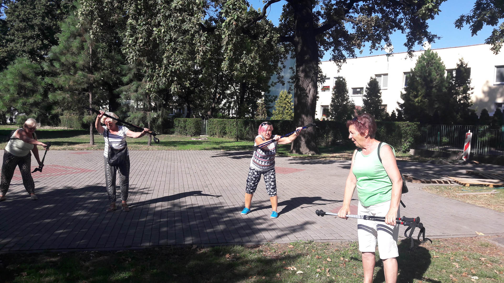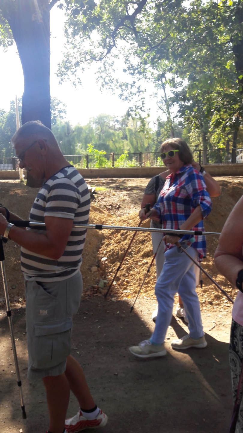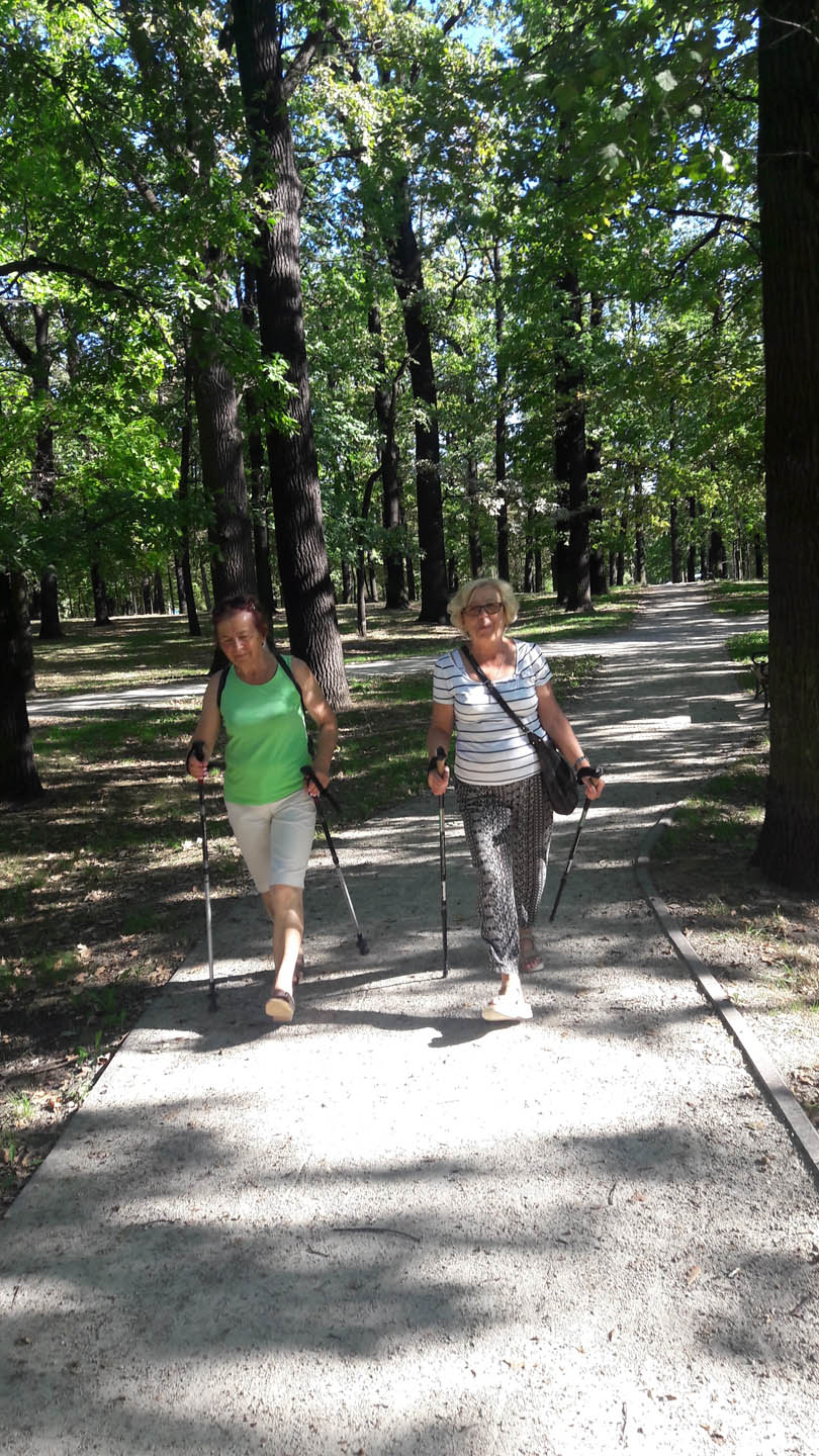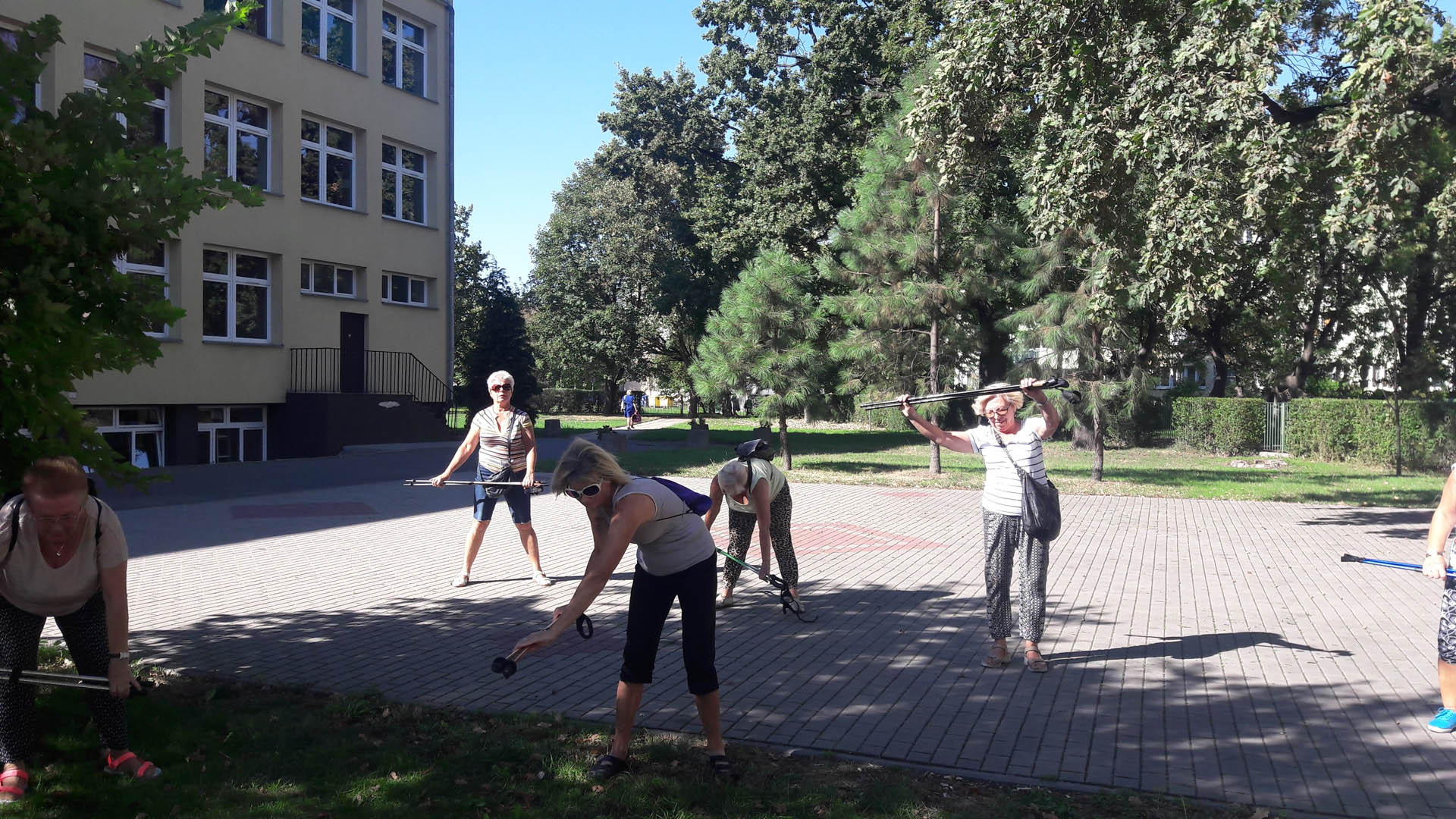 Na początku zajęć w każdej grupie instruktorka przeprowadziła instruktaż prawidłowego chodzenia metodą nordic walking oraz przekazywała zasady prawidłowego ustawienia wysokości kijków i utrzymania prawidłowej postawy. Każde kolejne zajęcia realizowane były wg harmonogramu: ćwiczenia rozgrzewkowe, pokonanie określonej długości trasy (ćwiczenie różnych technik marszu Nordic Walking), ćwiczenia rozciągające. Seniorzy wykazywali bardzo duże zainteresowanie ćwiczeniami i chętnie uczestniczyli w zajęciach. Podczas zajęć informowali instruktorkę o tym, że fakt, że zaczęli chodzić z kijami spowodował poprawę ich kondycji fizycznej i lepsze samopoczucie.