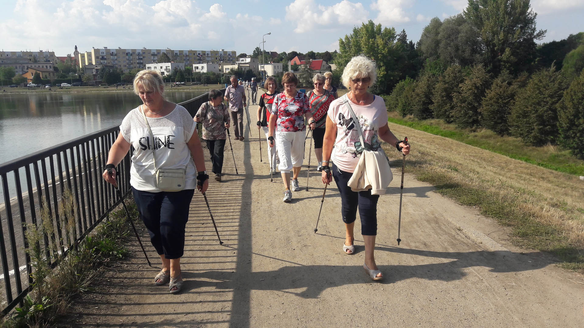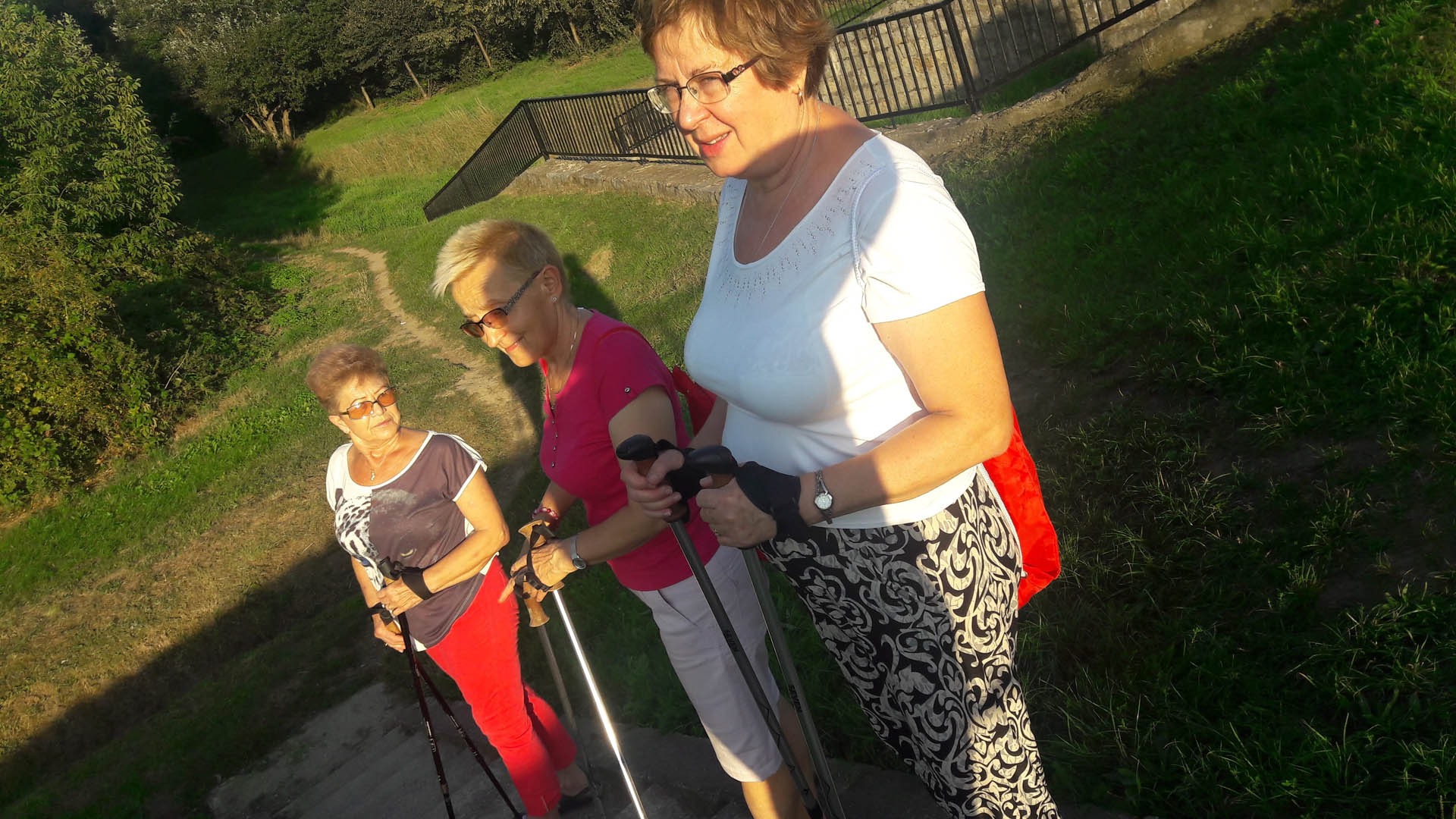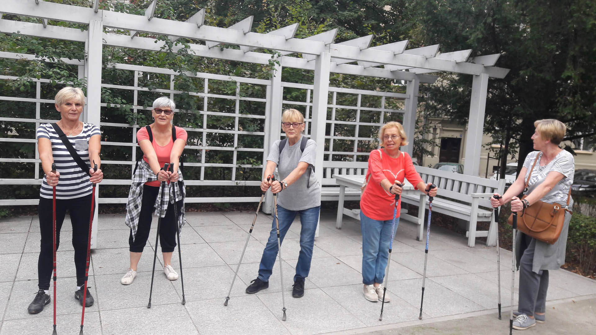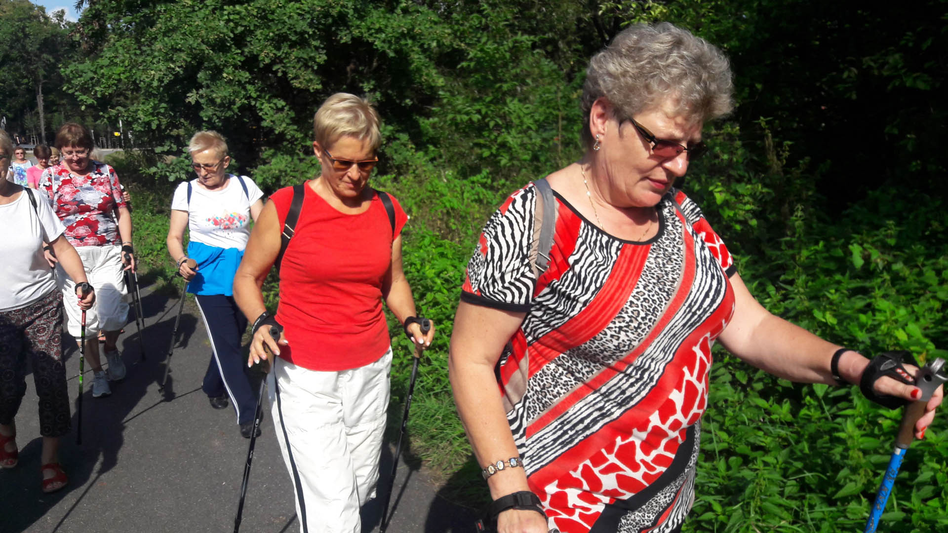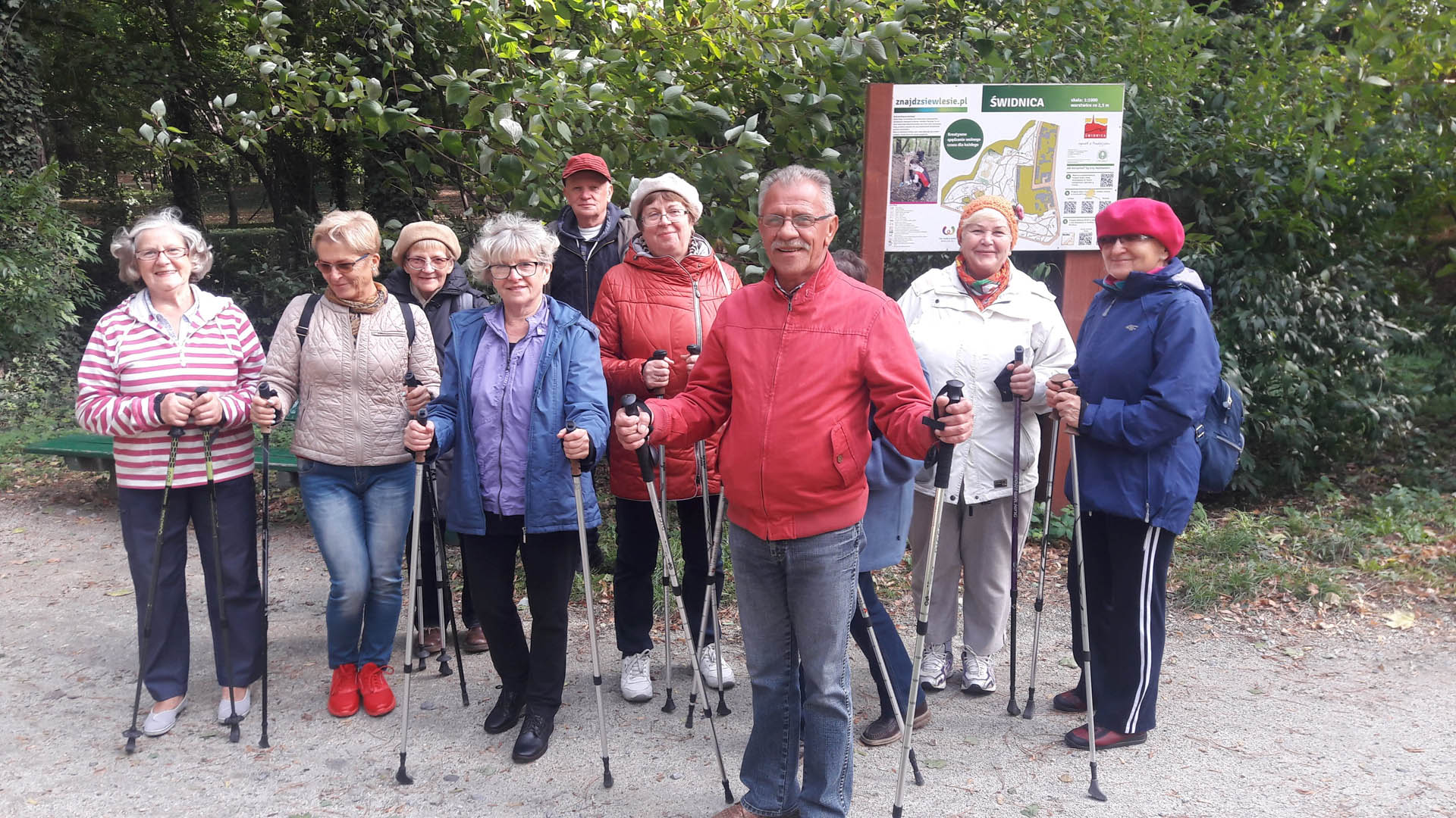 Na początku zajęć w każdej grupie instruktorka przeprowadziła instruktaż prawidłowego chodzenia metodą nordic walking oraz przekazywała zasady prawidłowego ustawienia wysokości kijków i utrzymania prawidłowej postawy. Każde kolejne zajęcia realizowane były wg harmonogramu: ćwiczenia rozgrzewkowe, pokonanie określonej długości trasy (ćwiczenie różnych technik marszu Nordic Walking), ćwiczenia rozciągające. Seniorzy wykazywali bardzo duże zainteresowanie ćwiczeniami i chętnie uczestniczyli w zajęciach. Podczas zajęć informowali instruktorkę o tym, że fakt, że zaczęli chodzić z kijami spowodował poprawę ich kondycji fizycznej i lepsze samopoczucie.