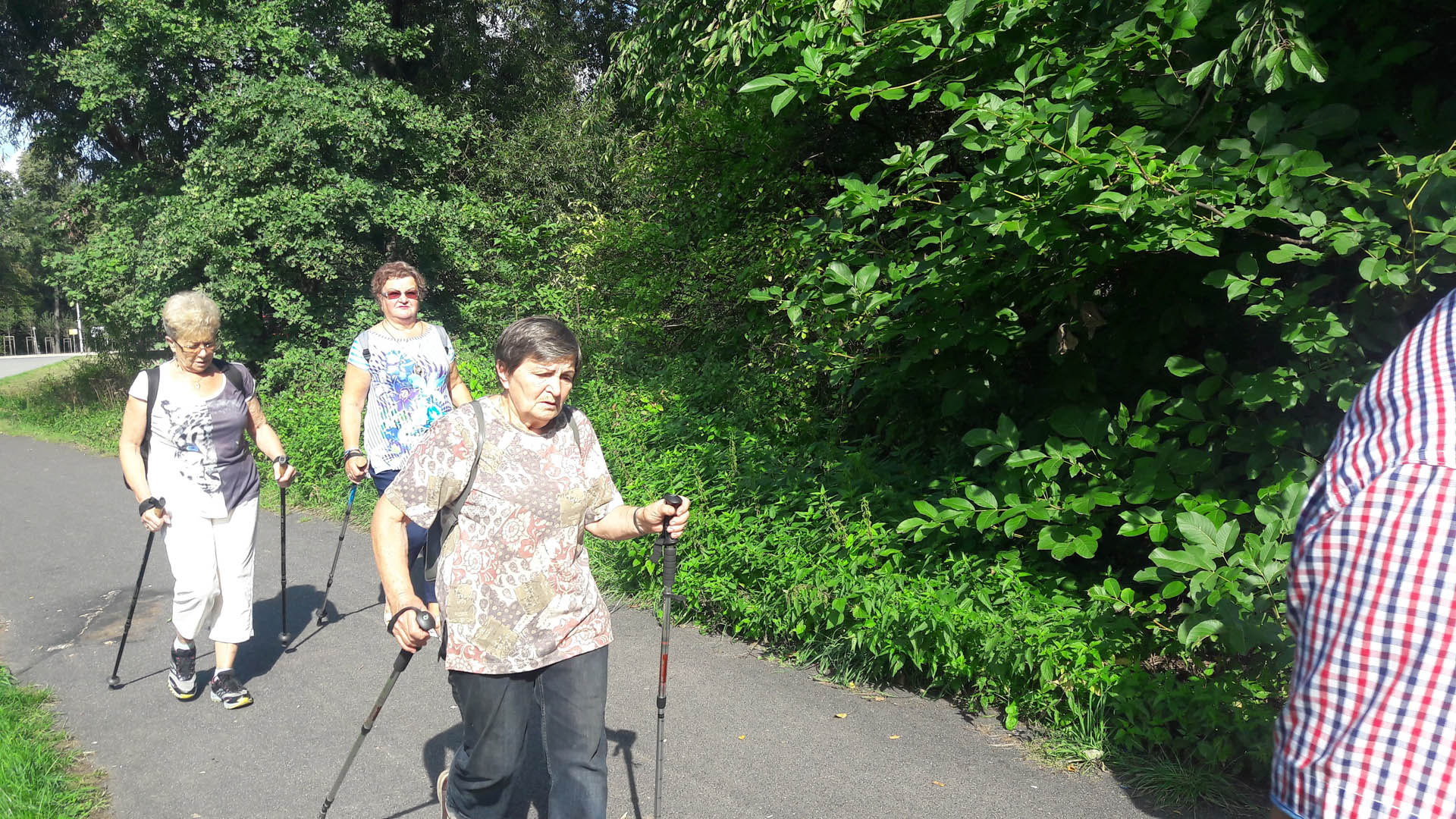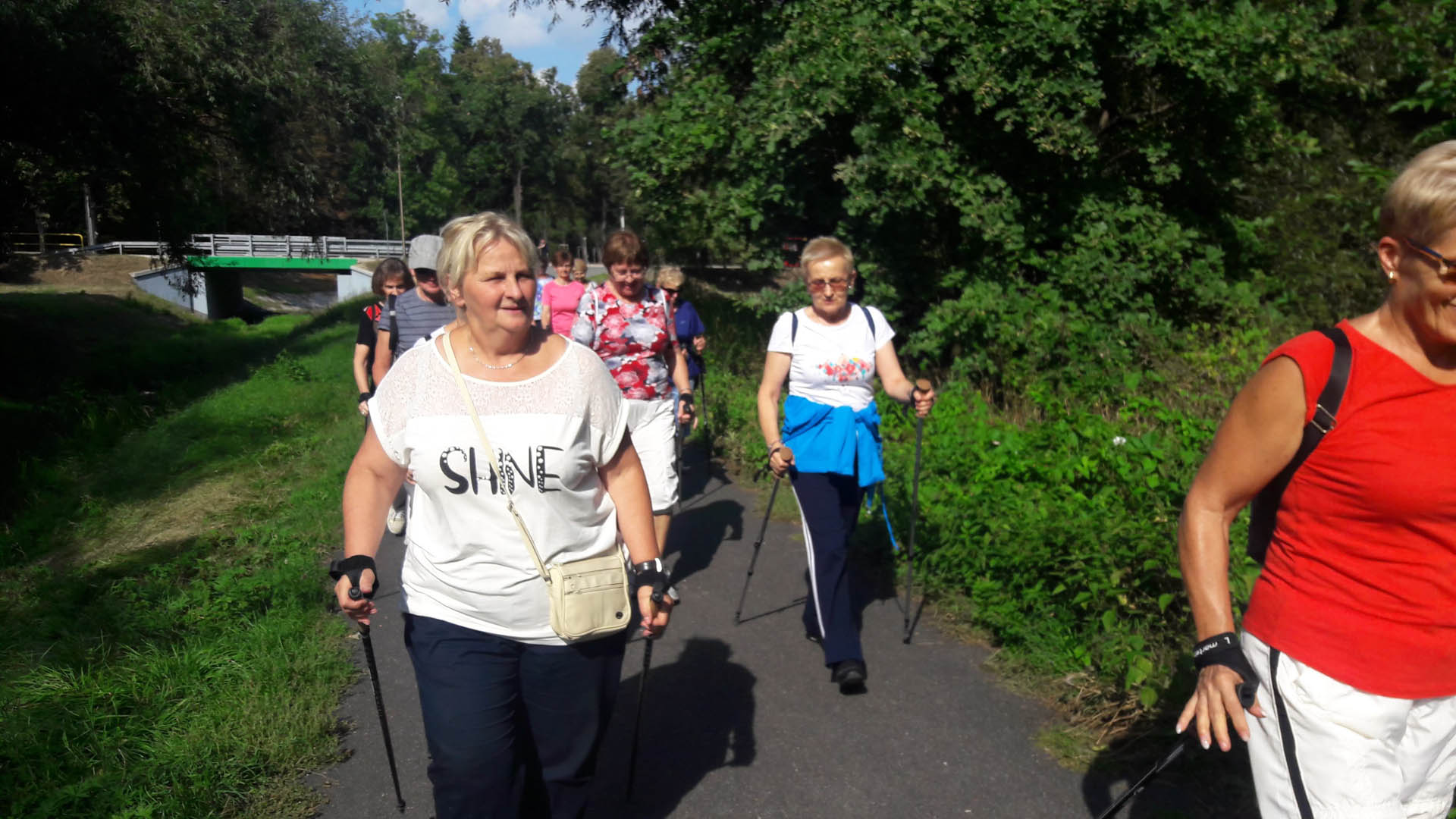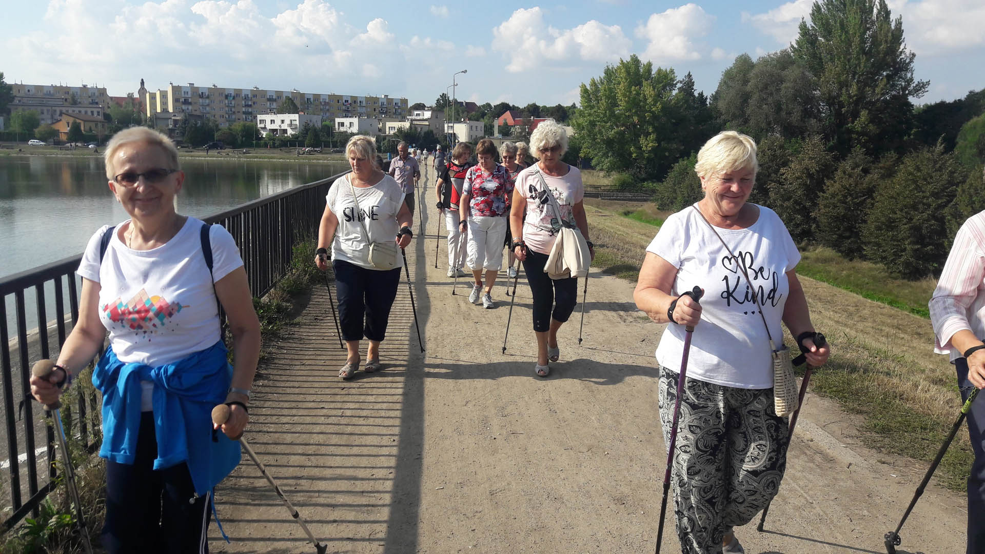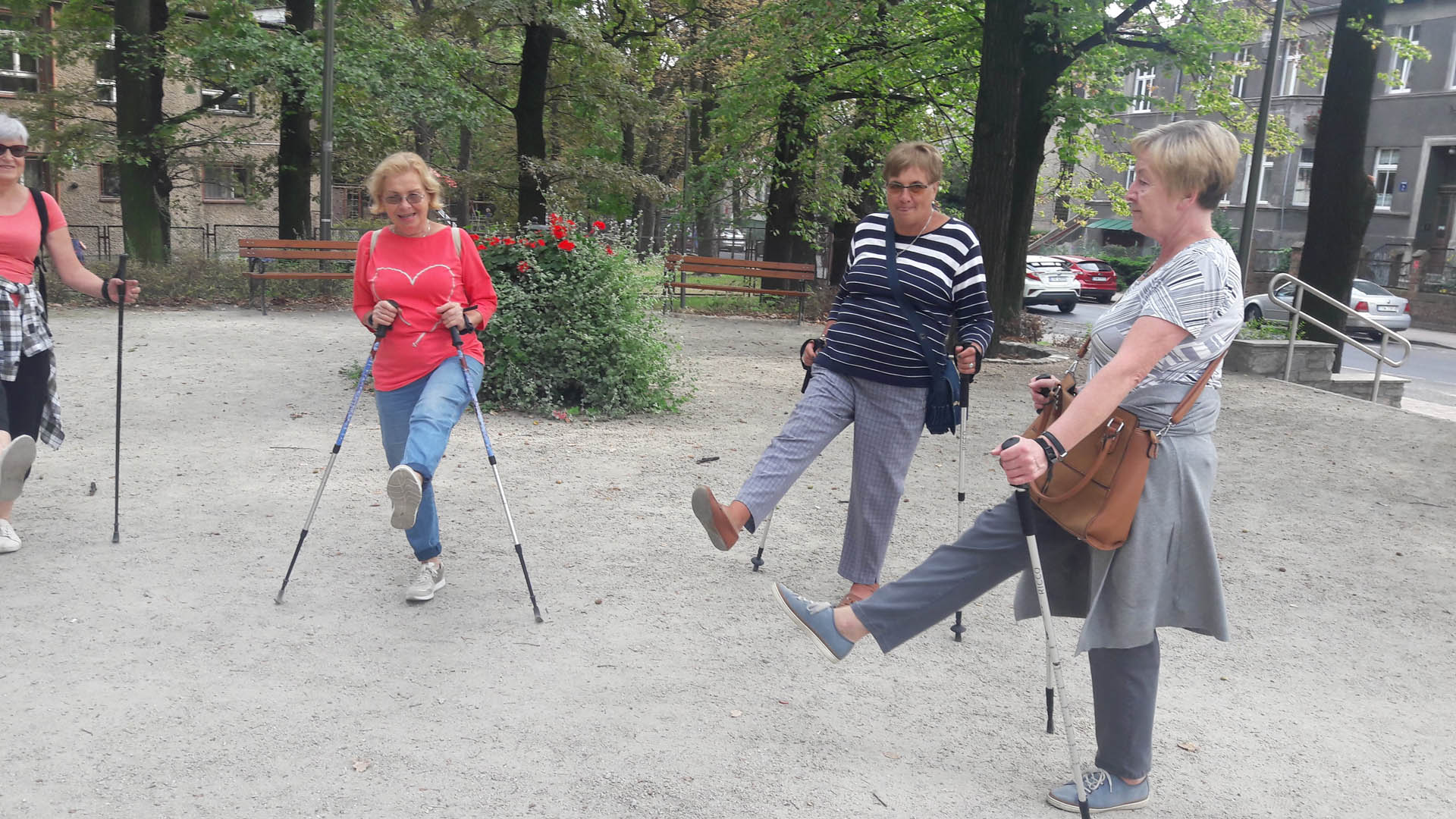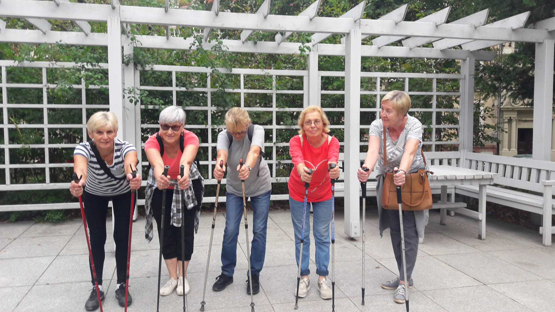 Na początku zajęć w każdej grupie instruktorka przeprowadziła instruktaż prawidłowego chodzenia metodą nordic walking oraz przekazywała zasady prawidłowego ustawienia wysokości kijków i utrzymania prawidłowej postawy. Każde kolejne zajęcia realizowane były wg harmonogramu: ćwiczenia rozgrzewkowe, pokonanie określonej długości trasy (ćwiczenie różnych technik marszu Nordic Walking), ćwiczenia rozciągające. Seniorzy wykazywali bardzo duże zainteresowanie ćwiczeniami i chętnie uczestniczyli w zajęciach. Podczas zajęć informowali instruktorkę o tym, że fakt, że zaczęli chodzić z kijami spowodował poprawę ich kondycji fizycznej i lepsze samopoczucie.