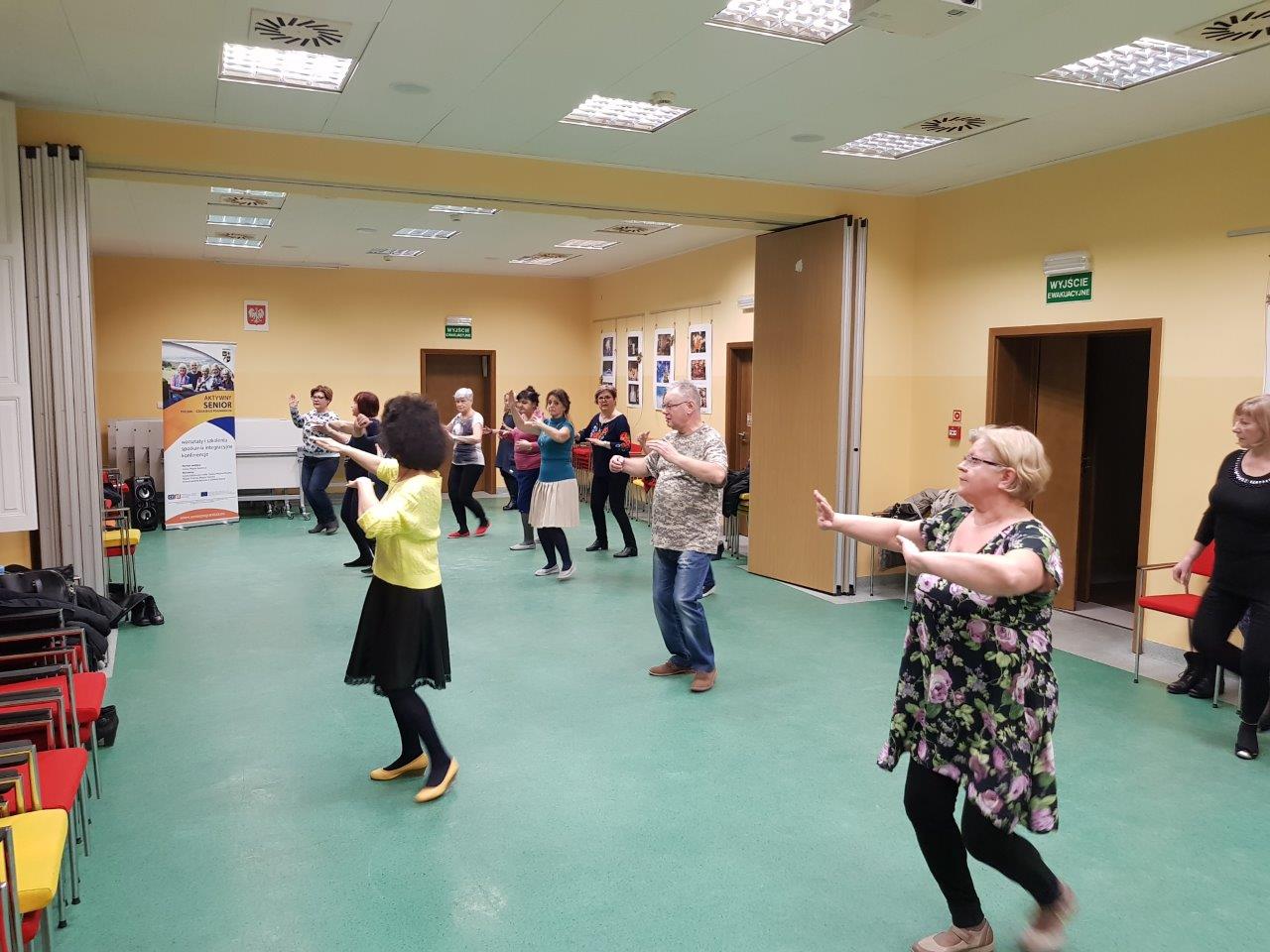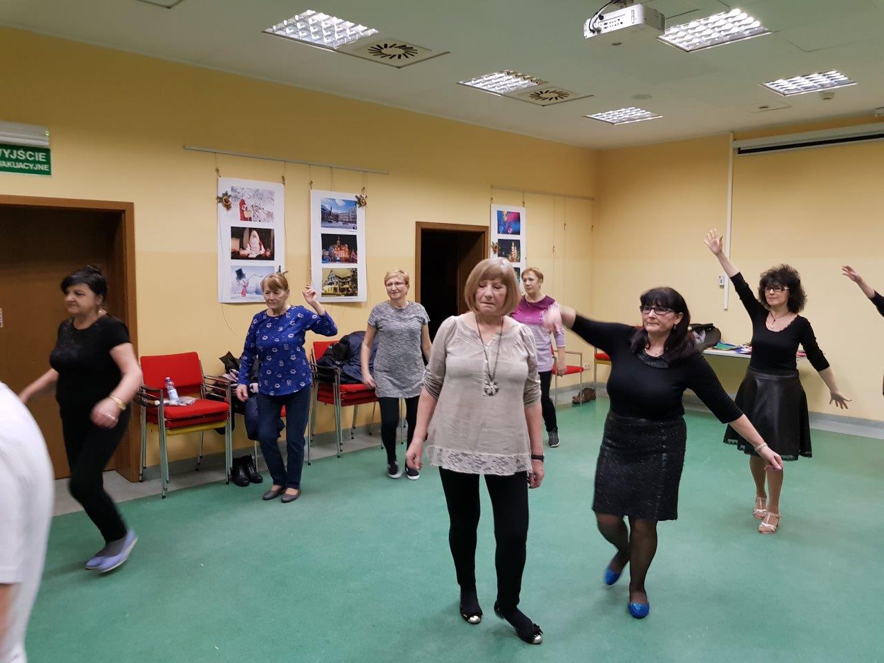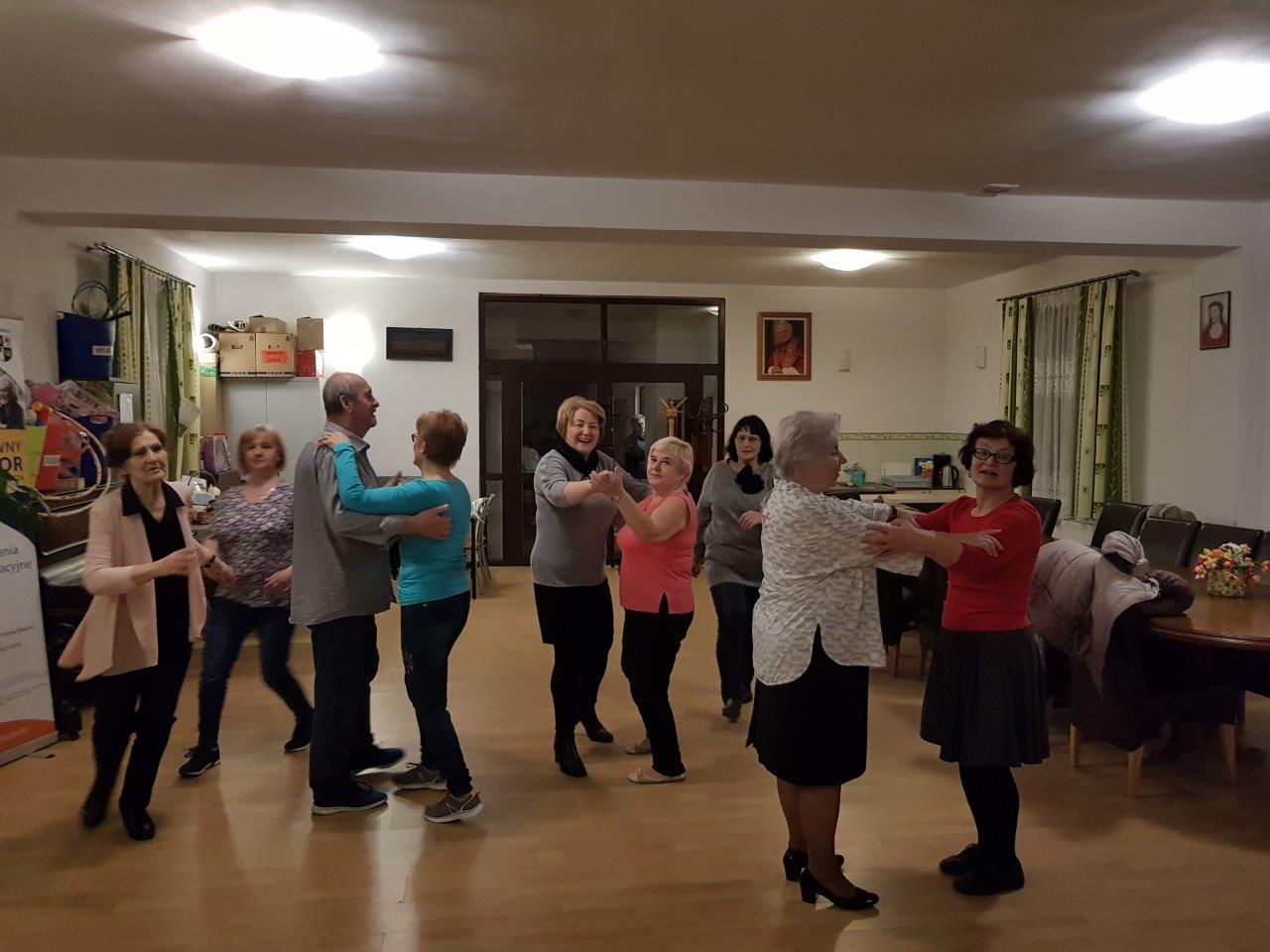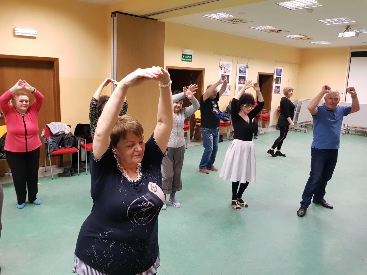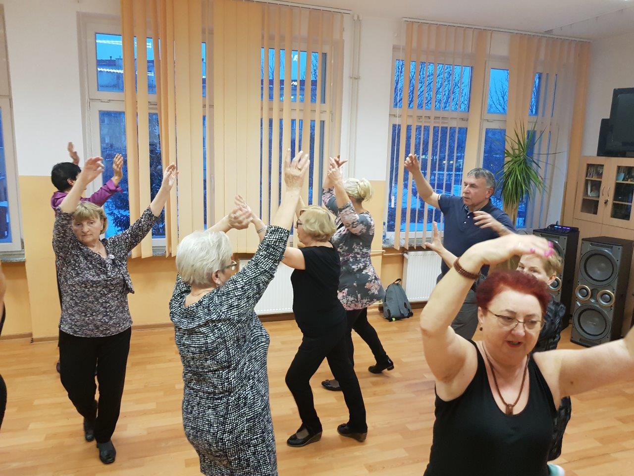 To zajęcia taneczne podczas których uczestnicy poznali podstawowe kroki i figury popularnych tańców towarzyskich tj. walc, samba, cza-cza. Zajęcia wpłynęły pozytywnie na sprawność ruchową uczestników oraz pozwoliły na nawiązanie relacji towarzyskich.