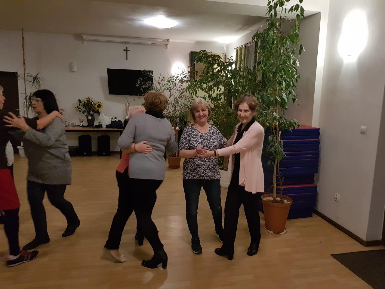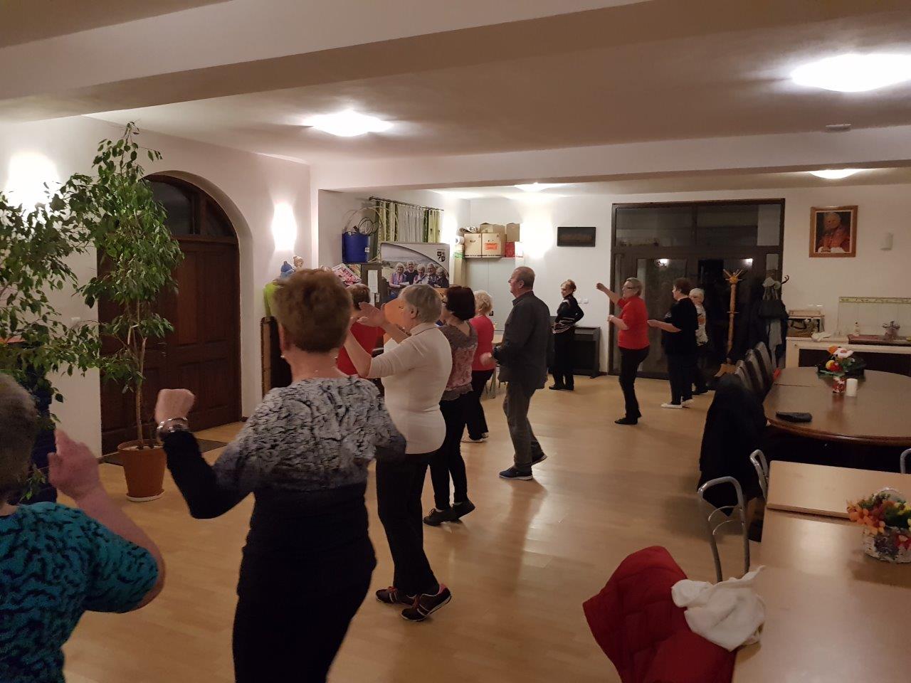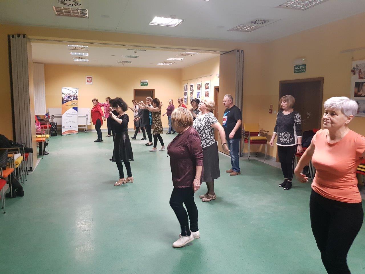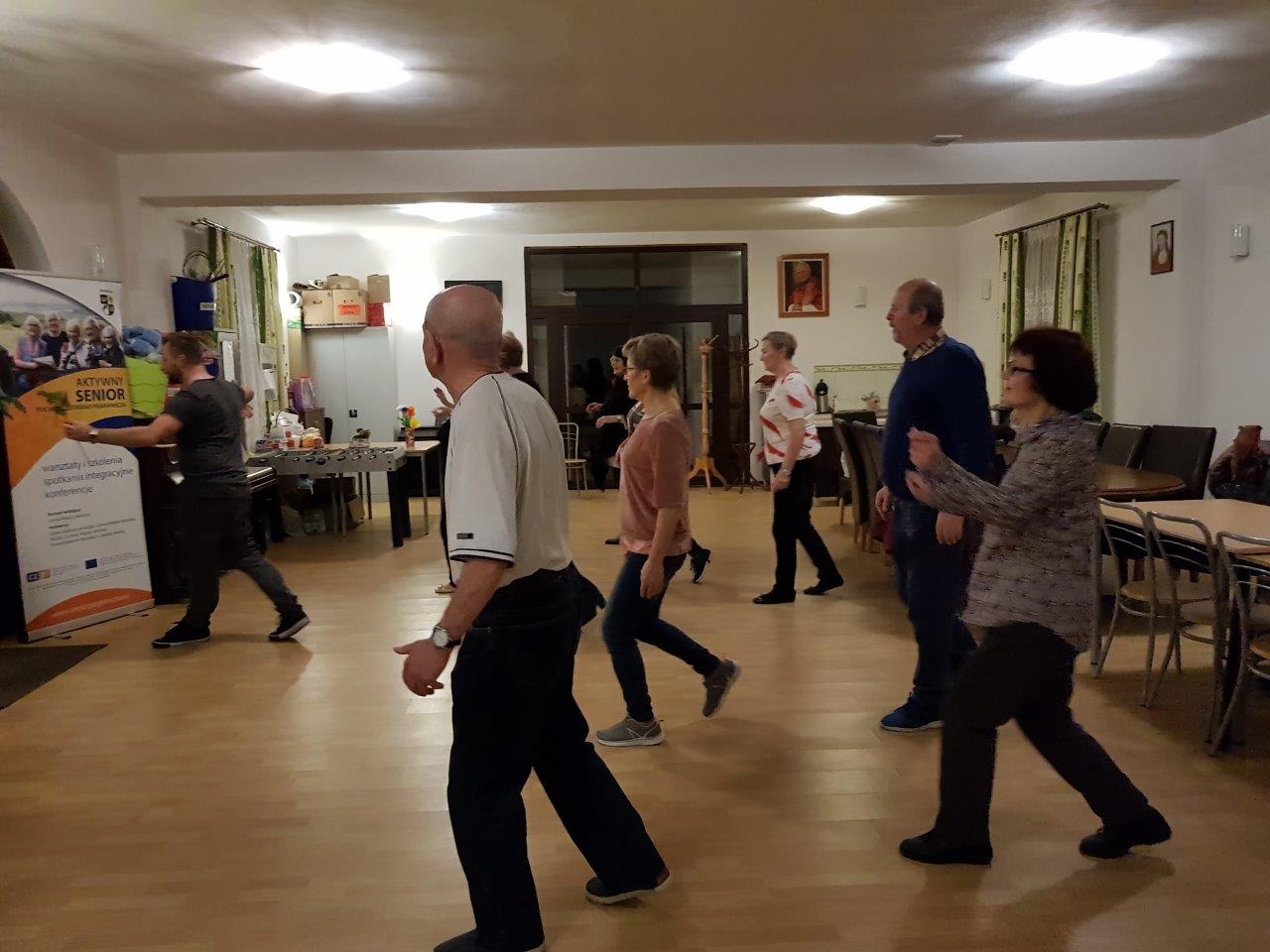 To zajęcia taneczne podczas których uczestnicy poznali podstawowe kroki i figury popularnych tańców towarzyskich tj. walc, samba, cza-cza. Zajęcia wpłynęły pozytywnie na sprawność ruchową uczestników oraz pozwoliły na nawiązanie relacji towarzyskich.