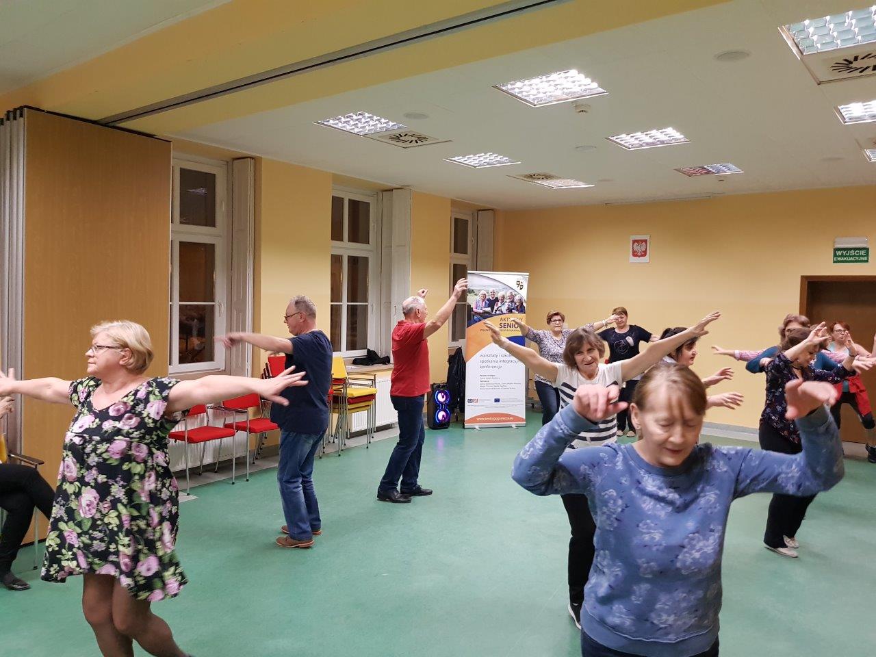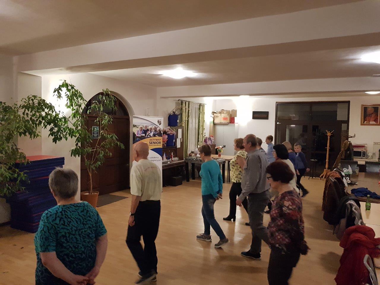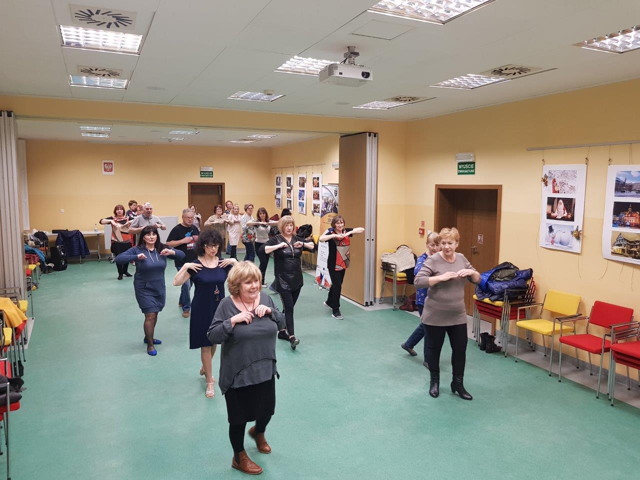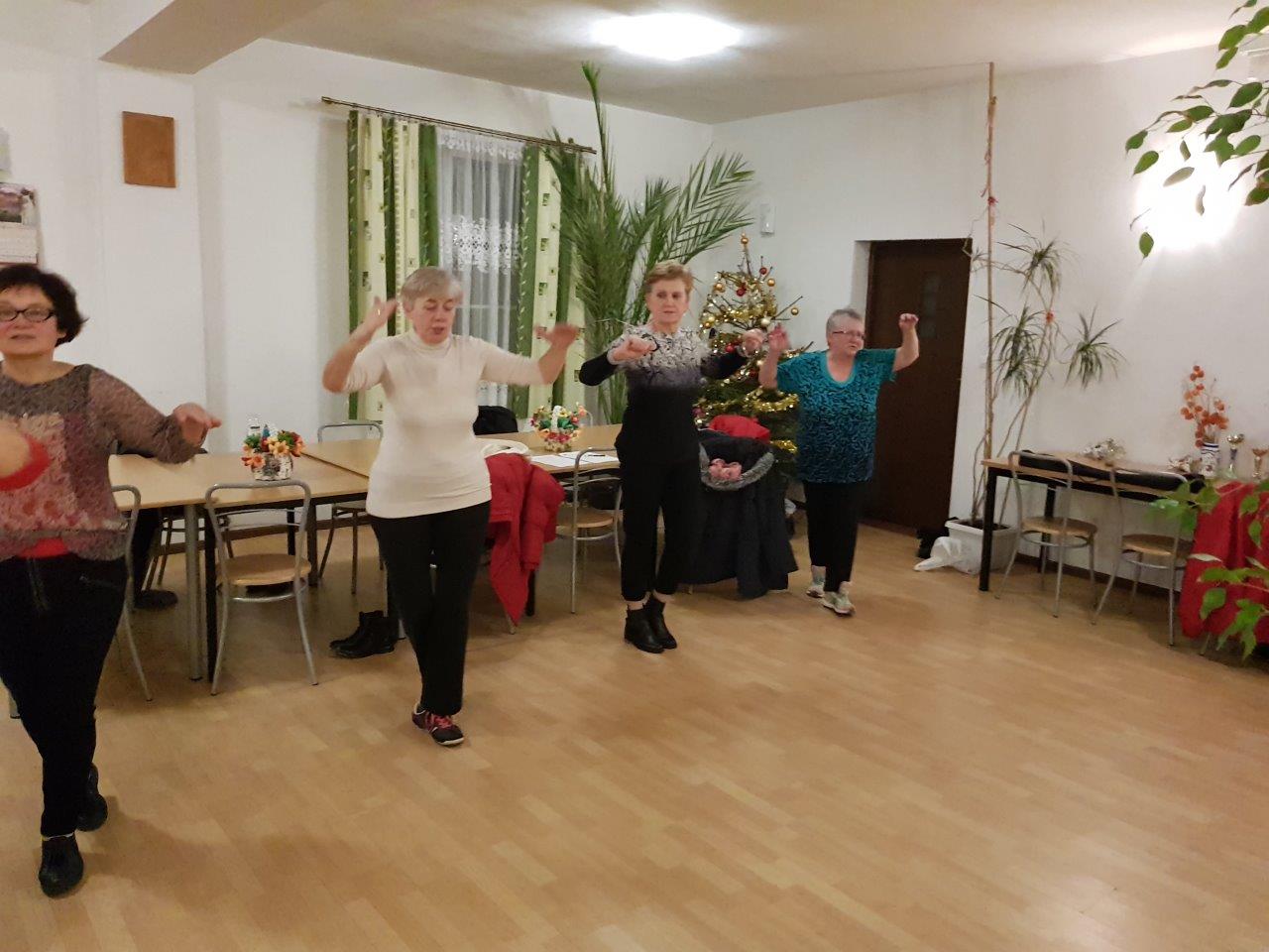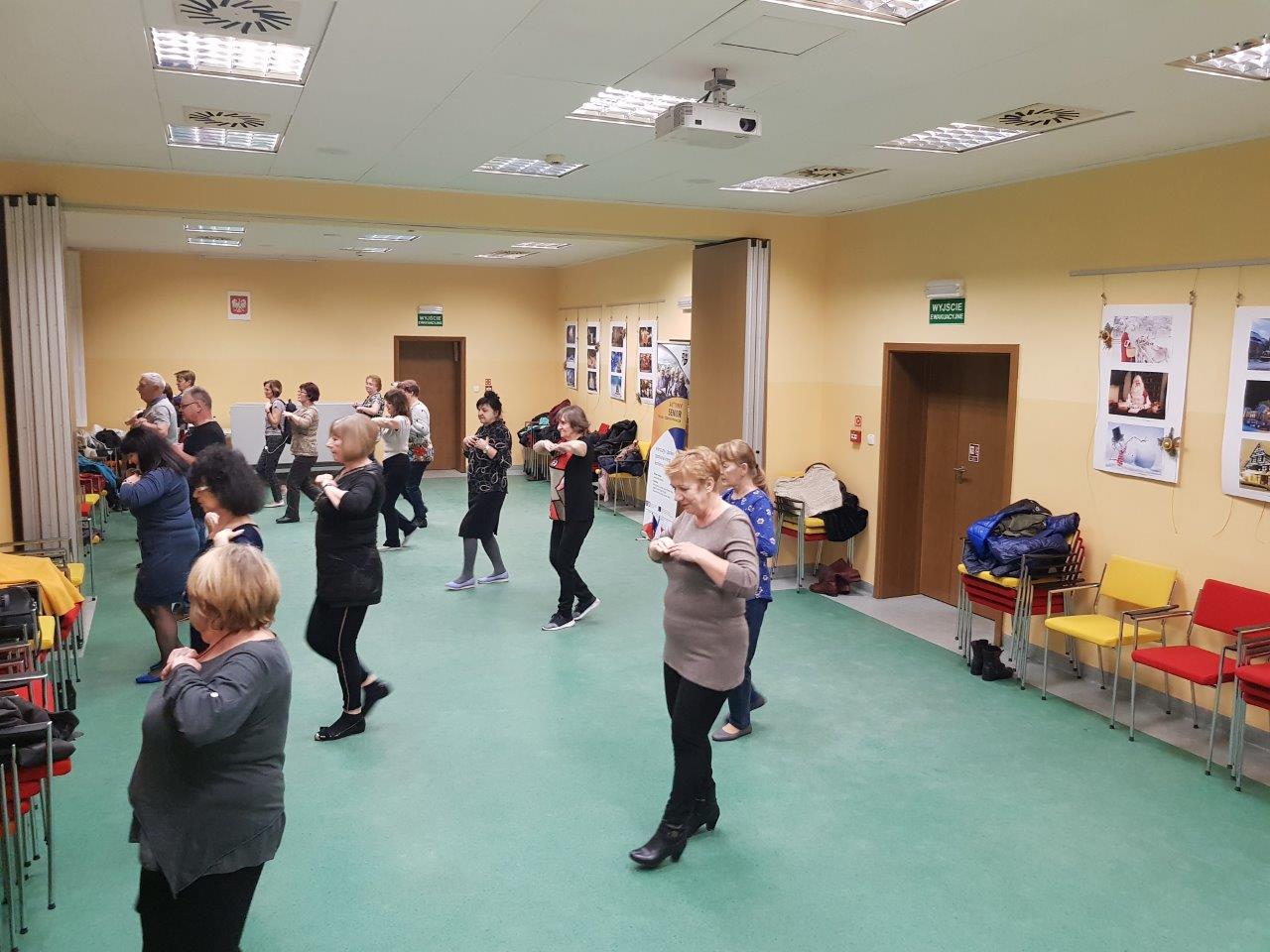 To zajęcia taneczne podczas których uczestnicy poznali podstawowe kroki i figury popularnych tańców towarzyskich tj. walc, samba, cza-cza. Zajęcia wpłynęły pozytywnie na sprawność ruchową uczestników oraz pozwoliły na nawiązanie relacji towarzyskich.