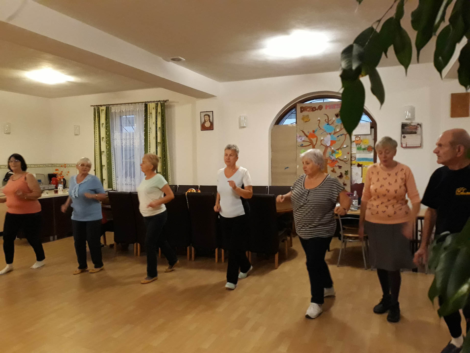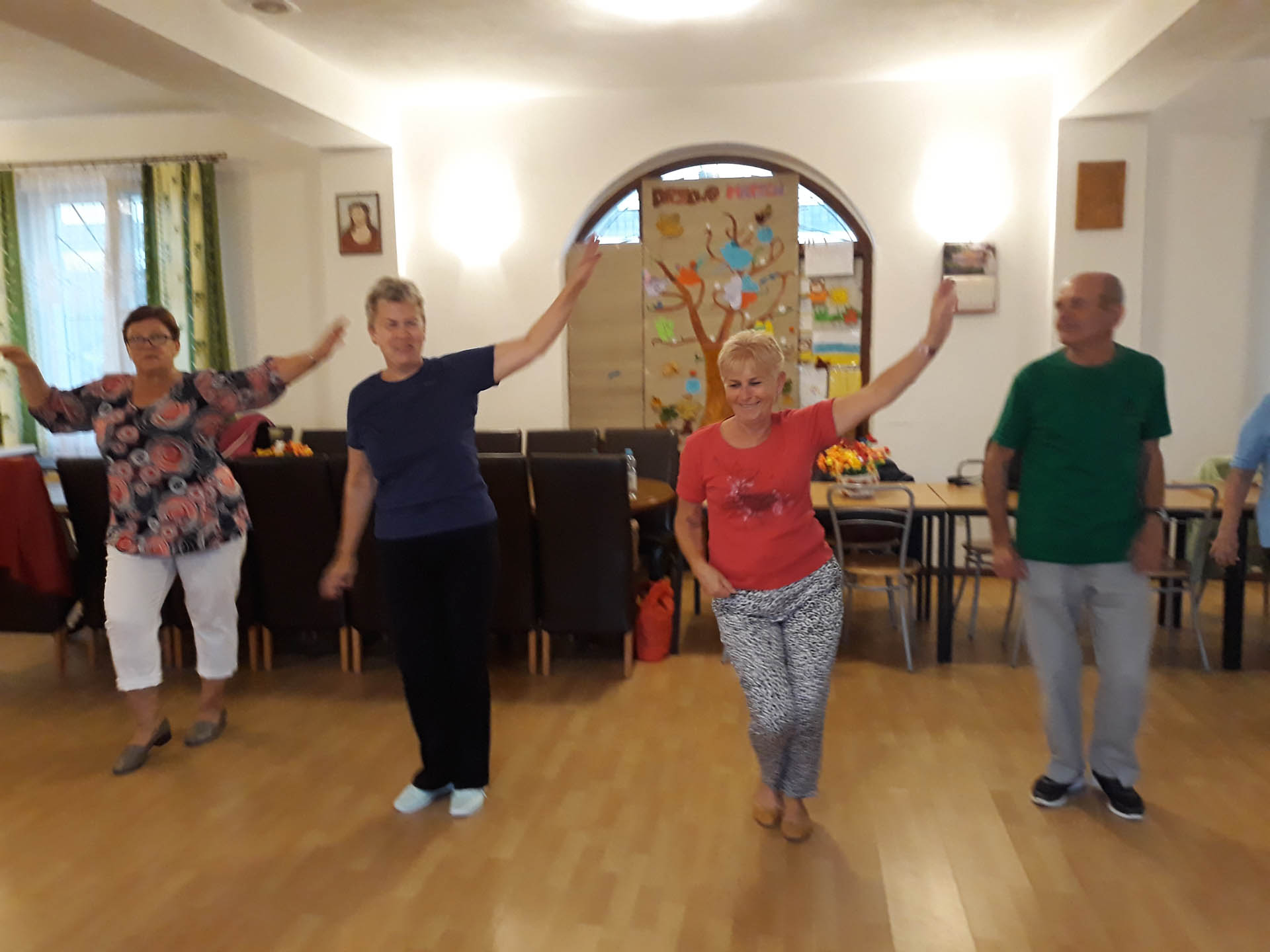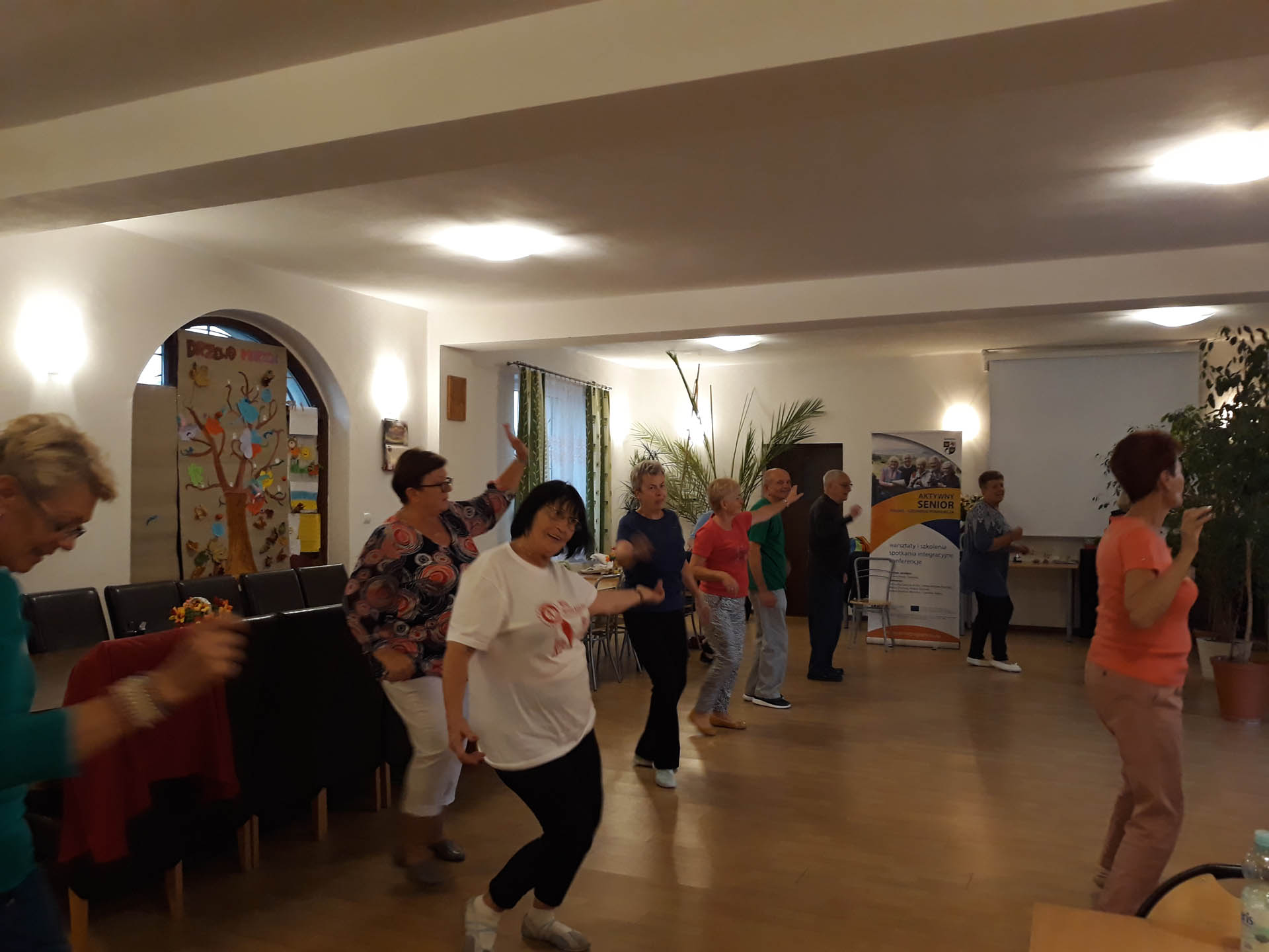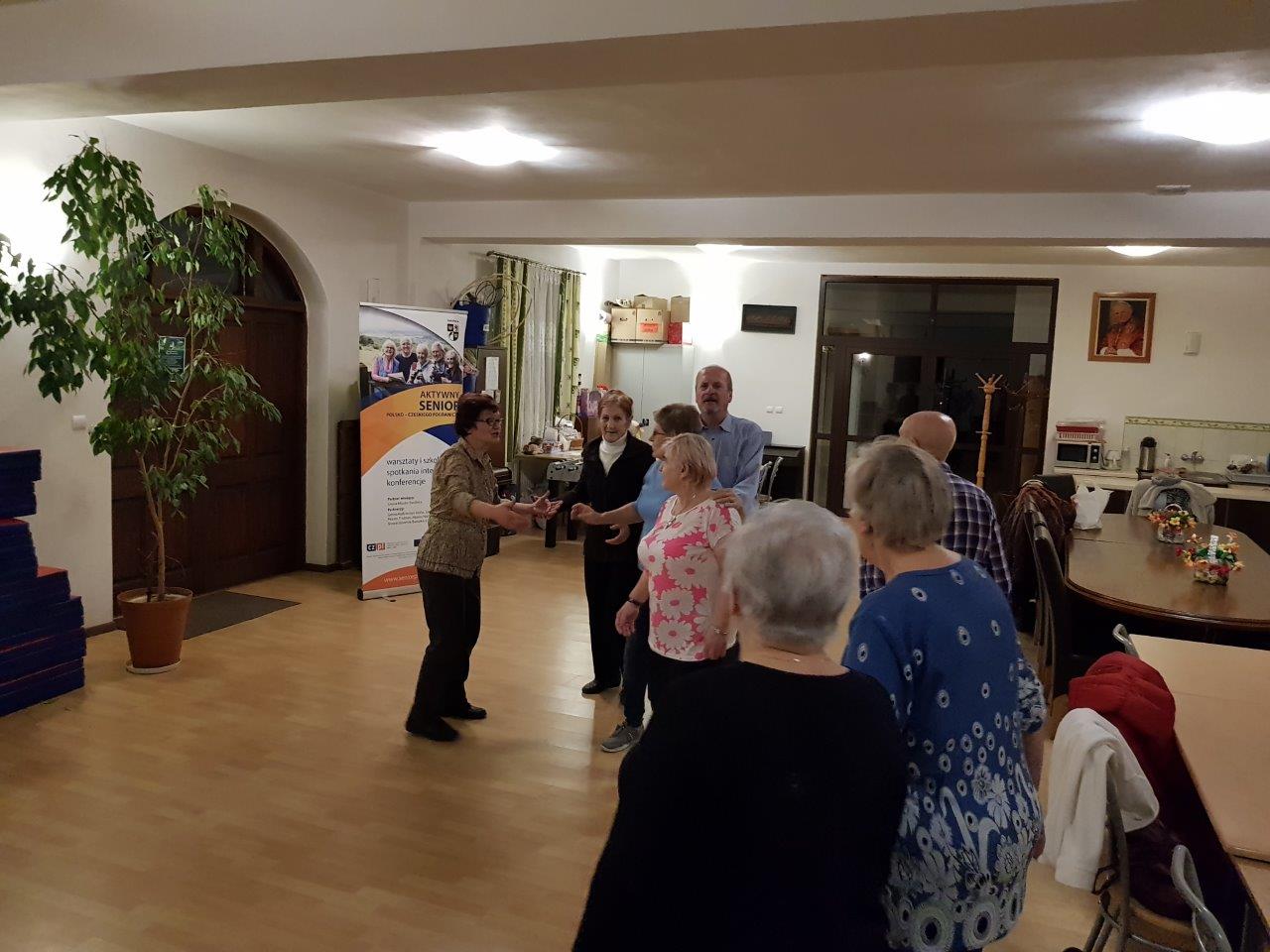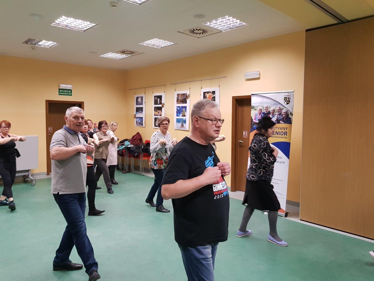 To zajęcia taneczne podczas których uczestnicy poznali podstawowe kroki i figury popularnych tańców towarzyskich tj. walc, samba, cza-cza. Zajęcia wpłynęły pozytywnie na sprawność ruchową uczestników oraz pozwoliły na nawiązanie relacji towarzyskich.