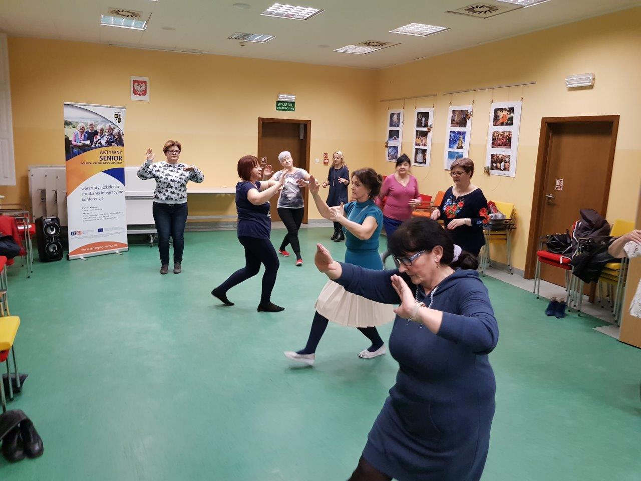 Podczas zajęć z rytmiki seniorzy poznali elementy tańców etnicznych (np. z kultury żydowskiej), czy choreoterapii, które wprowadzały ich w stan aktywnego ruchu, w którym pomimo zróżnicowania wiekowego realizowali się z dużym zaangażowaniem. Forma przeprowadzanych zajęć zawsze z elementami zabawy powodowała dużą łatwość wykonywanych ćwiczeń oraz wprowadzała atmosferę radości. Powtarzanie rytmów z użyciem ciekawych instrumentów etnicznych sprzyjała polepszeniu koordynacji ruchowej. Ćwiczenia rytmiczne wykonywane naprzemiennie z udziałem rak i nóg poprawiały koordynację pracy półkul mózgowych, systematycznie wykonywane sprawiały uczestnikom coraz mniejszą trudność. Element relaksacji muzycznych z użyciem dźwięku mis tybetańskich był odpowiednim elementem zajęć po wysiłku fizycznym. Relaksacje spotkały się z żywym zainteresowaniem, przynosiły szybki efekt głębokiego odprężenia, a dla większości seniorów były czymś zupełnie nowym.